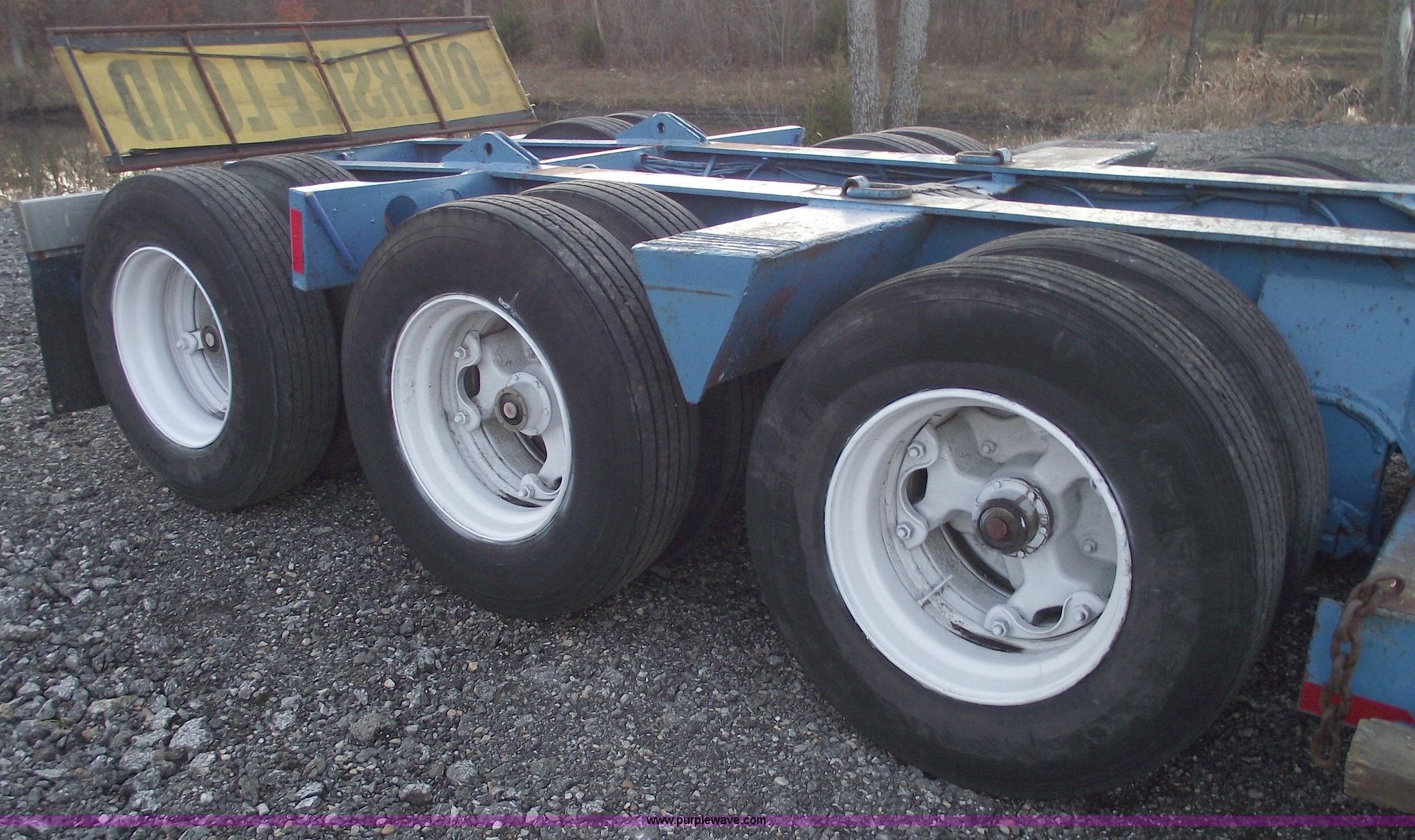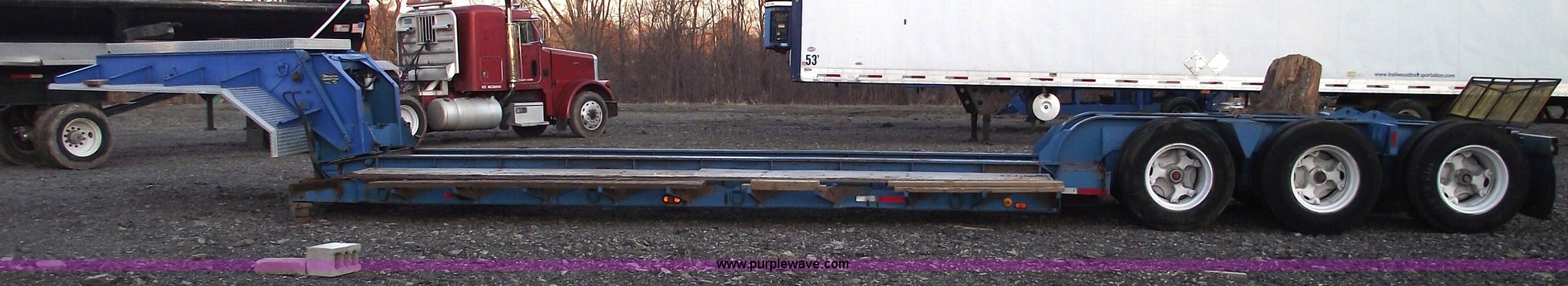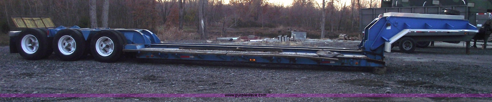 Purple Wave is selling a used Equip. Trailer in Missouri. This item is a 1977 Talbert 35 ton triple axle lowboy trailer with the following: 46'L overall, 24'L flat deck, 12" swing out extenders, Air ride suspension, Air brakes, Electric over hydraulic detach, 12v system, Aluminum tread plate front fenders, Chrome mud flap hangers, 295/75R22.5 tires, All new air bags, bearings, brakes, deck, and shocks