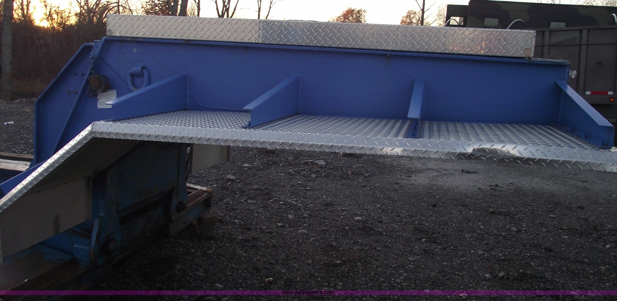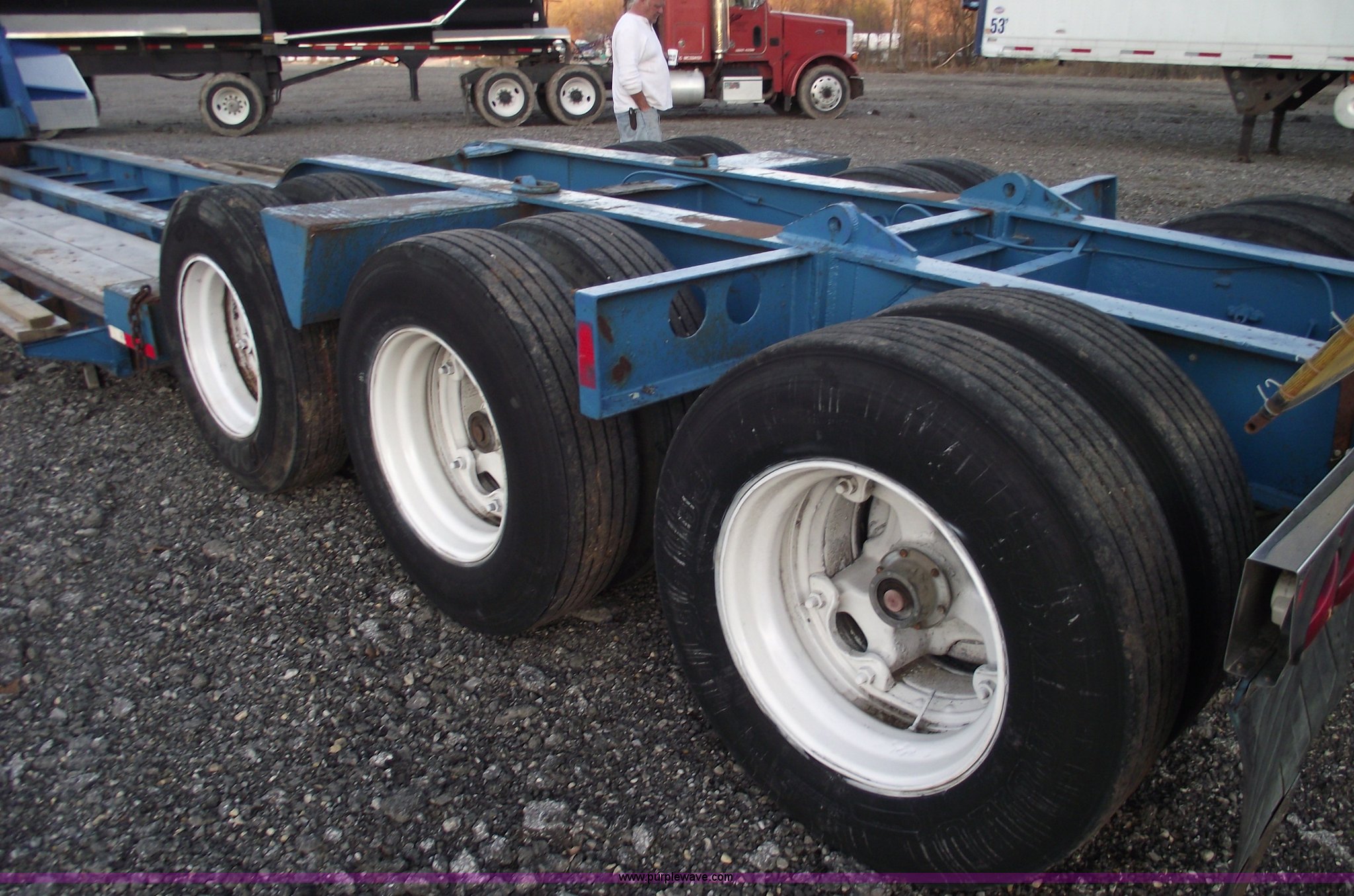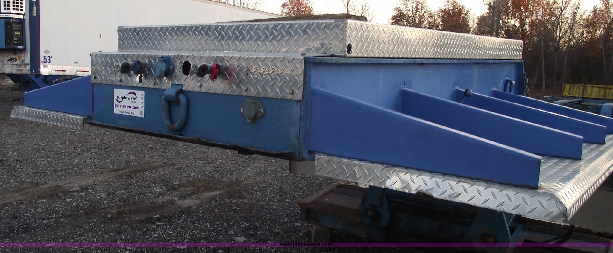 Purple Wave is selling a used Equip. Trailer in Missouri. This item is a 1977 Talbert 35 ton triple axle lowboy trailer with the following: 46'L overall, 24'L flat deck, 12" swing out extenders, Air ride suspension, Air brakes, Electric over hydraulic detach, 12v system, Aluminum tread plate front fenders, Chrome mud flap hangers, 295/75R22.5 tires, All new air bags, bearings, brakes, deck, and shocks