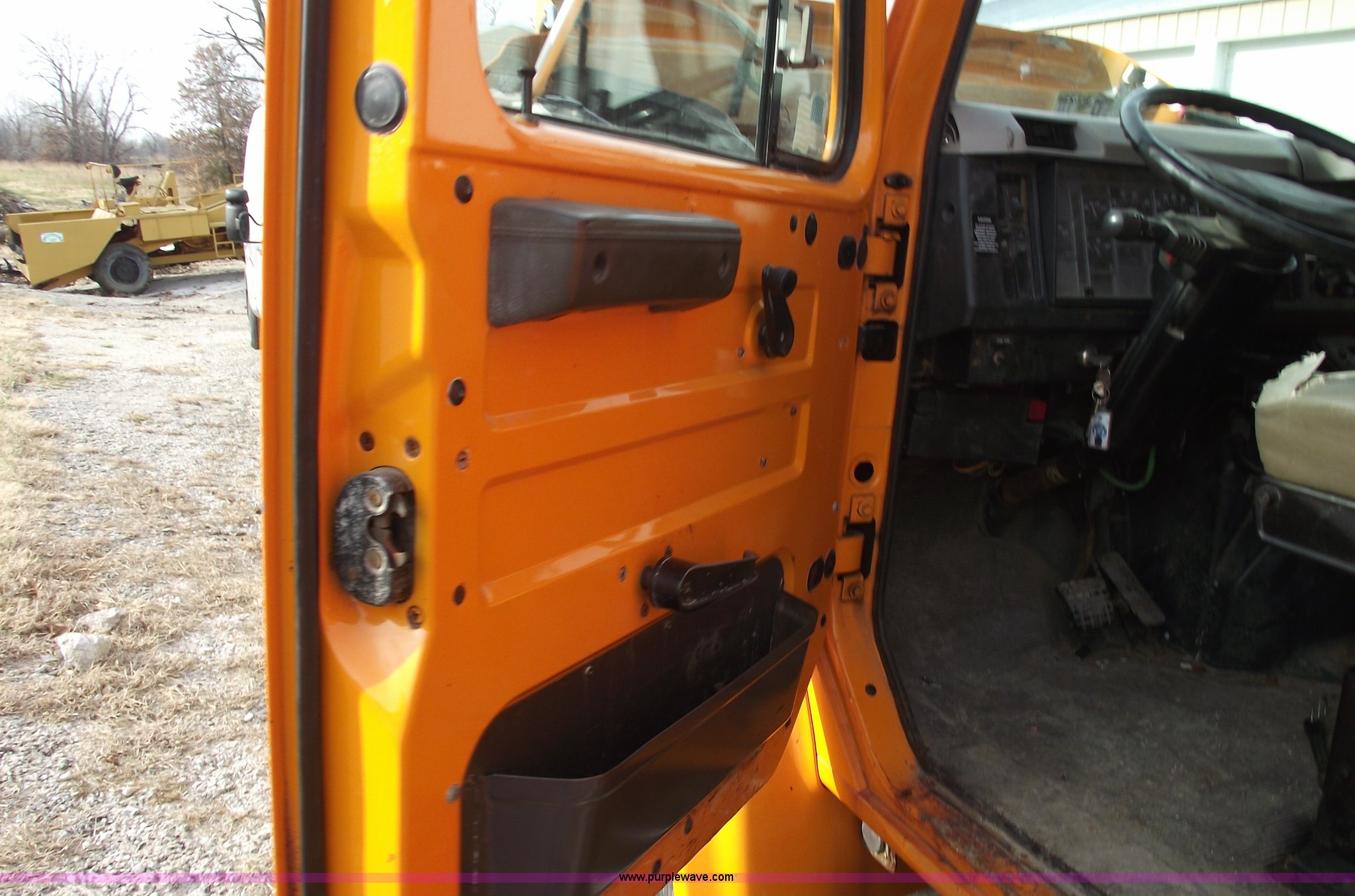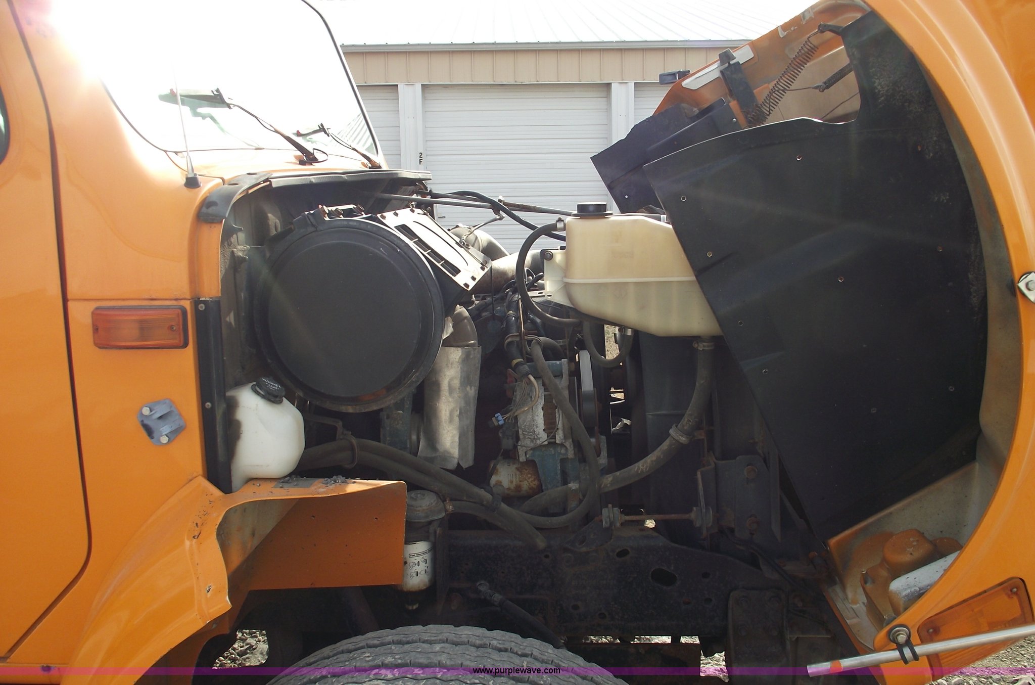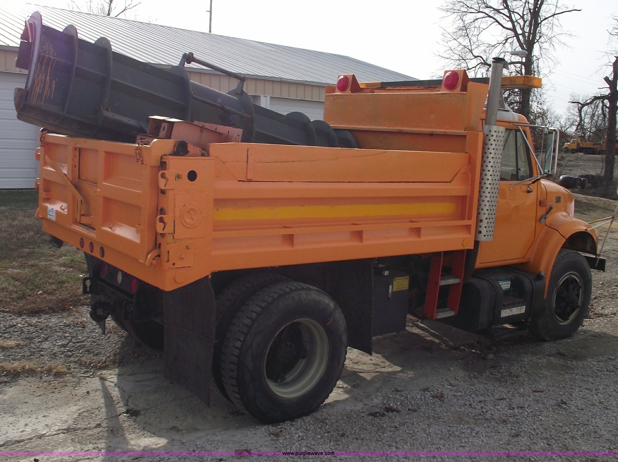 Purple Wave is selling a used Construction Dump Truck in Missouri. This item is a 1999 International 4900 dump truck with the following: 190,115 miles on odometer, Navistar DT466 7.6L diesel engine, Five speed automatic transmission, Heater, Cruise, AM/FM, Air ride seat, Heated mirrors, In-cab snow plow controls, Monroe 10' dump bed, Manual end gate, Tailgate spreader, 11' County Plow, Four-way plow, 75 gallon fuel tank, Safety light bar, Air horn, Bumper, Block heater, Trailer wiring, Pintle hitch, Spring suspension, PTO, Air brakes, 11R22.5 tires, 152" wheelbase, GVWR 31,000 lbs, FAWR 12,000 lbs, RAWR 19,000 lbs, No in-cab spreader controls, Snow plow and spreader in bed