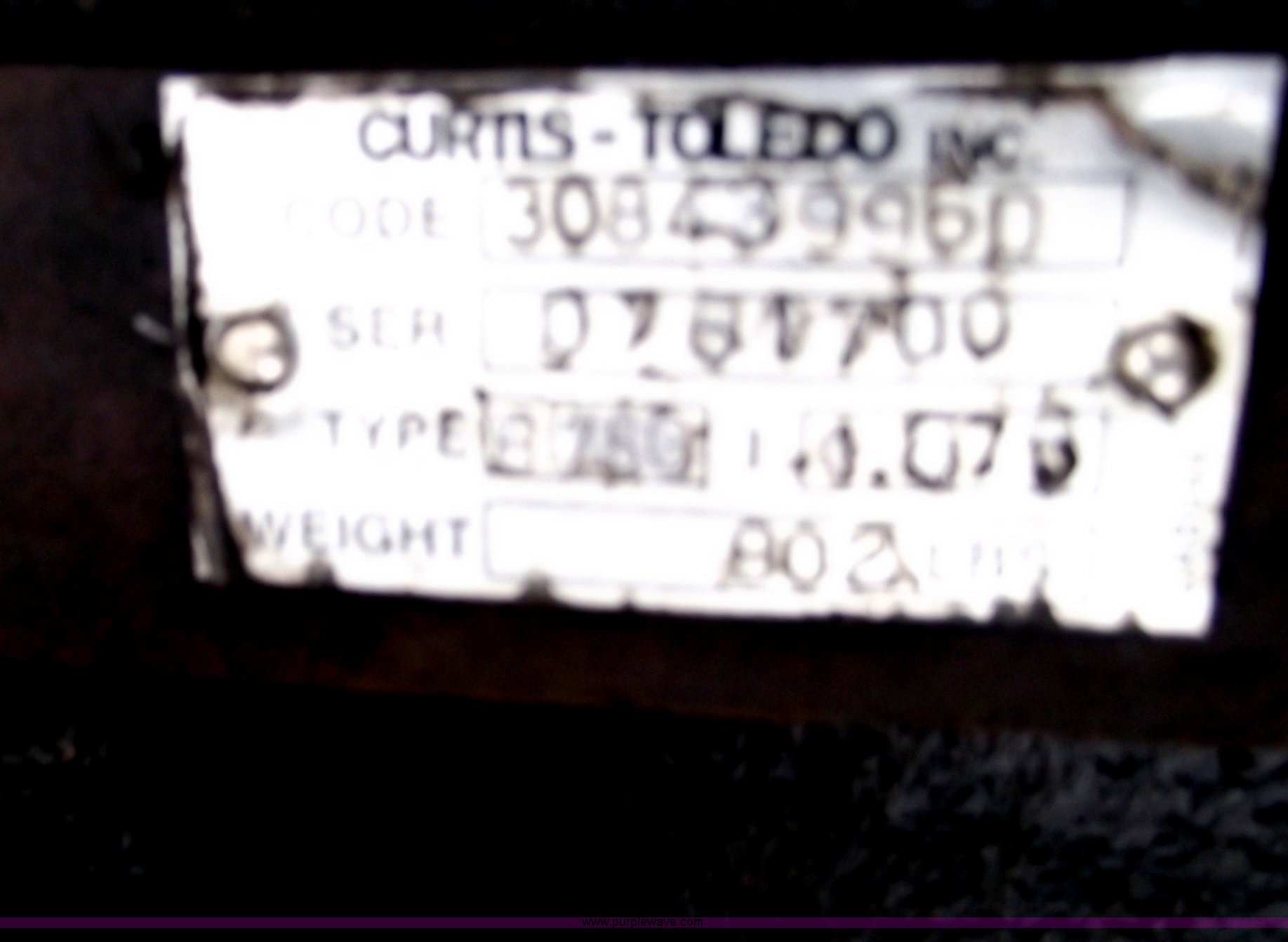 1999 Curtis R/S 150 air compressor. Lincoln Electric 150 HP motor, 460V, Curtis Toledo pump Type B750, Serial 0751700, 200 psi Silvan Industries tank, Steel skid mounted with fork pockets, Serial 6795F99010. Shipping quotes available. Interstate Equipment. 11894 Old Hwy 40. Odessa, MO 64076
