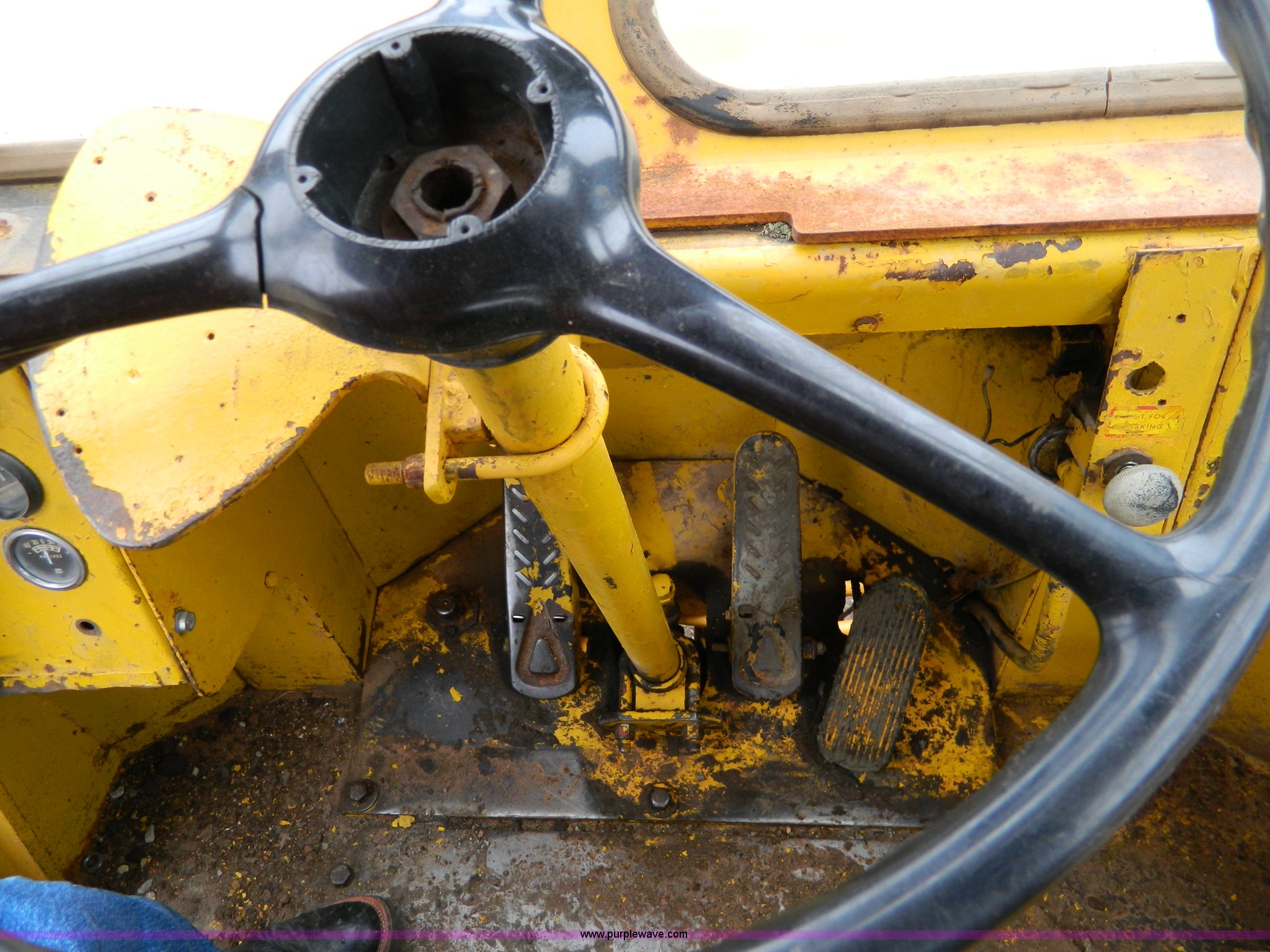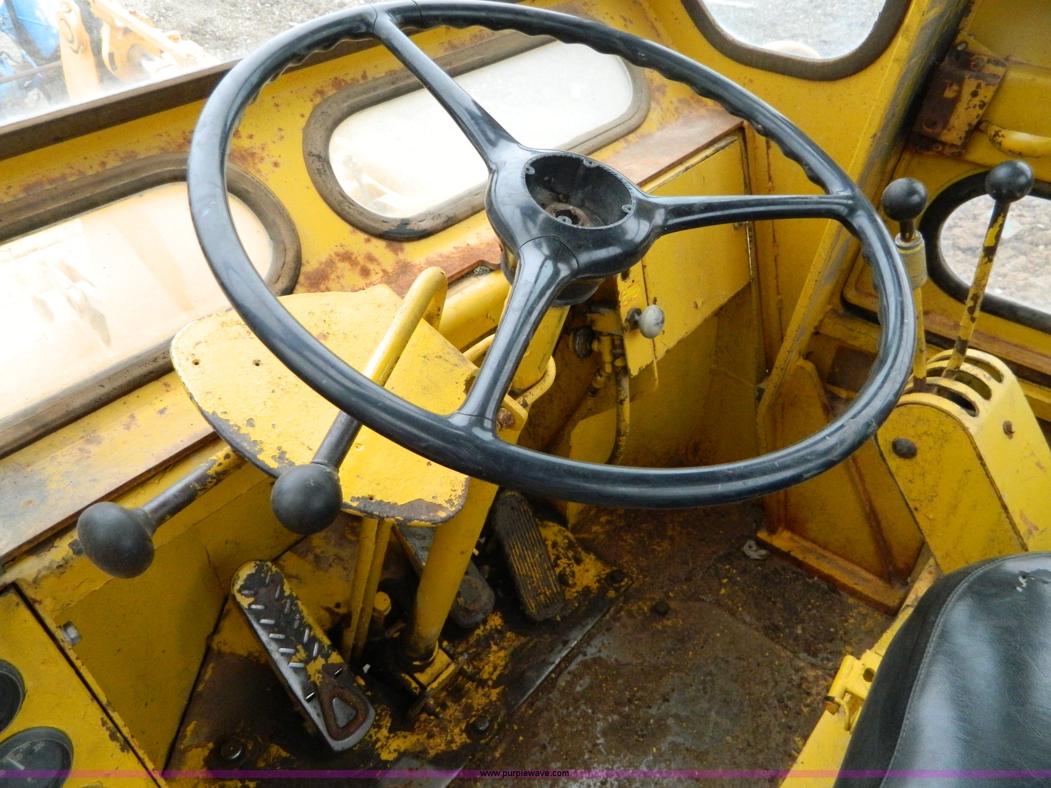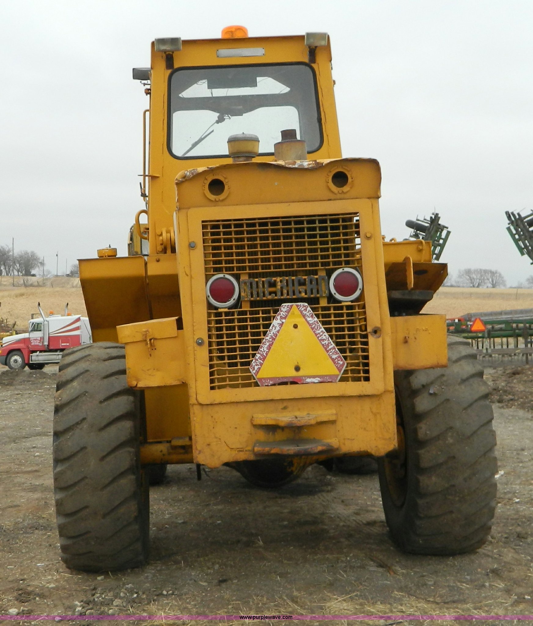 Purple Wave is selling a used Wheel Loader in Kansas. This item is a Clark Michigan 55B wheel loader with the following: No hour meter present, Detroit diesel engine, Three speed transmission, Torque converter, Cab with heat, 8' bucket, Serial 510469, 17.5-25 tires, Serial 46733N
