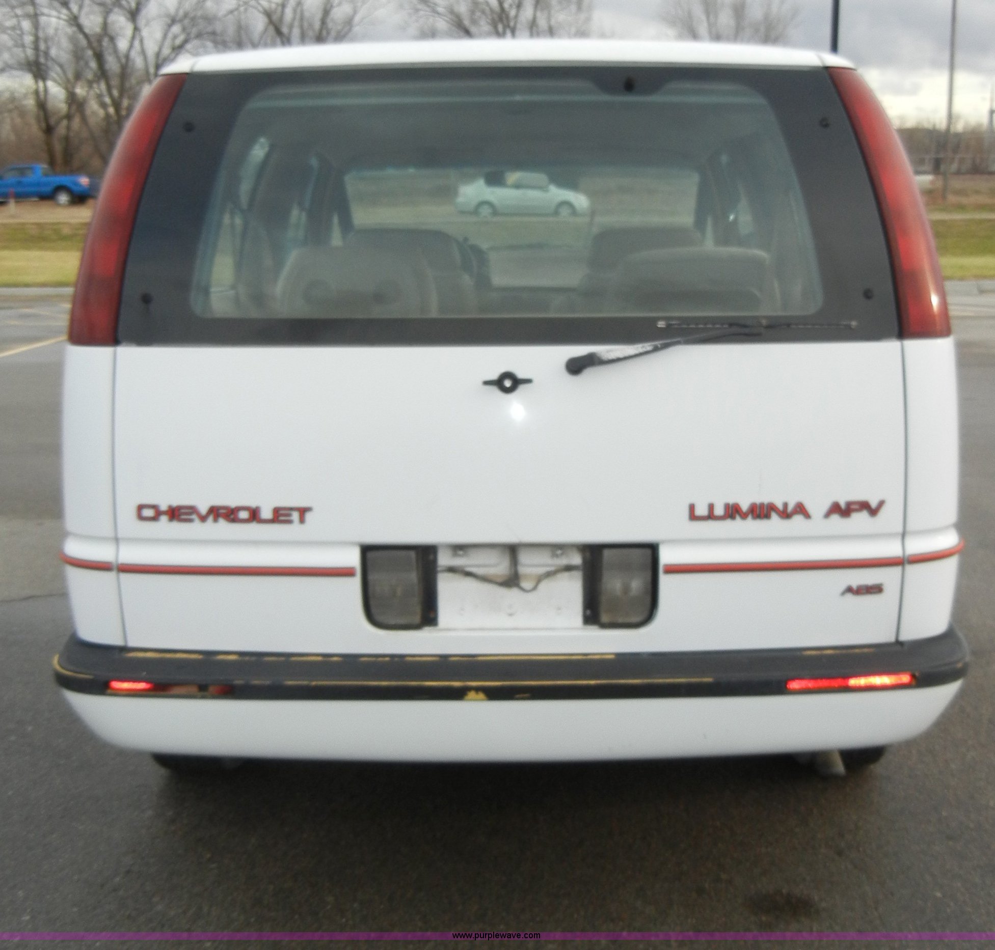 Purple Wave is selling a used Passenger Vehicle in Kansas. This item is a 1993 Chevrolet Lumina APV mini van with the following: 119,091 miles on odometer, 3.1L V6 TBI engine, Automatic transmission, AC and heat, Tilt, Cruise, AM/FM/Cassette, Power windows and locks, 205/70R15 tires, Third row seat missing, Chips in windshield, Paint fading, Interior/exterior cosmetic damage, ID# 6540
