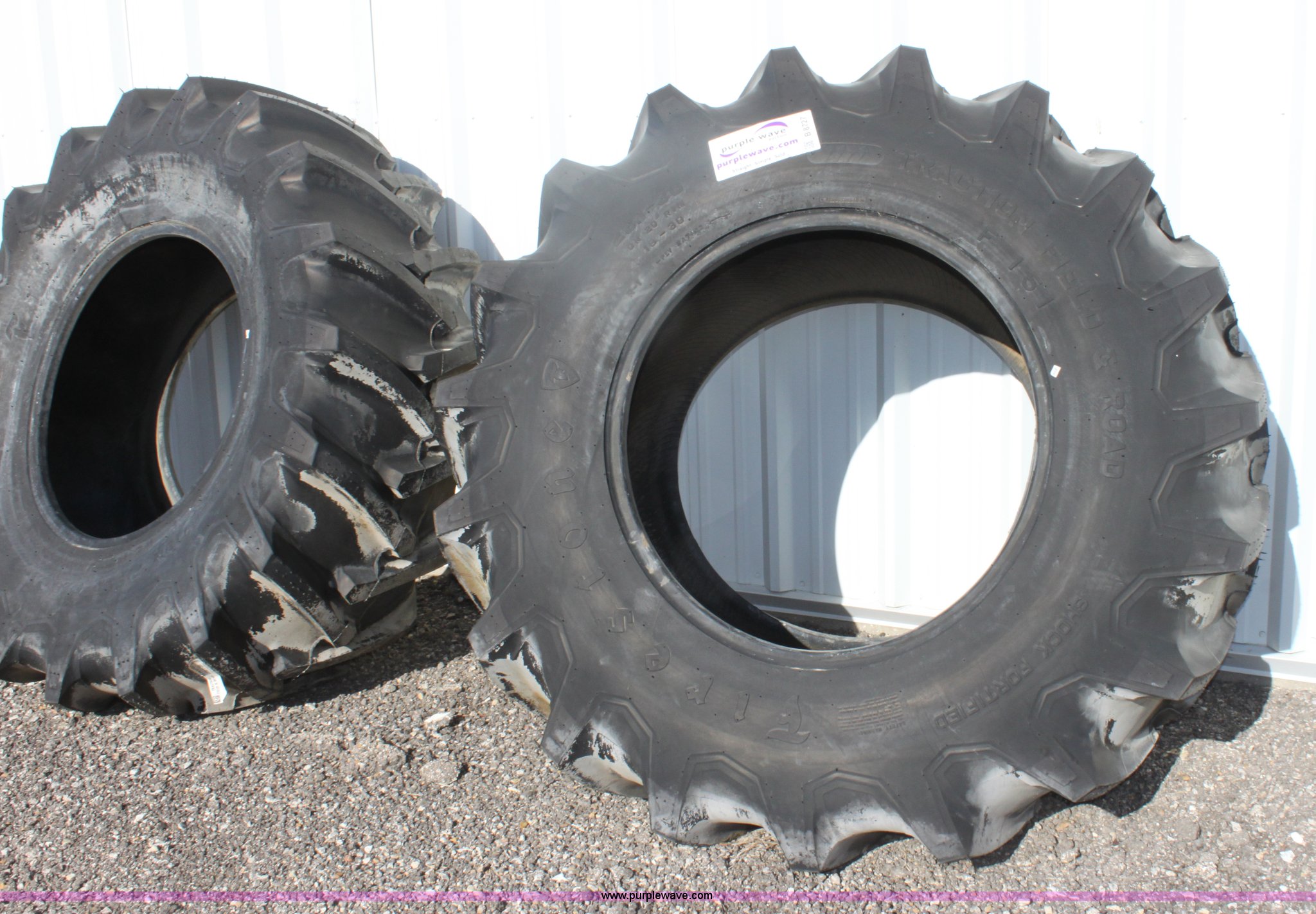 Purple Wave is selling a used Industrial Tires or Tracks in Kansas. This item is a (2) Firestone Traction field and road tires with the following: 23.1-30