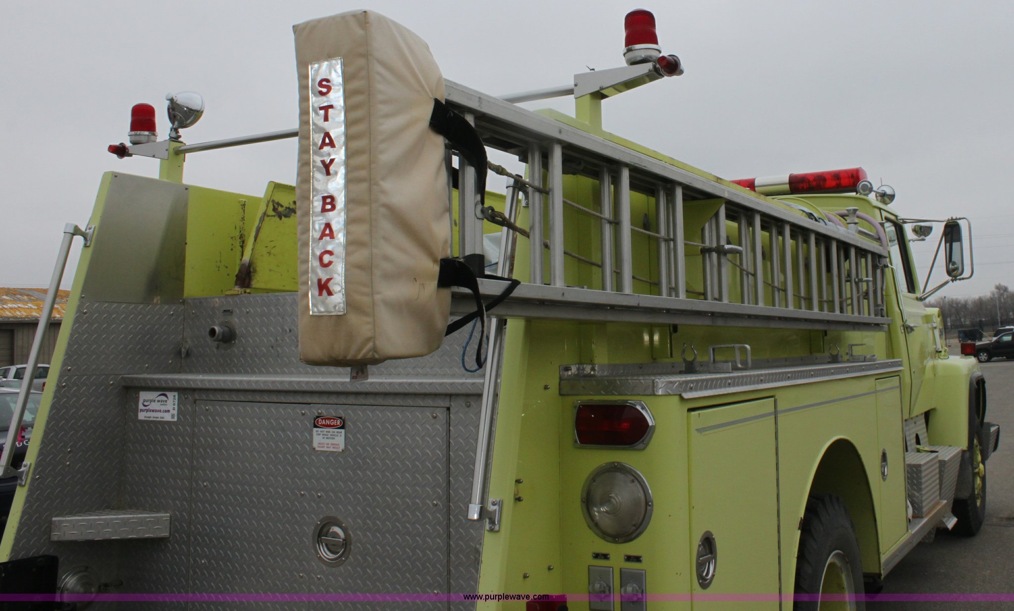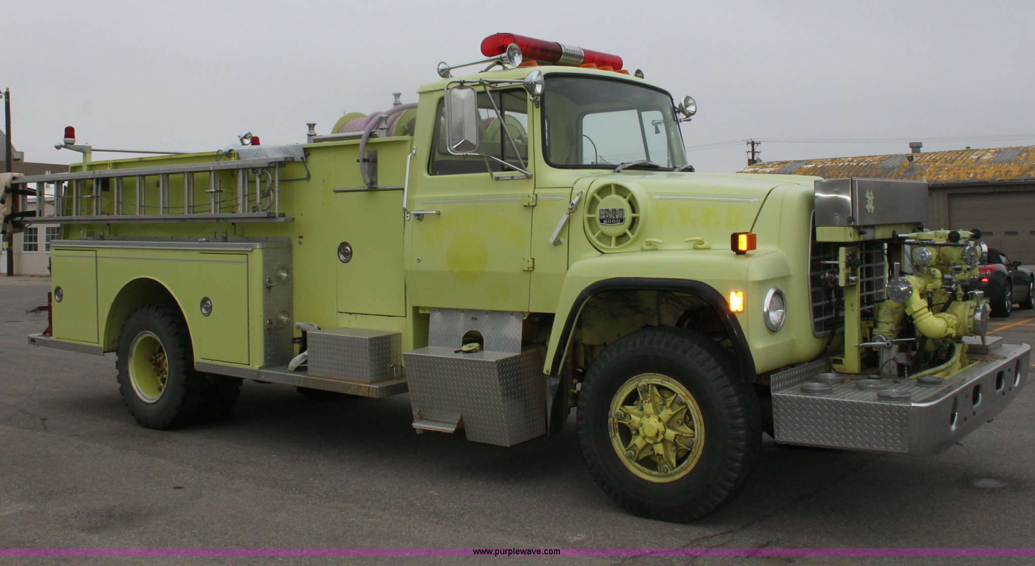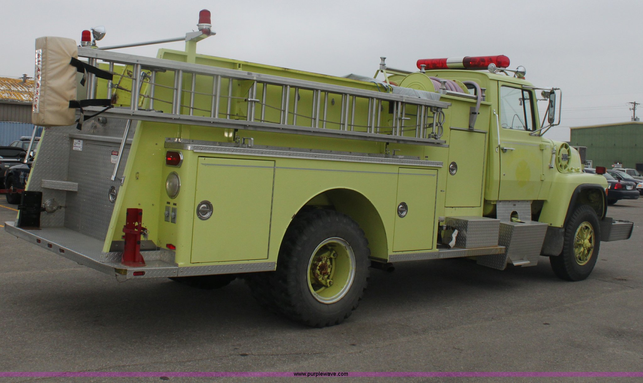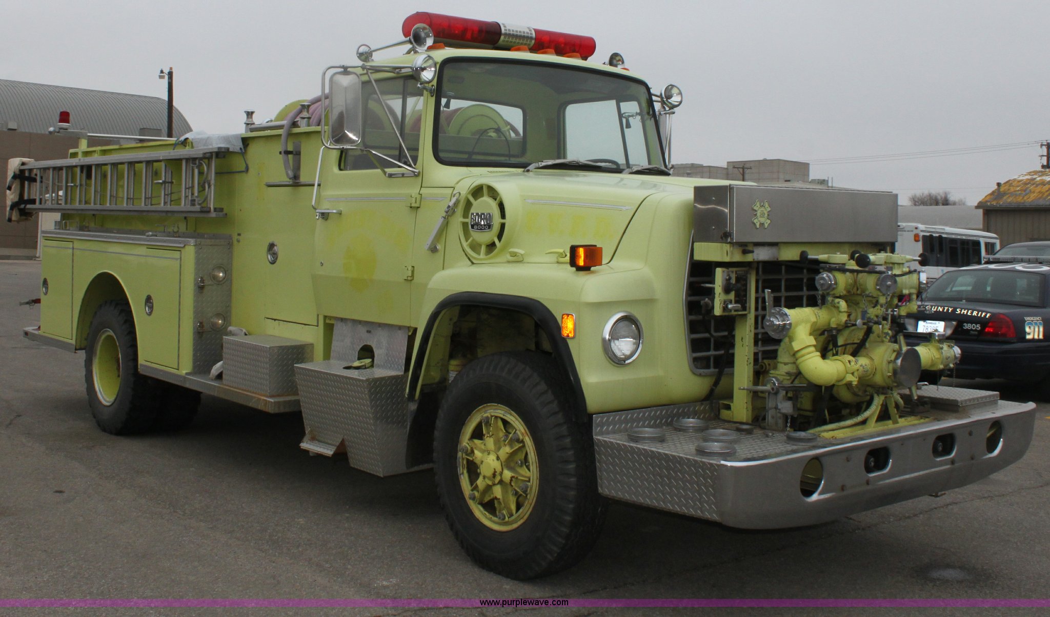 Purple Wave is selling a used Fire Truck or Emergency Vehicle in Kansas. This item is a 1982 Ford L8000 firetruck with the following: 44,032 miles on odometer, Caterpillar 3208 diesel engine, 210 HP, 10 speed split axle manual transmission, Heater, Air brakes, Federal siren controls, Motorola two-way radio, 3-D Fire apparatus beacon controls, American fire pump, 1,000 GPM capacity, (2) 1.5" hose reels, Electric rewind, 1.5" rear discharge, (4) hard suction lines, 11.00-20 tires, Ladder included
