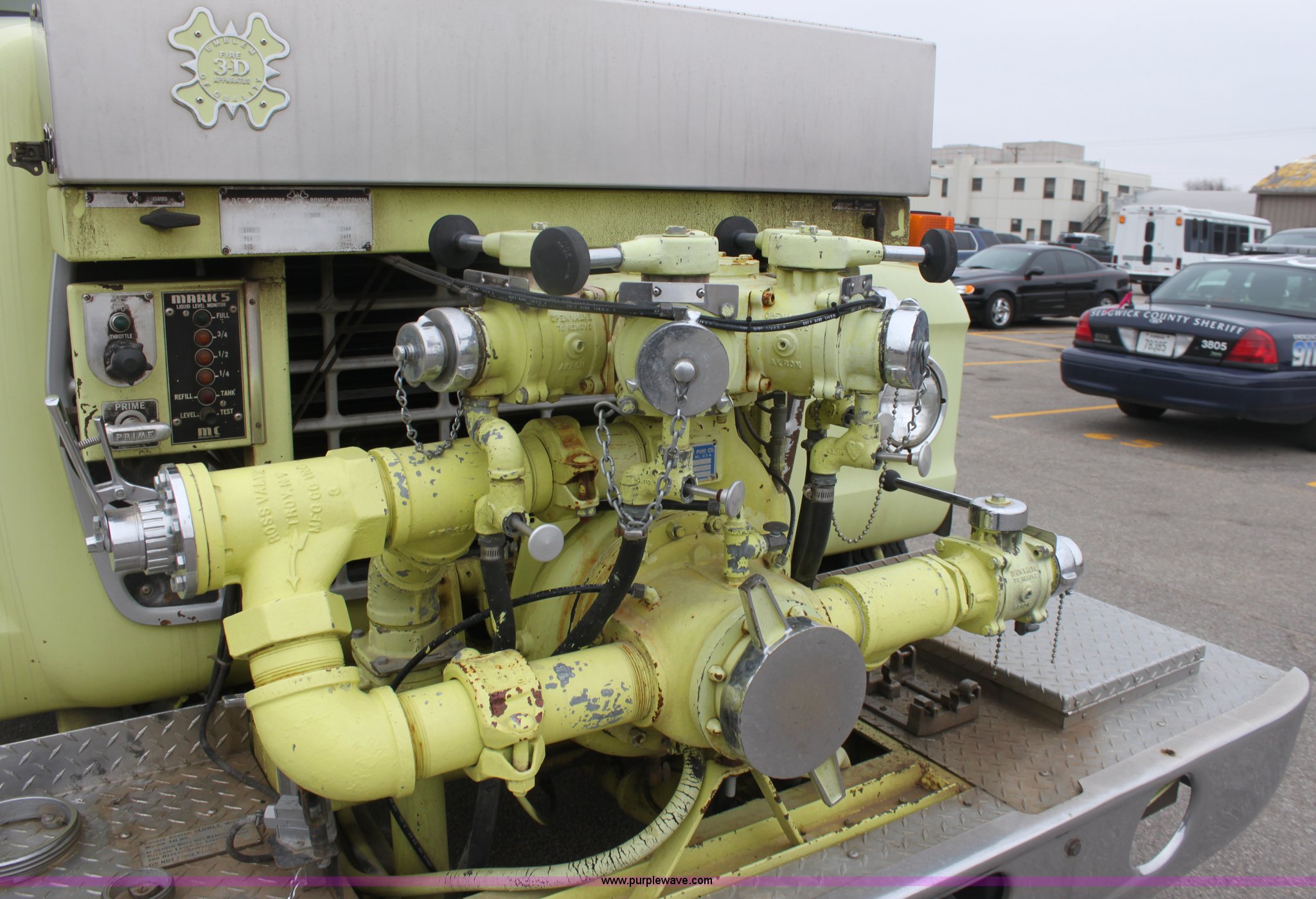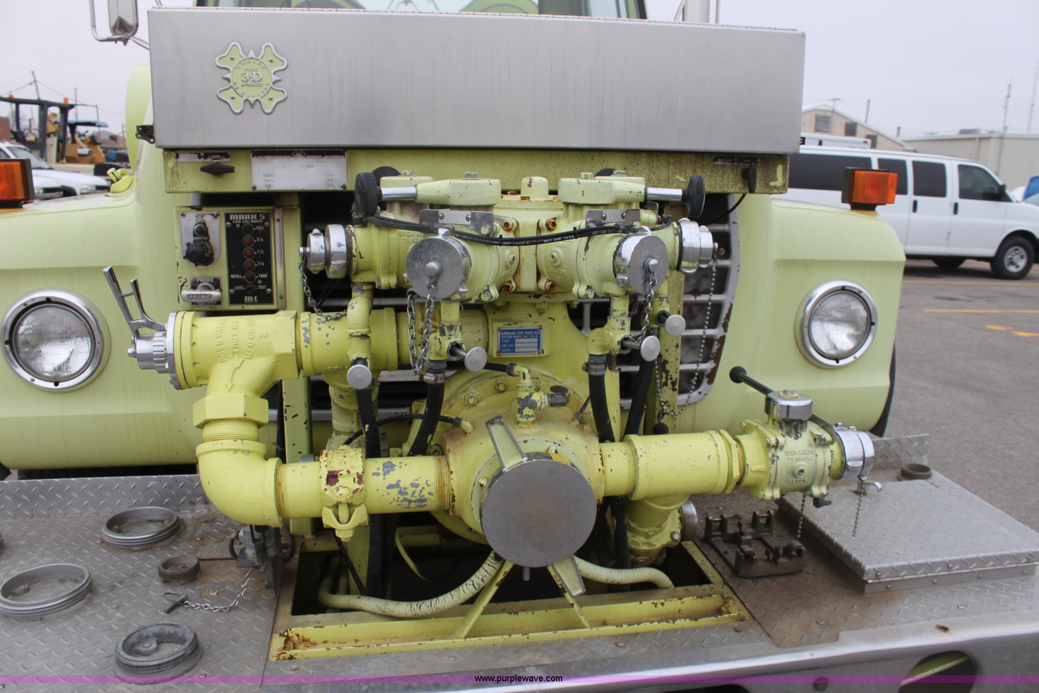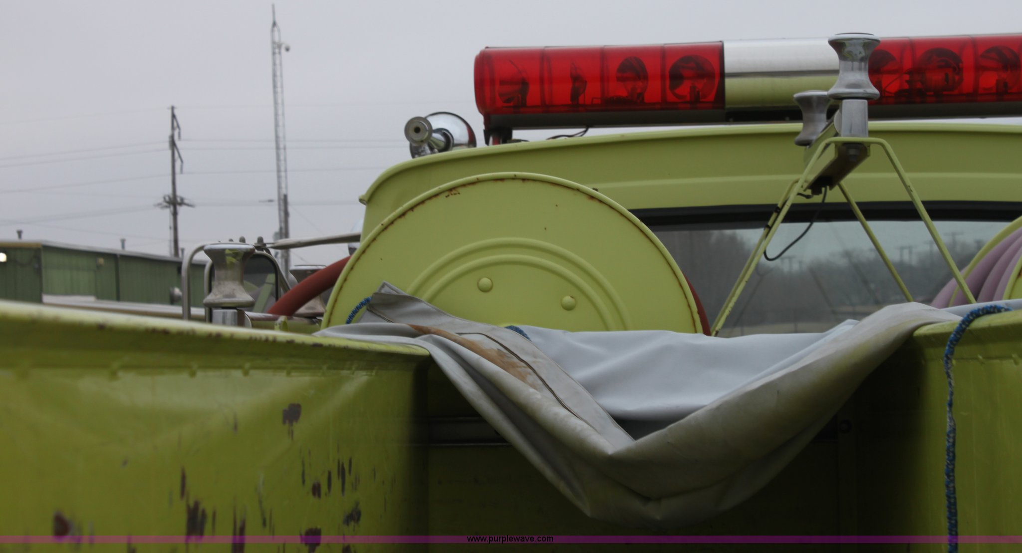 Purple Wave is selling a used Fire Truck or Emergency Vehicle in Kansas. This item is a 1982 Ford L8000 firetruck with the following: 44,032 miles on odometer, Caterpillar 3208 diesel engine, 210 HP, 10 speed split axle manual transmission, Heater, Air brakes, Federal siren controls, Motorola two-way radio, 3-D Fire apparatus beacon controls, American fire pump, 1,000 GPM capacity, (2) 1.5" hose reels, Electric rewind, 1.5" rear discharge, (4) hard suction lines, 11.00-20 tires, Ladder included