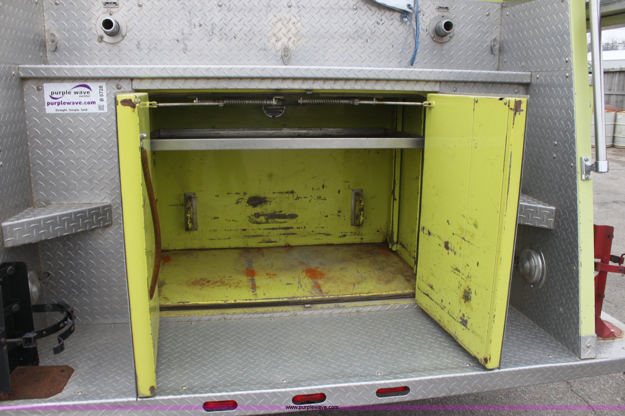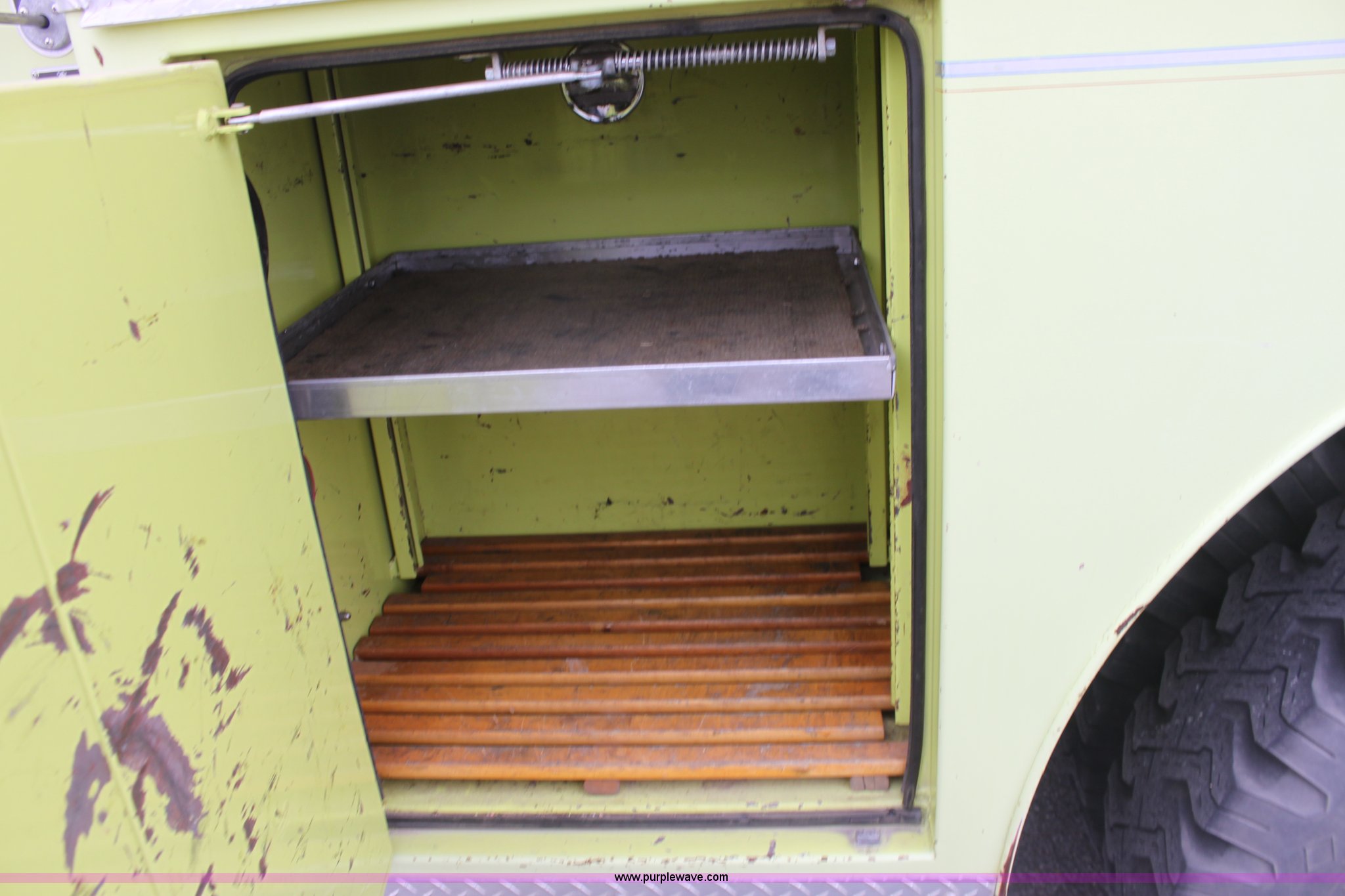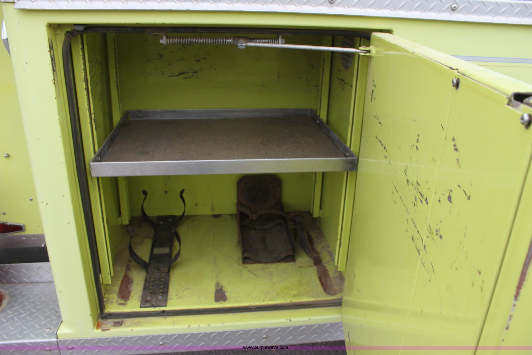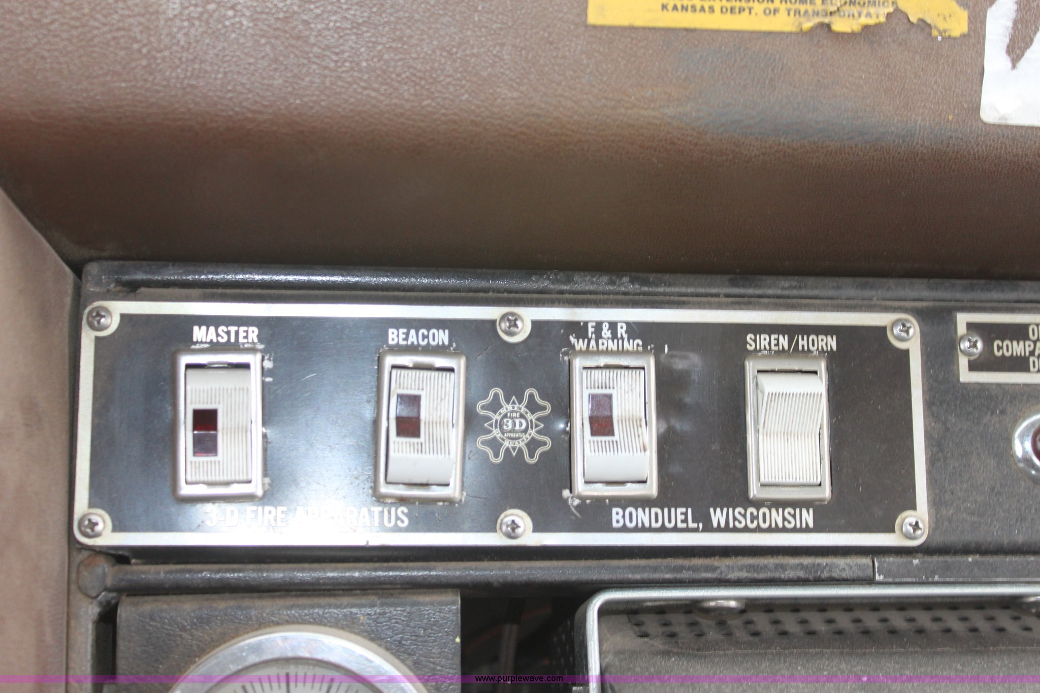 Purple Wave is selling a used Fire Truck or Emergency Vehicle in Kansas. This item is a 1982 Ford L8000 firetruck with the following: 44,032 miles on odometer, Caterpillar 3208 diesel engine, 210 HP, 10 speed split axle manual transmission, Heater, Air brakes, Federal siren controls, Motorola two-way radio, 3-D Fire apparatus beacon controls, American fire pump, 1,000 GPM capacity, (2) 1.5" hose reels, Electric rewind, 1.5" rear discharge, (4) hard suction lines, 11.00-20 tires, Ladder included