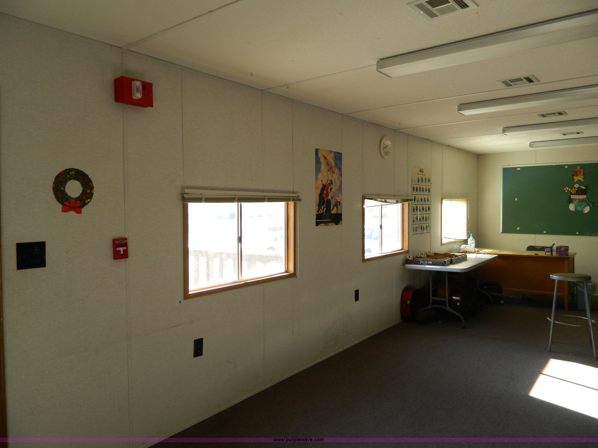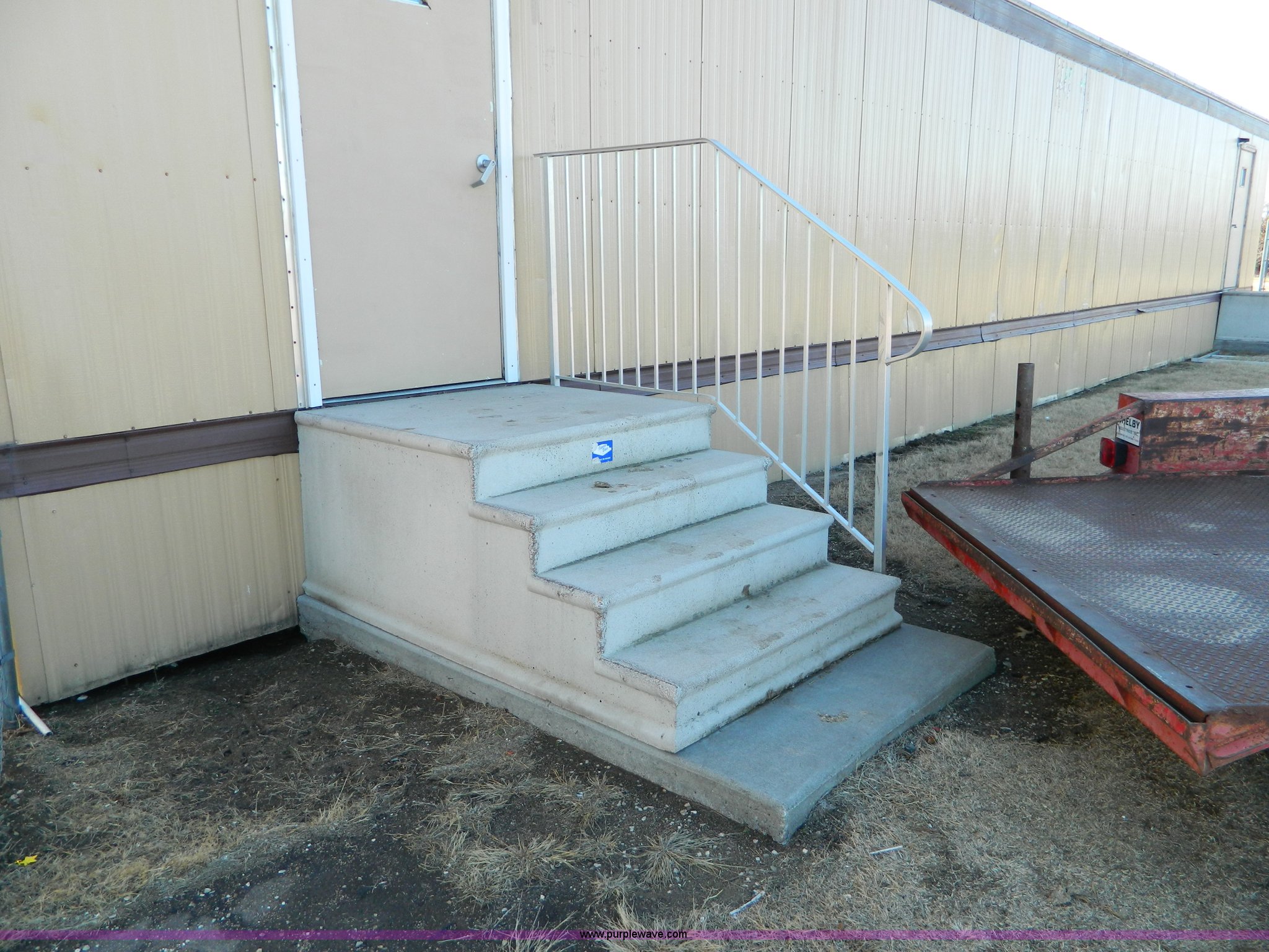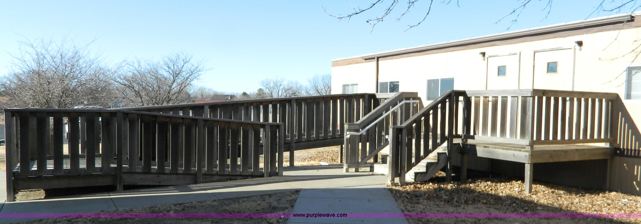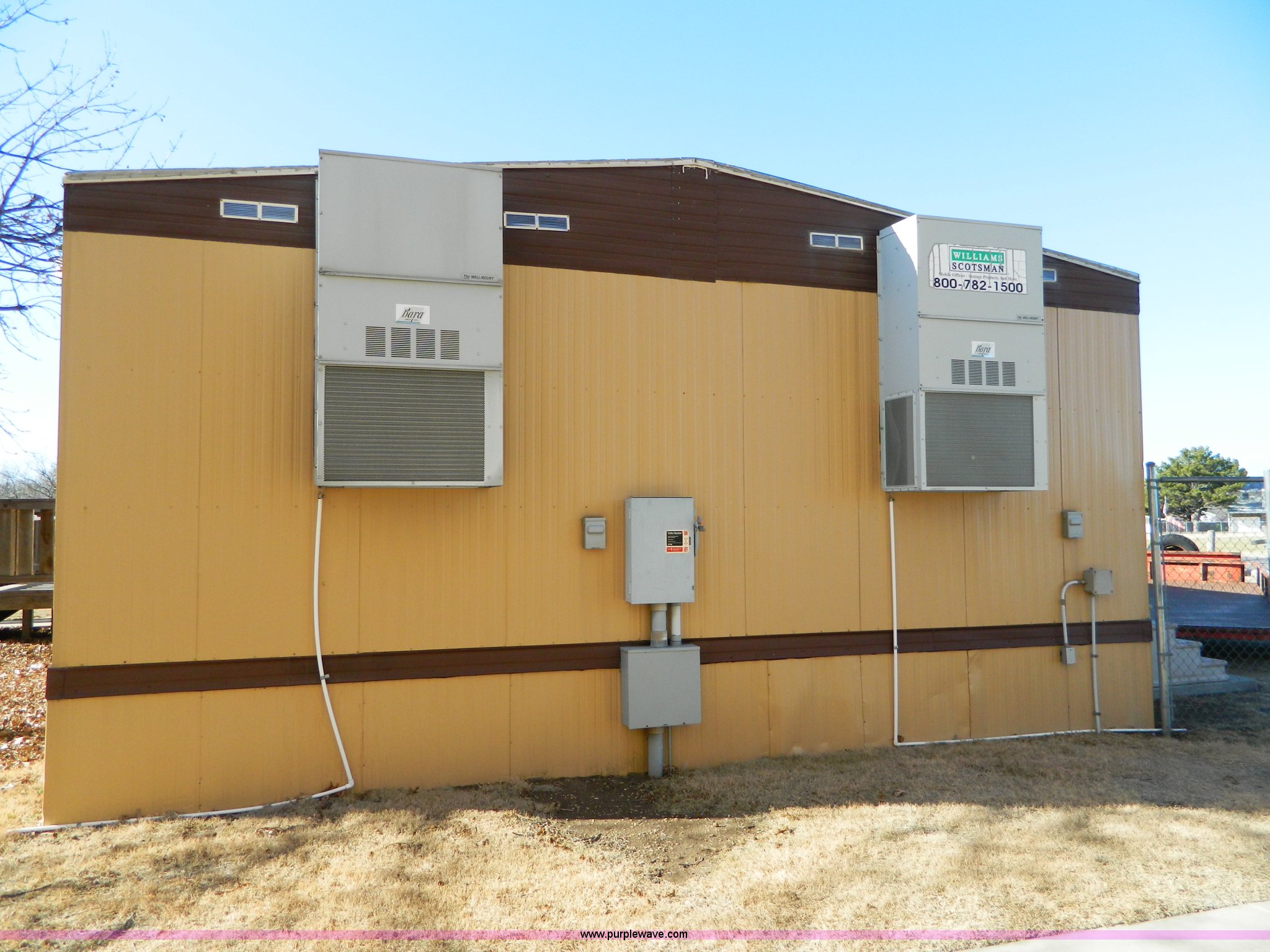 Purple Wave is selling a used Manufactured Home or Office in Kansas. This item is a Williams Scotsman mobile classroom unit with the following: 60' x 24', (4) 36" doors, Central HVAC units, R-11 insulation, Aluminum siding and skirting, Lighting and attached fixtures included, Decking stairs and porches included, Axles, tires, and hitches removed but included, No personal property pictured included, Unit accessible from asphalt for removal, Utilities will be disconnected by the seller at the panels or hookups, Buyer responsible for all aspects of loadout and removal, A $2,500 good faith deposit is required in addition to the final bid price, Buyer must furnish a minimum $300,000 general liability insurance policy prior to removal