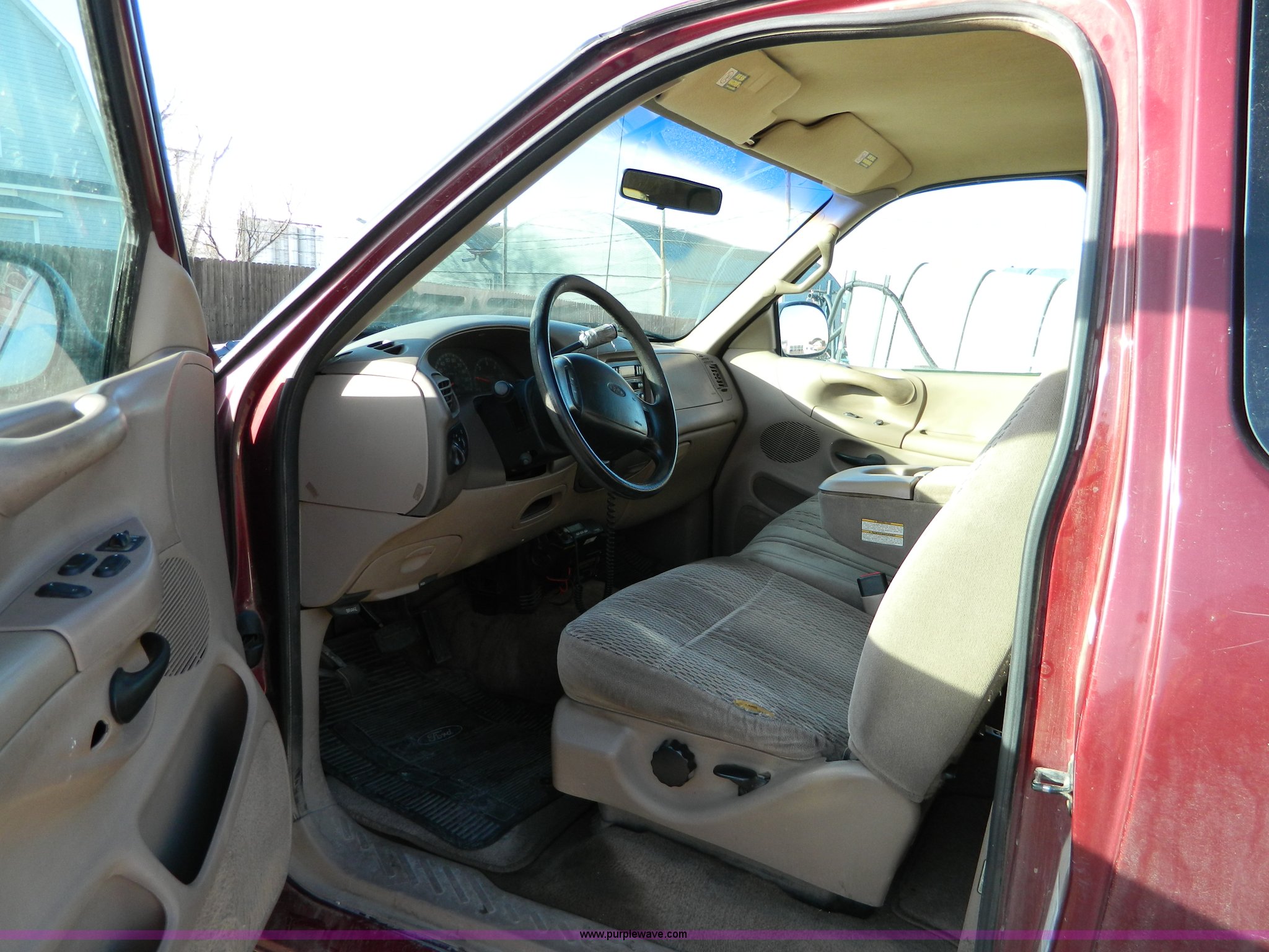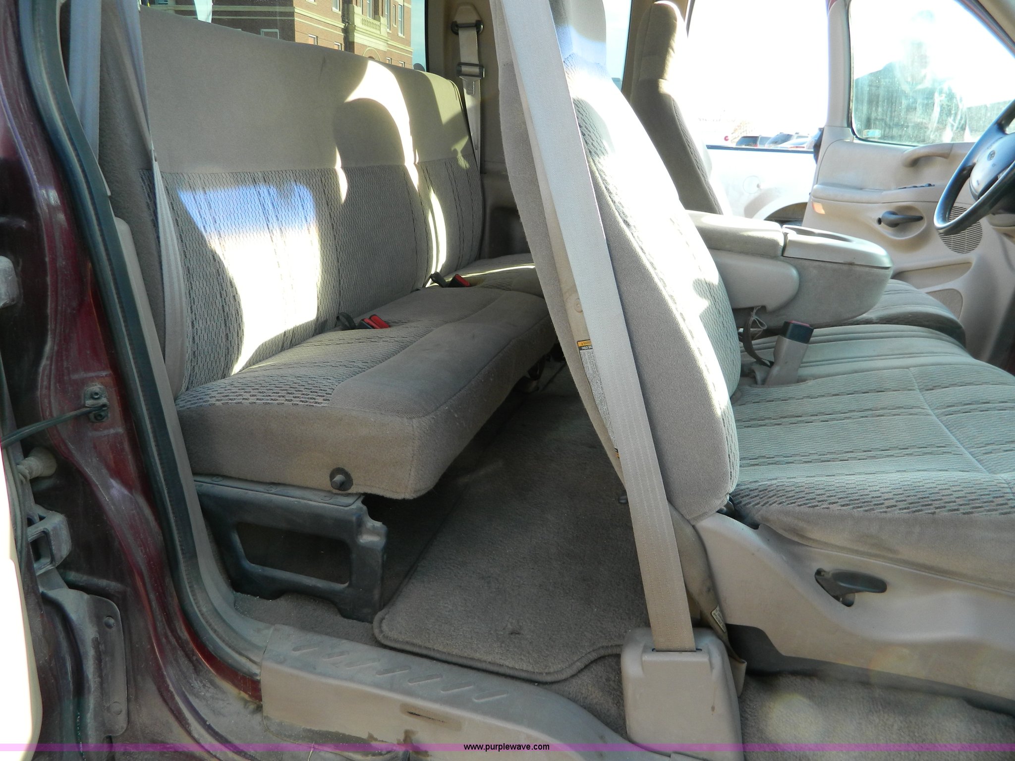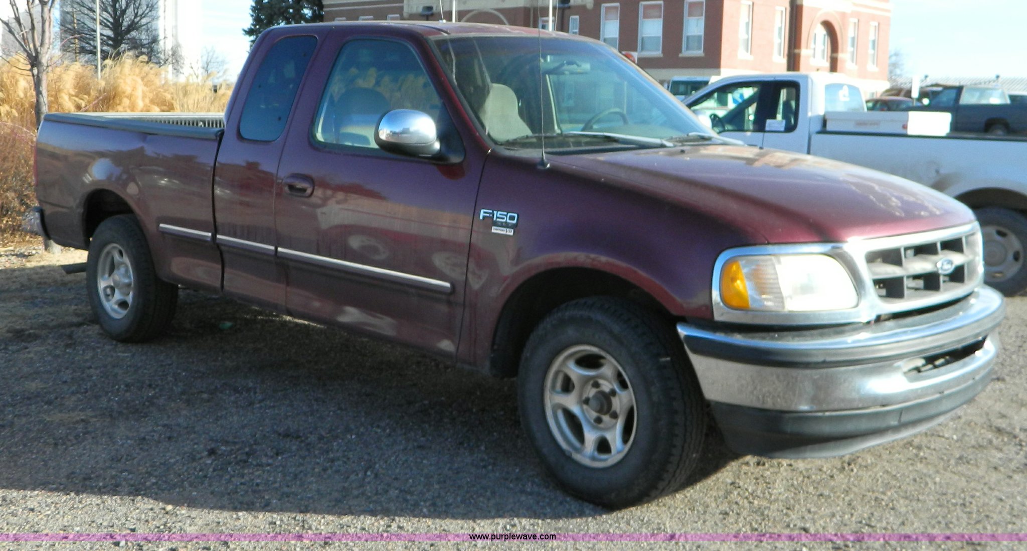 Purple Wave is selling a used Passenger Vehicle in Kansas. This item is a 1998 Ford F150 supercab pickup truck with the following: 174,919 miles on odometer, Triton 4.6L V8 EFI engine, Automatic transmission, AC and heat, Tilt, Cruise, AM/FM/Cassette, Power windows and locks, Cloth interior, Bed liner, Receiver hitch, P245/75R16 tires, Paint peeling, Cosmetic damage, Cracked windshield