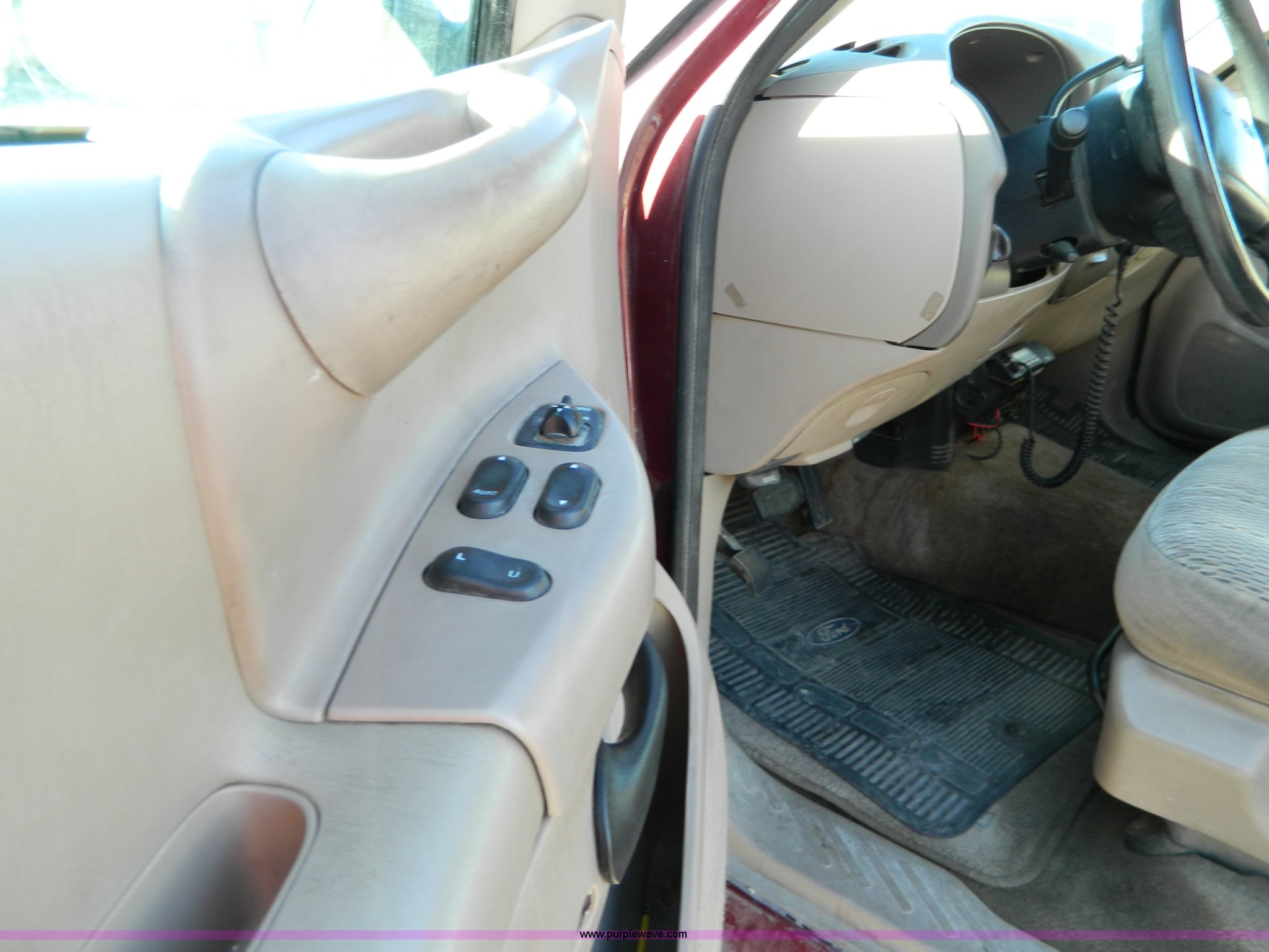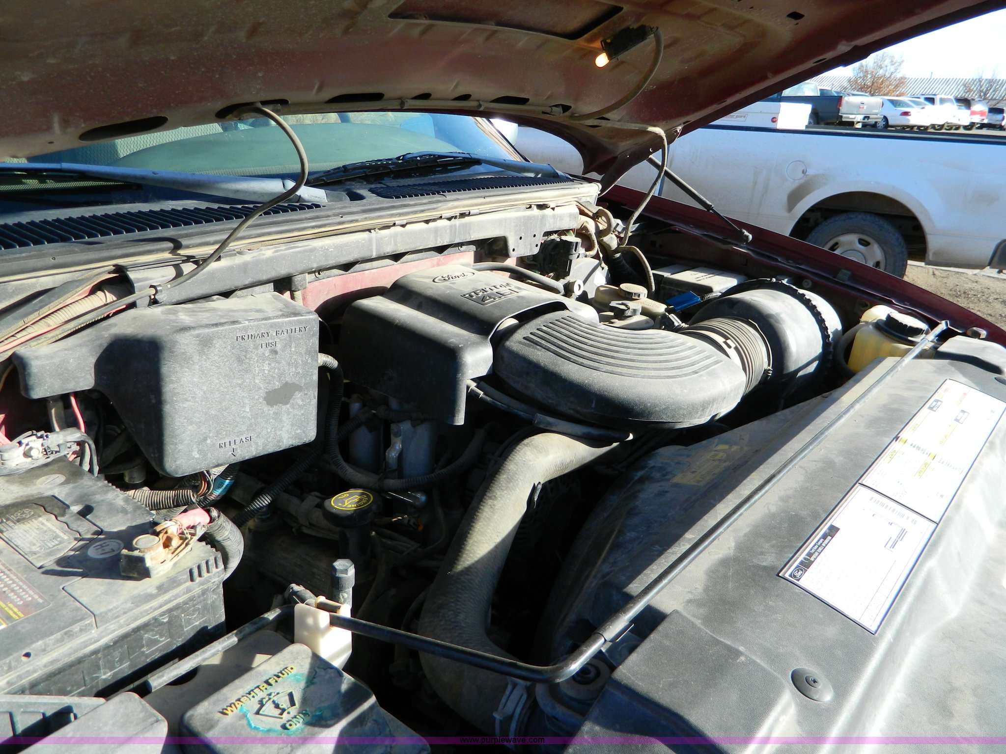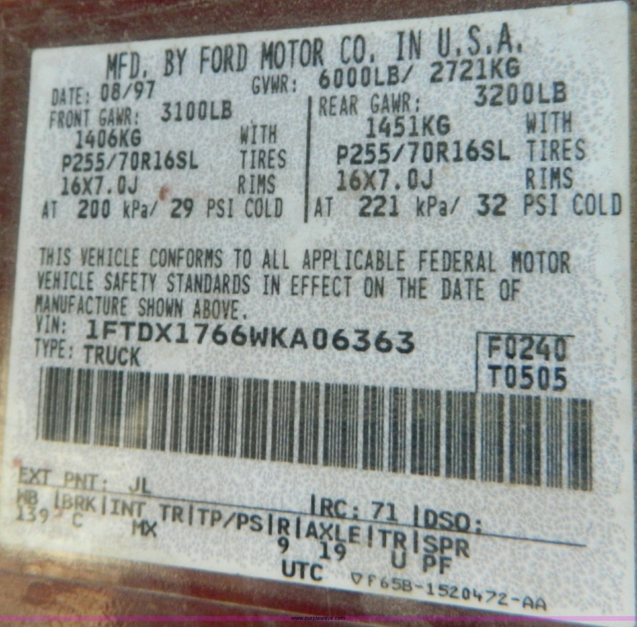 Purple Wave is selling a used Passenger Vehicle in Kansas. This item is a 1998 Ford F150 supercab pickup truck with the following: 174,919 miles on odometer, Triton 4.6L V8 EFI engine, Automatic transmission, AC and heat, Tilt, Cruise, AM/FM/Cassette, Power windows and locks, Cloth interior, Bed liner, Receiver hitch, P245/75R16 tires, Paint peeling, Cosmetic damage, Cracked windshield