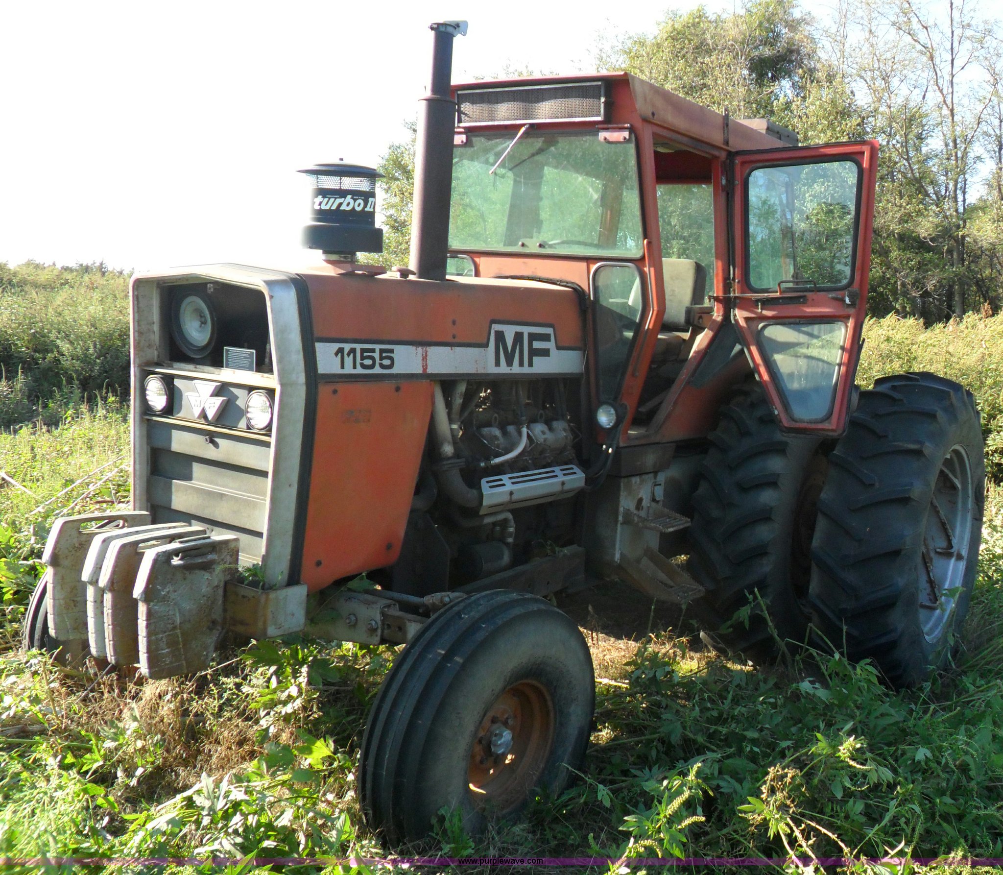 Purple Wave is selling a used Tractor in Kansas. This item is a Massey-Ferguson 1155 tractor with the following: 6,571 hours on meter, V8 engine, Engine is locked up, 540 PTO, (2) hydraulic remote sets, Three point, (4) front weights, Rear wheel weights, 18.4x38 rear tires, (2) new, (2) approx. 50%, 11.00-15SL tires, new, Serial 9B47I40