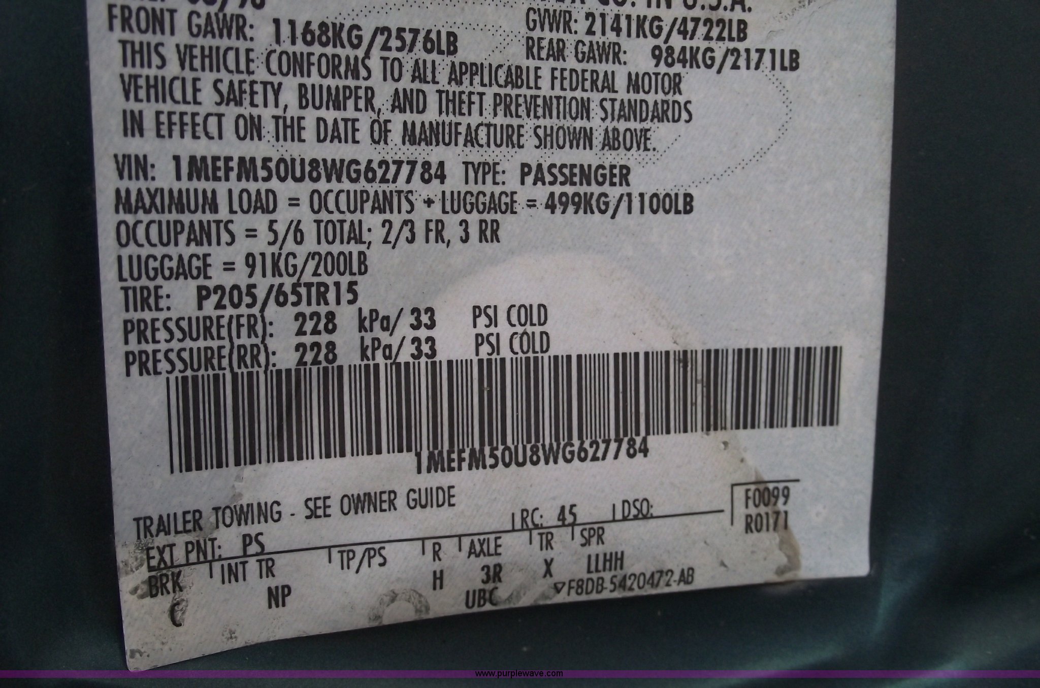 Purple Wave is selling a used Passenger Vehicle in Missouri. This item is a 1998 Mercury Sable GS with the following: 133,506 miles on odometer, 3.0L V6 EFI engine, Automatic transmission, AC and heat, Tilt, Cruise, AM/FM/Cassette, Power windows, locks, mirrors, and seats, Cloth seats, Aluminum wheels, 205/65/15 tires