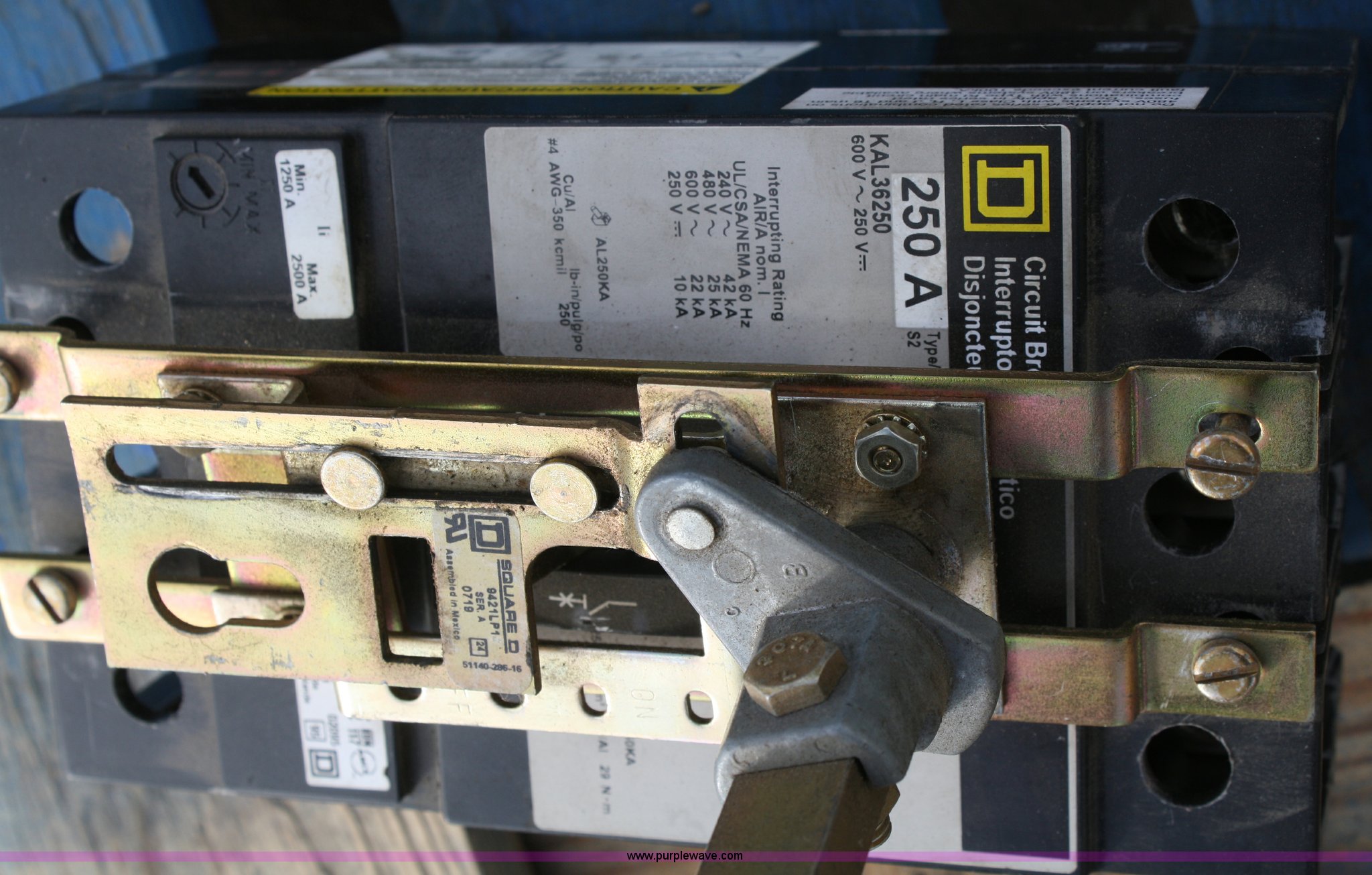 Purple Wave is selling a used Electronics in Kansas. This item is a (4) three phase breakers with the following: 600v, 250 amp, (3) 600v, 300 amp