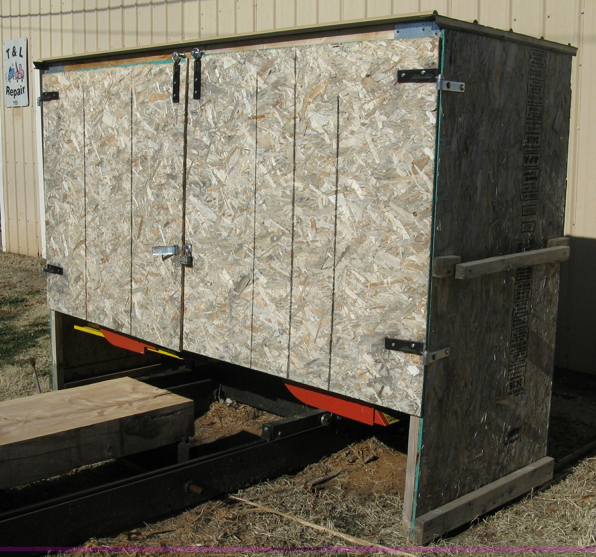 Purple Wave is selling a used Other Industrial or Business in Kansas. This item is a Timber King 1220 saw mill with the following: Kohler Command Pro 15 gas engine, Horizontal band saw, Manual adjust saw height, 5 gallon lube tank, 20"W max cut, 12'L track, (4) material hold down bars, Operation manual included, Custom exterior saw cabinet/shed on casters included, Serial 3678