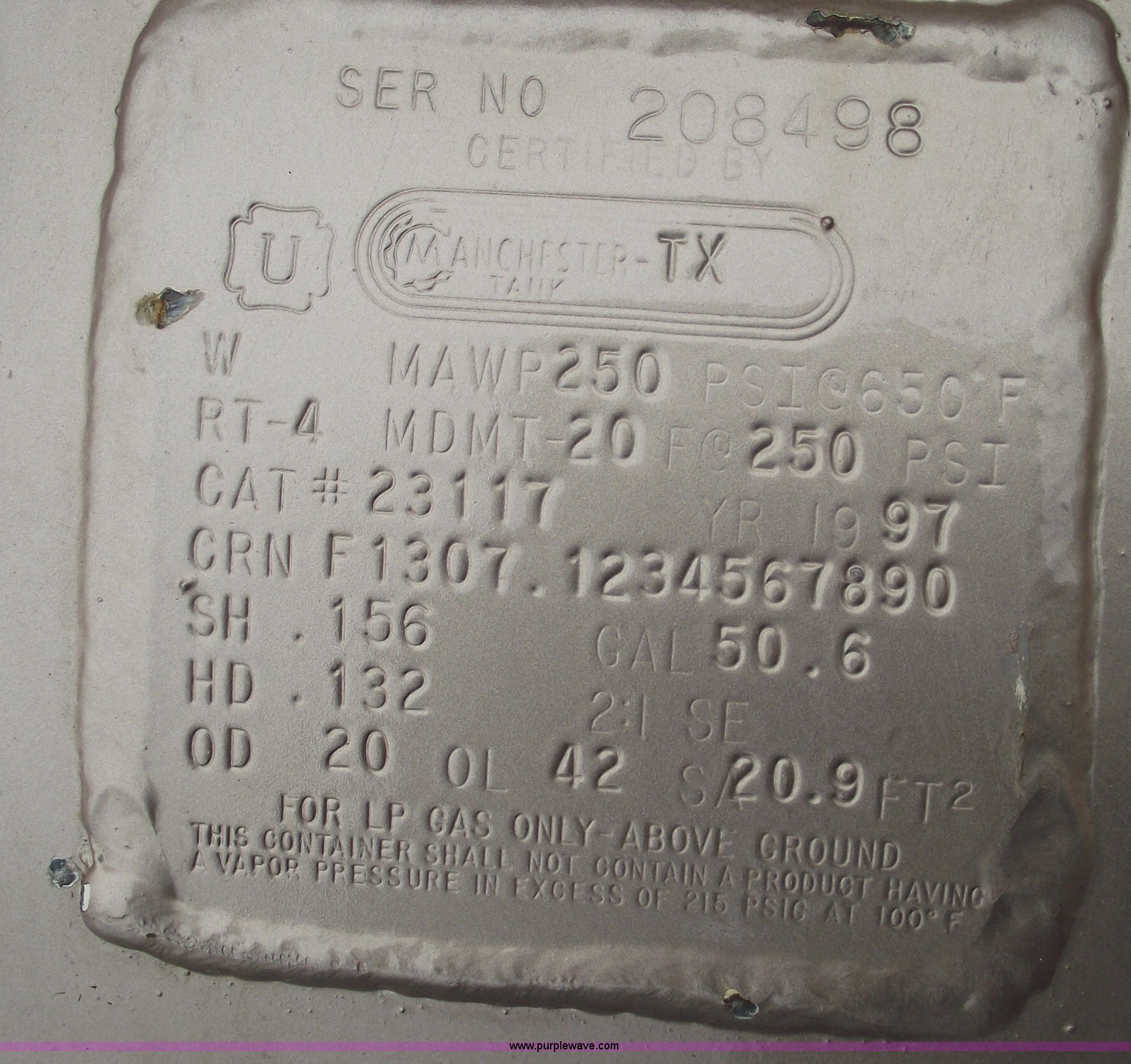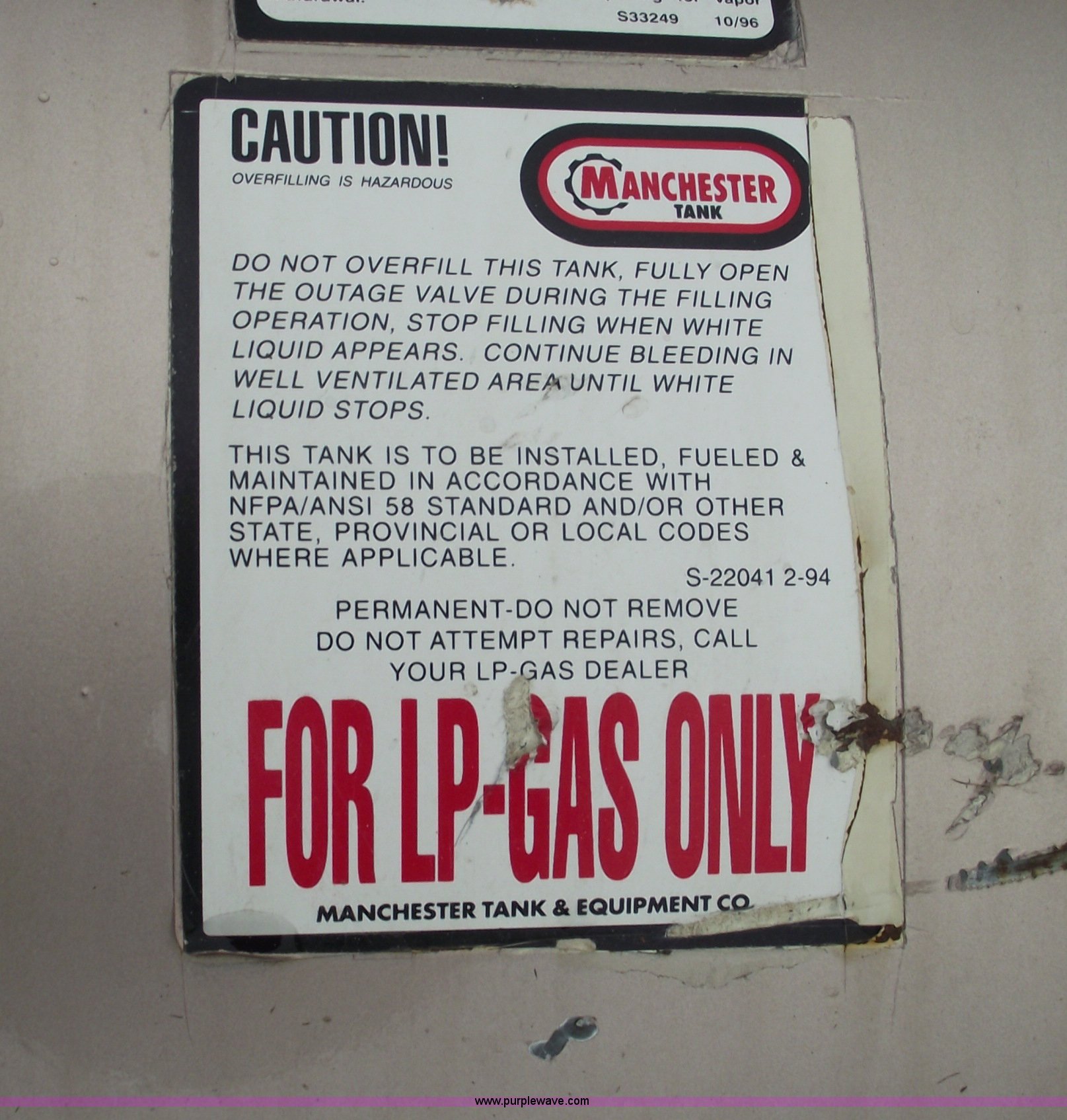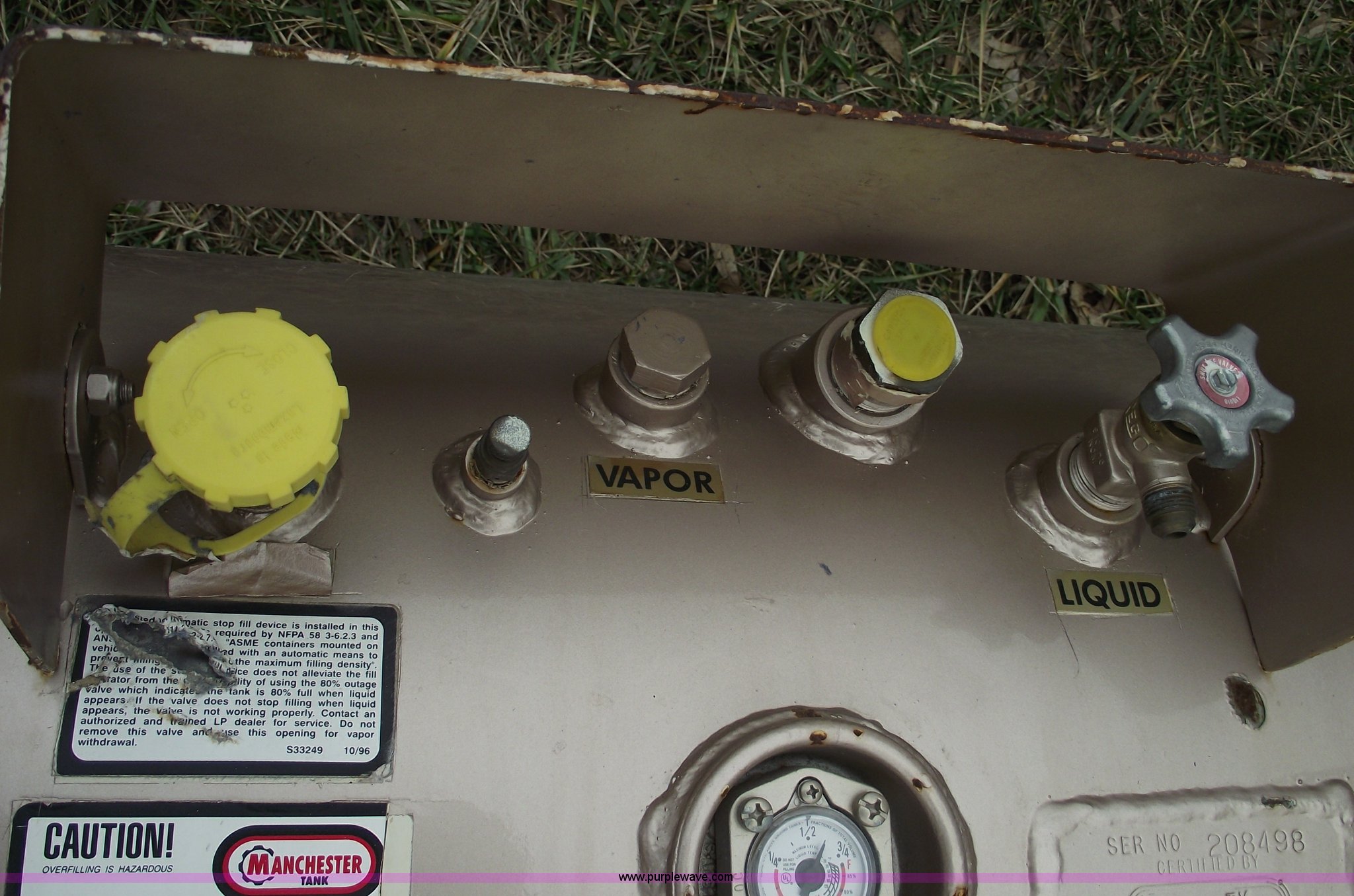 Purple Wave is selling a used Fuel and Lube in Missouri. This item is a Manchester 50 gallon propane tank with gauge with the following: Manchester 50 gallon propane tank with gauge. Shipping quotes available. Helt's Turf Farms. 24600 E State Rt. P. Pleasant Hill, MO 64080