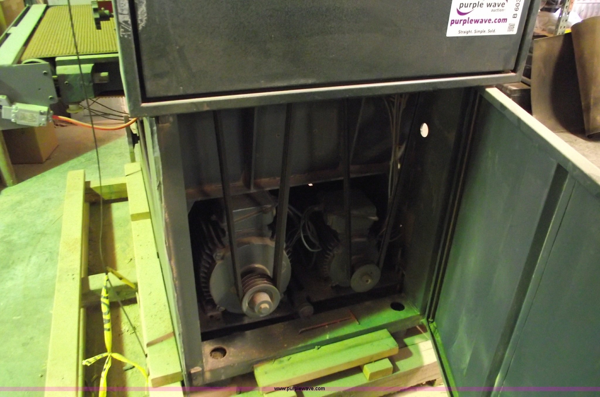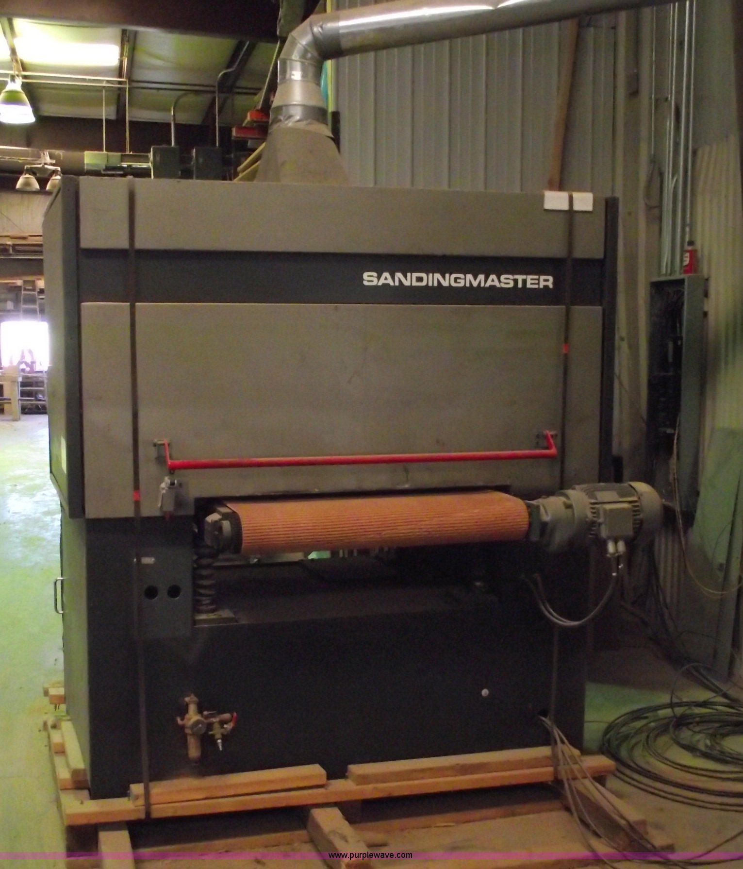 Purple Wave is selling a used Tools in Missouri. This item is a Sanding Master 36" commercial double belt sander with the following: Type CSB2-900, 220V, Recently replaced conveyor belts, sand paper belts, bearings, drive belts, and switches, Skid mounted, Comes with dust collector, Serial 375773