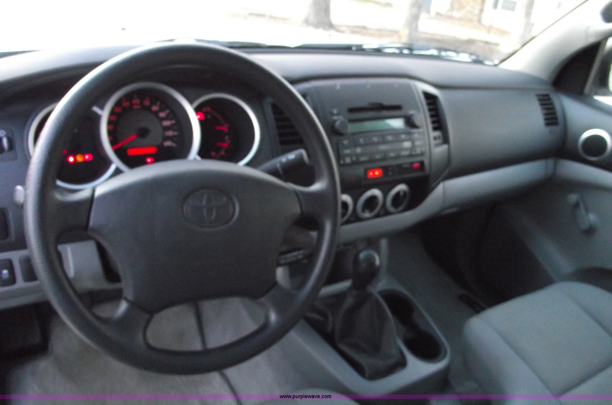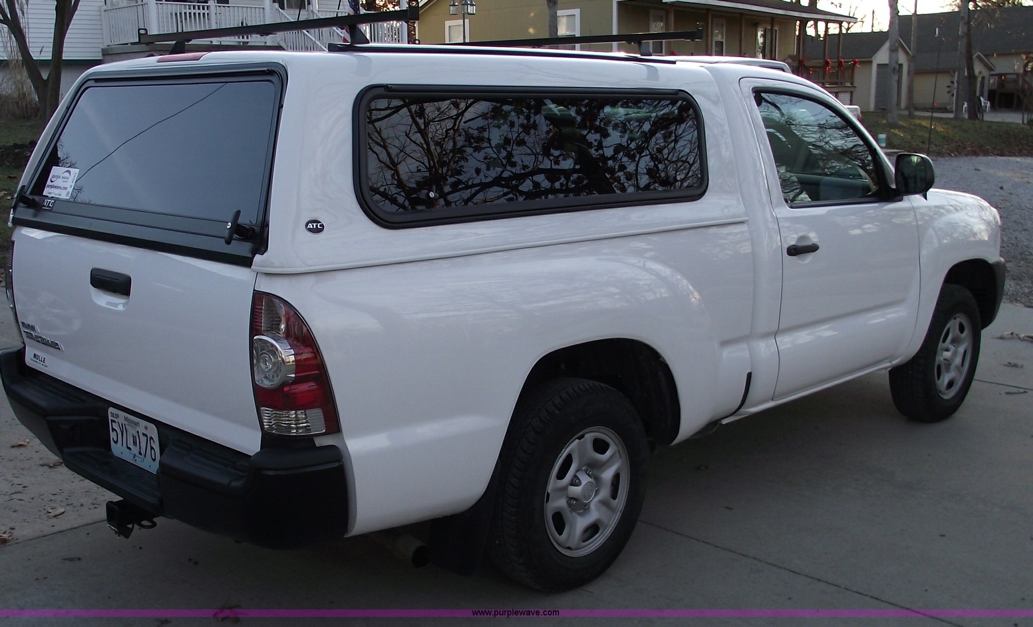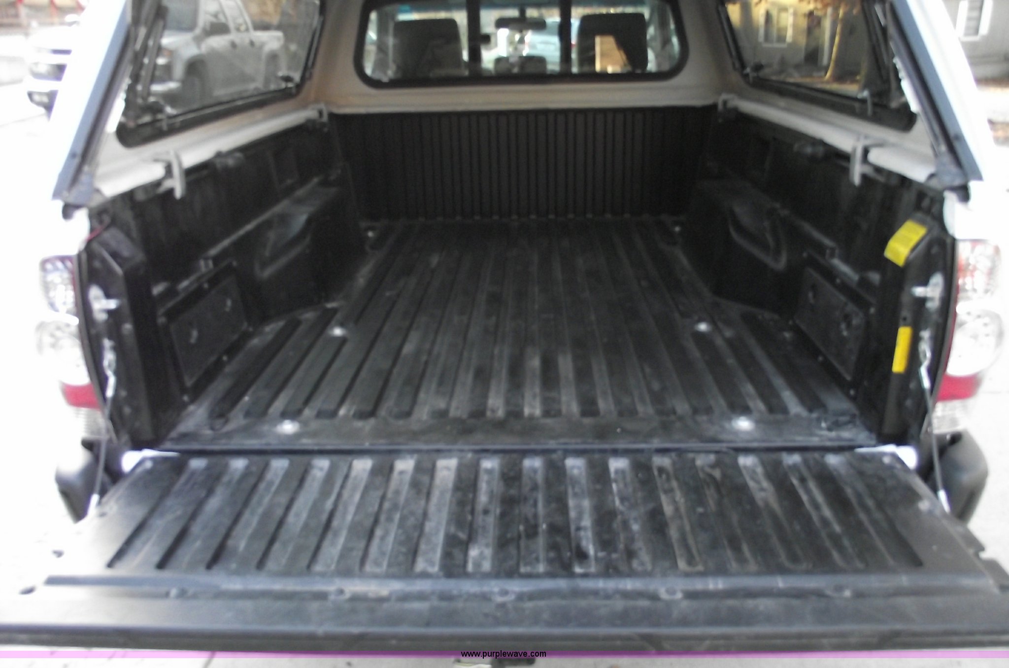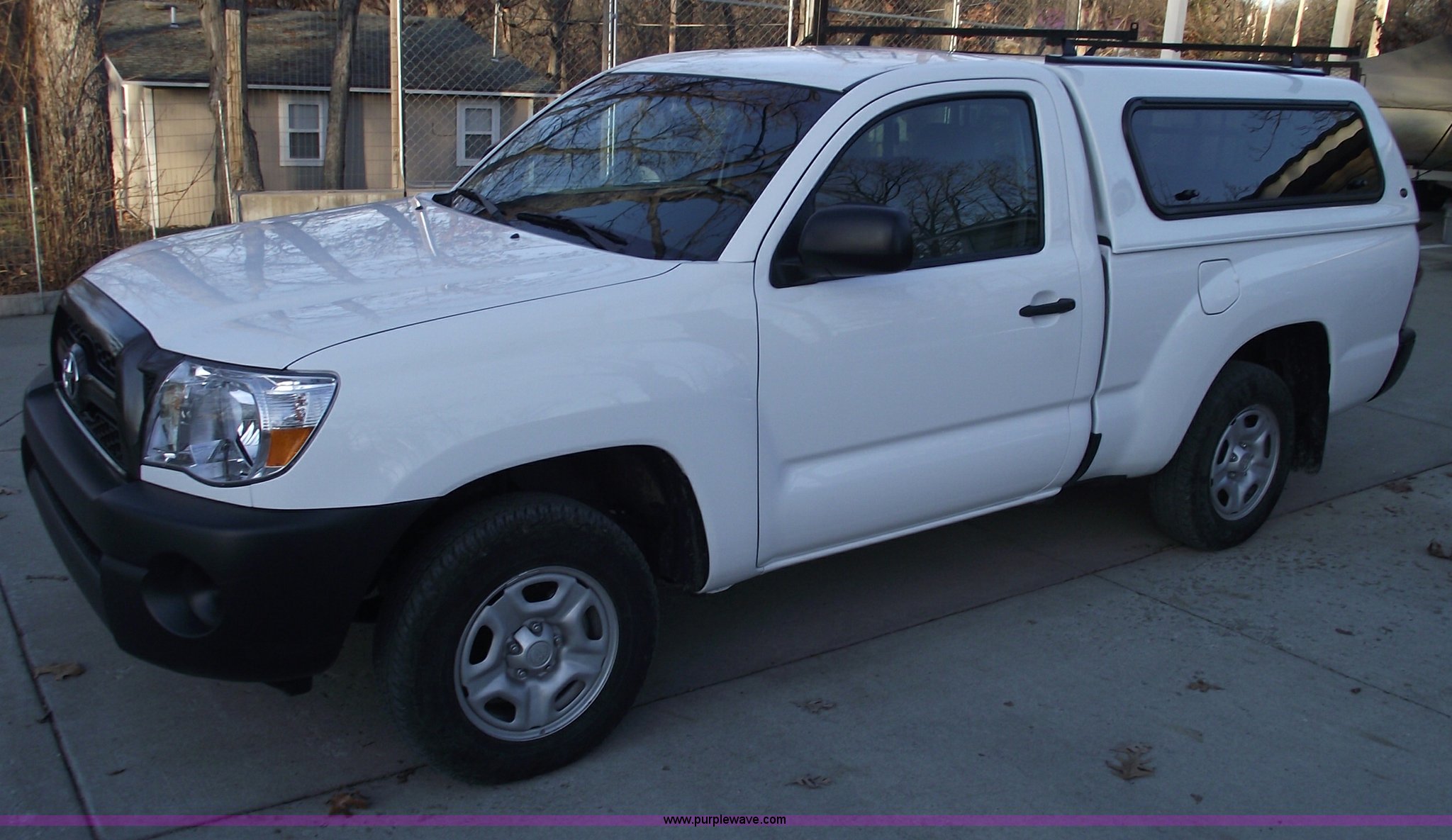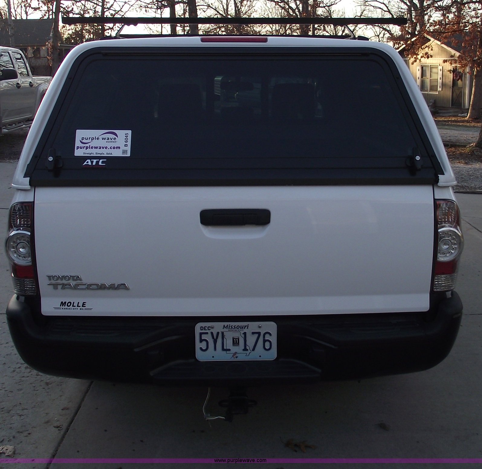 Purple Wave is selling a used Compact Pickup or Van in Missouri. This item is a 2011 Toyota Tacoma pickup truck with the following: 19,760 miles on odometer, 2.7L I4 EFI engine, Five speed manual transmission, AC and heat, AM/FM/CD/MP3, Manual windows and locks, Cloth interior, Sliding rear glass, Traction control button, ATC truck cover, Tinted windows, Double lock all three sides, Roof rack, Receiver hitch, Trailer wiring, 215-70-15 tires