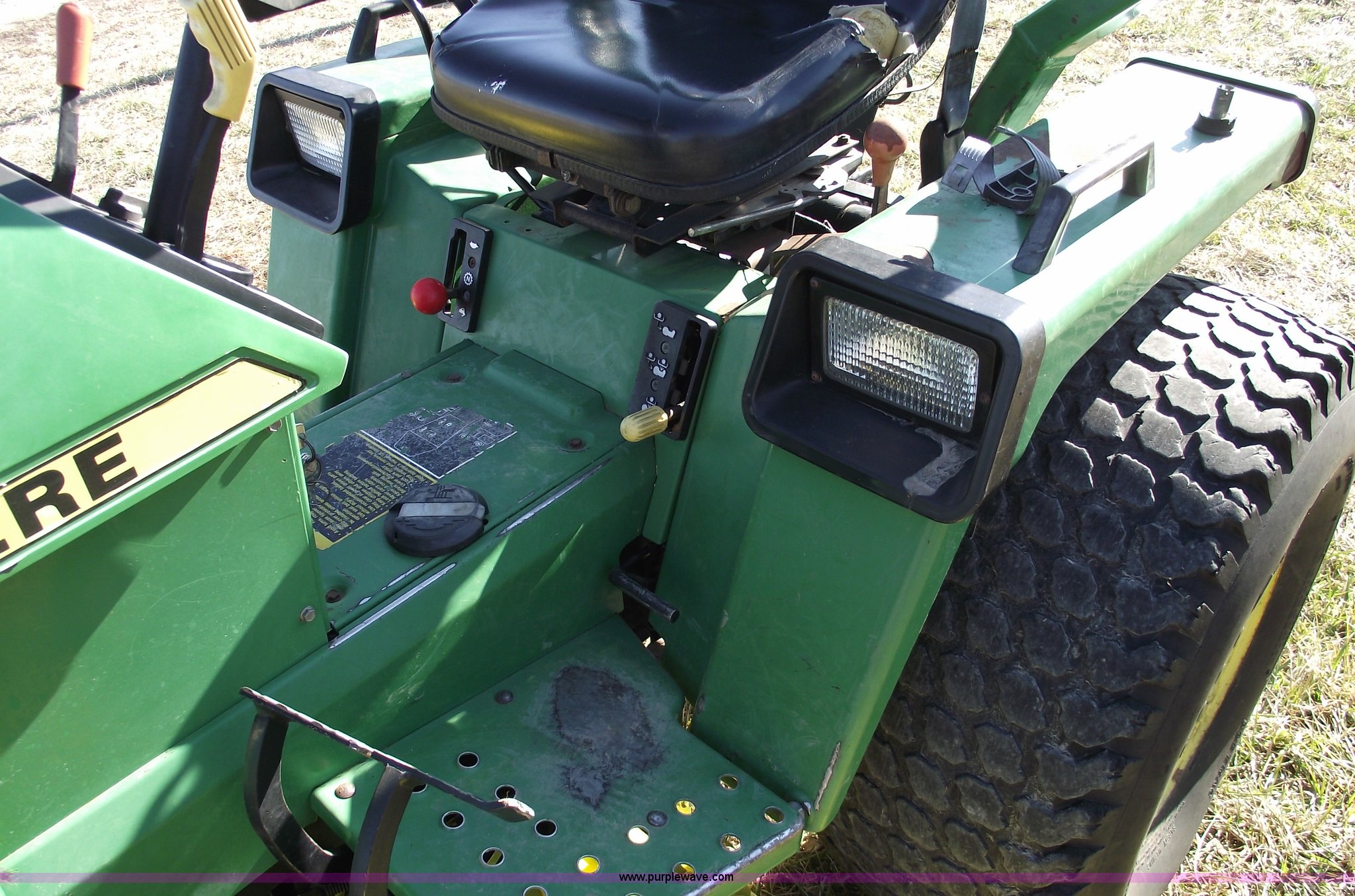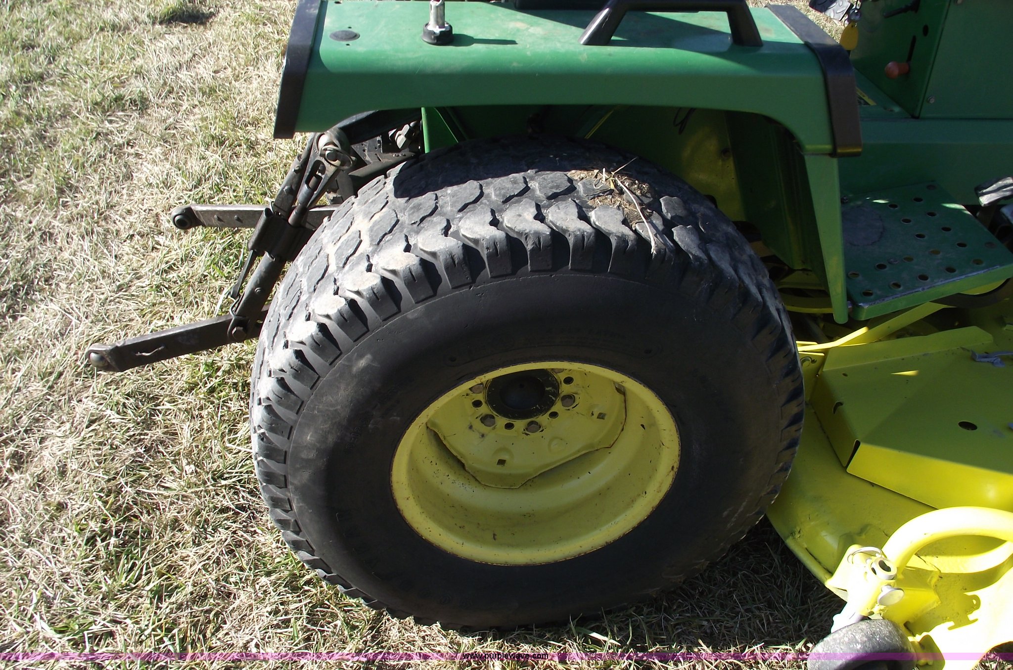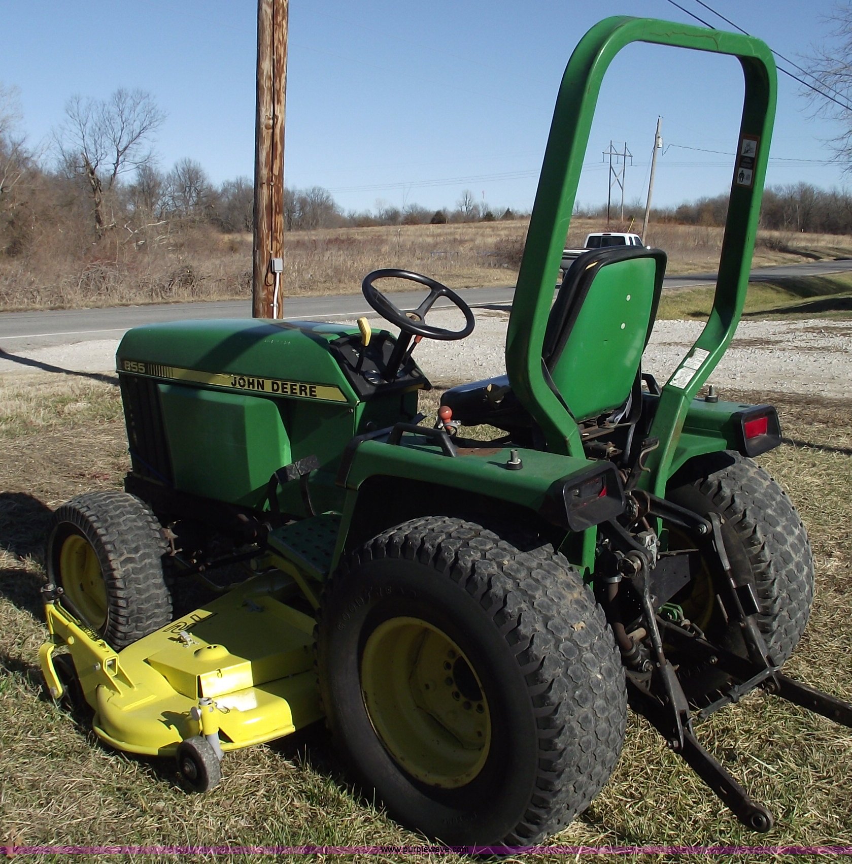 Purple Wave is selling a used Commercial Turf Mower in Missouri. This item is a John Deere 855 lawn tractor with the following: 1,525 hours on meter, Actual hours unknown, meter stopped working Fall 2010, 72" mower deck, John Deere three cylinder diesel engine, 24 HP, Model 3TN75RJ, Serial CH3033D019291, Hydrostatic transmission, Front wheel assist, ROPS, Three point, 540 PTO, Front hydraulic remotes, Joystick mower controls, 23-10.50-12 front tires, 33-12.50-15 rear tires, Serial LV0855C150091