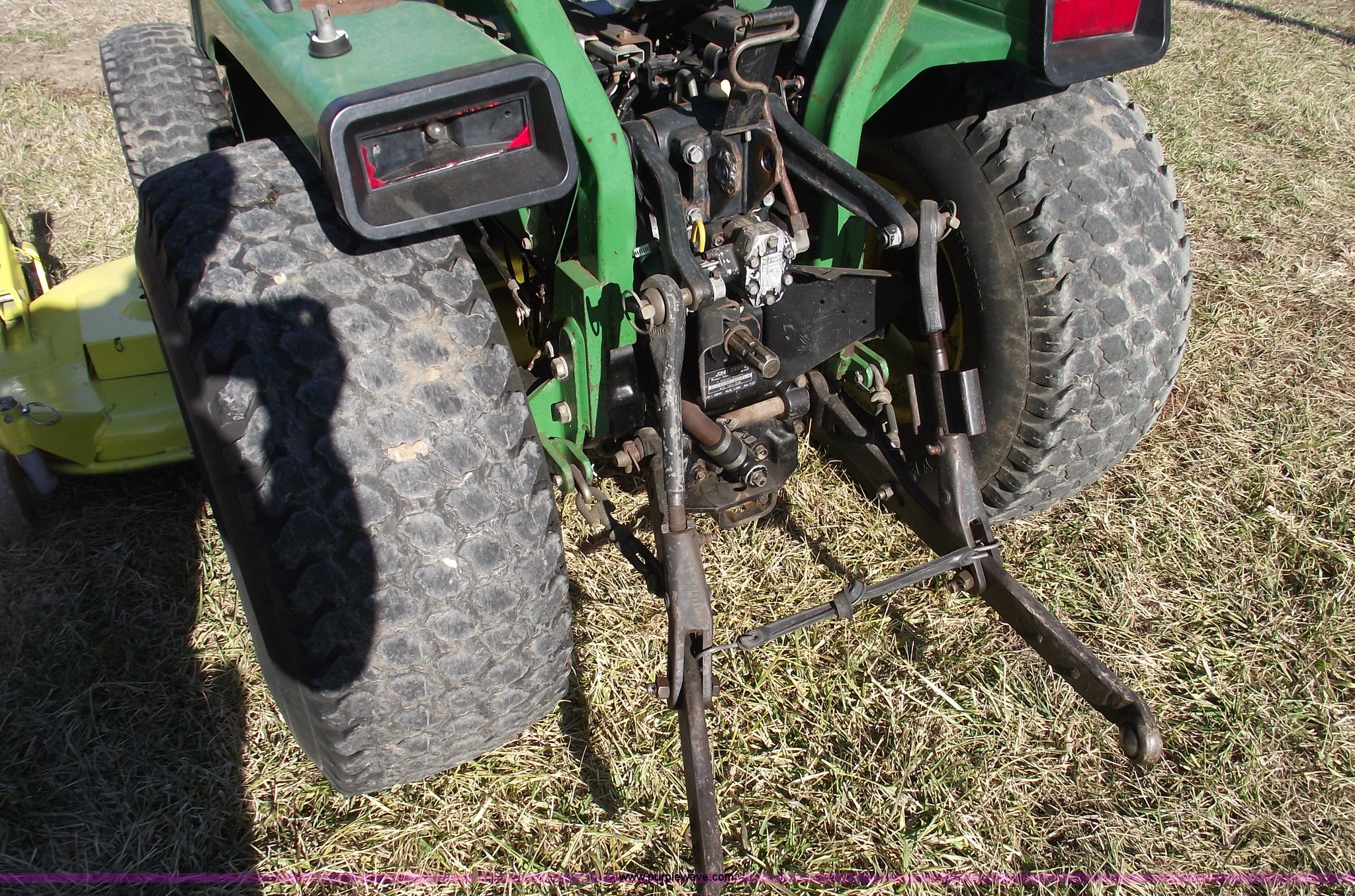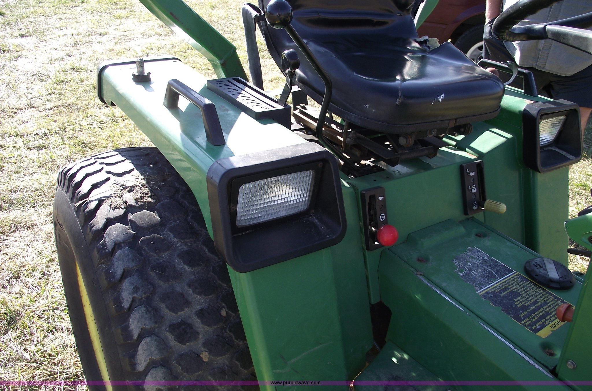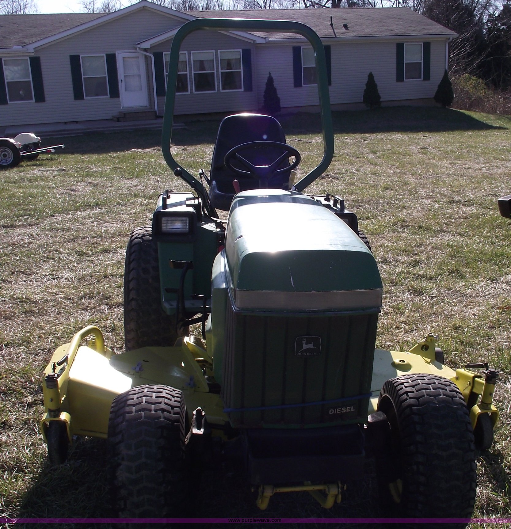 Purple Wave is selling a used Commercial Turf Mower in Missouri. This item is a John Deere 855 lawn tractor with the following: 1,525 hours on meter, Actual hours unknown, meter stopped working Fall 2010, 72" mower deck, John Deere three cylinder diesel engine, 24 HP, Model 3TN75RJ, Serial CH3033D019291, Hydrostatic transmission, Front wheel assist, ROPS, Three point, 540 PTO, Front hydraulic remotes, Joystick mower controls, 23-10.50-12 front tires, 33-12.50-15 rear tires, Serial LV0855C150091
