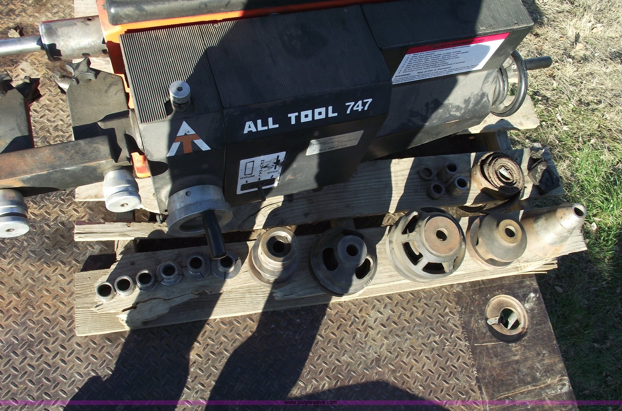 Purple Wave is selling a used Tools in Missouri. This item is a All Tool 747 brake lathe with the following: Work light and stand included, All accessories included, 110V, single phase, Serial 0496105347