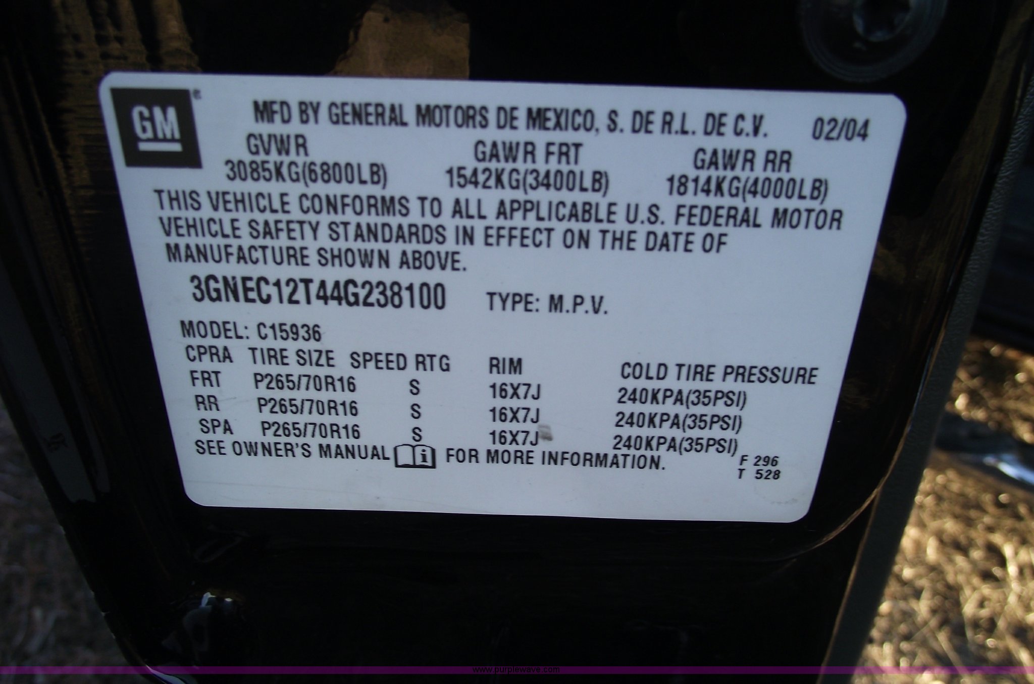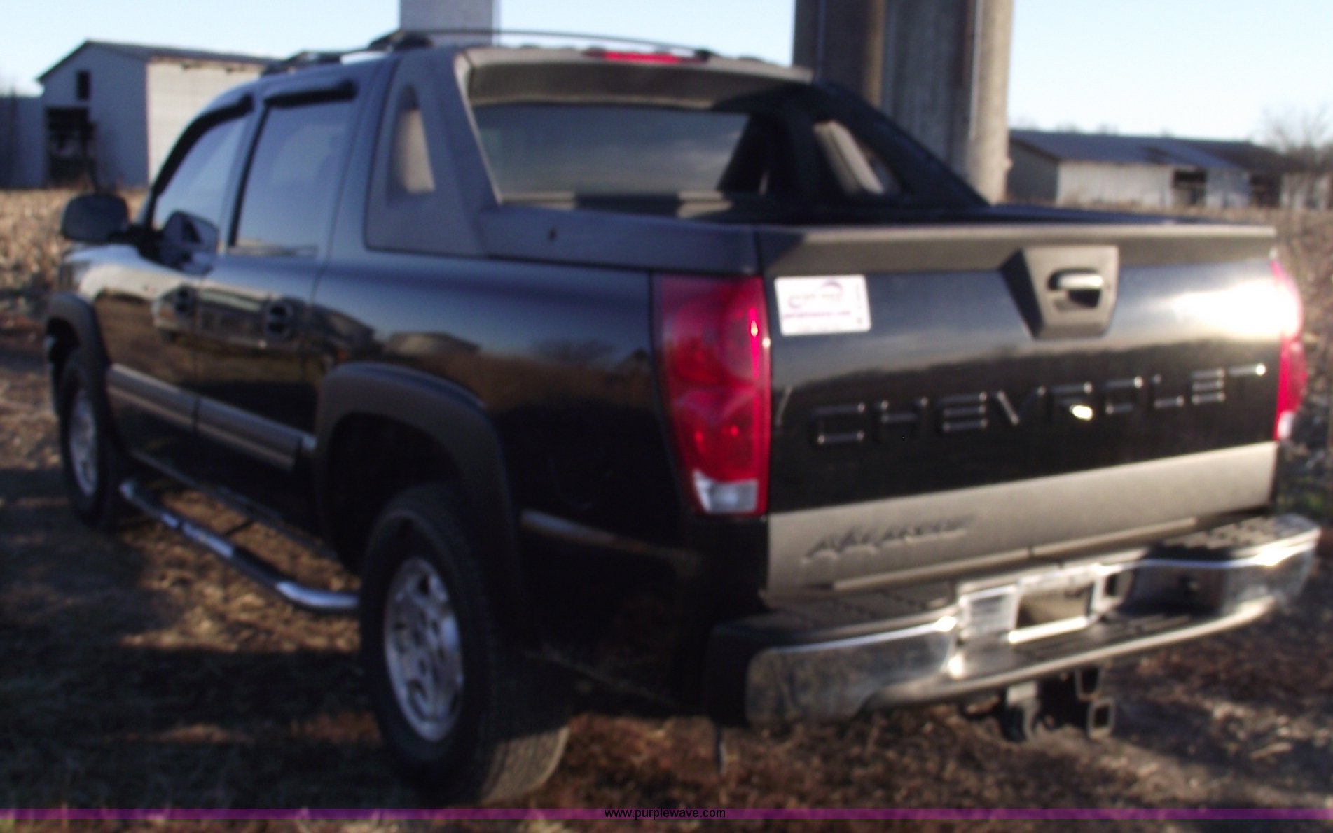 Purple Wave is selling a used 1/2 Ton Pickup or Van in Missouri. This item is a 2004 Chevrolet Avalanche 1500 with the following: 179,964 miles on odometer, 5.3L V8 SFI gas engine, Automatic transmission, AC and heat, Tilt, Cruise, AM/FM/CD, Power windows, locks, mirrors and seats, Cloth interior, Bose sound system, Dual climate control, Vent visors, Vortec, Pickup bed, Receiver hitch, Trailer wiring, Luggage rack, Running boards, Aluminum wheels, 265 75R16 tires, Cracked windshield, Minor cosmetic damage to right rear 1/4 panel