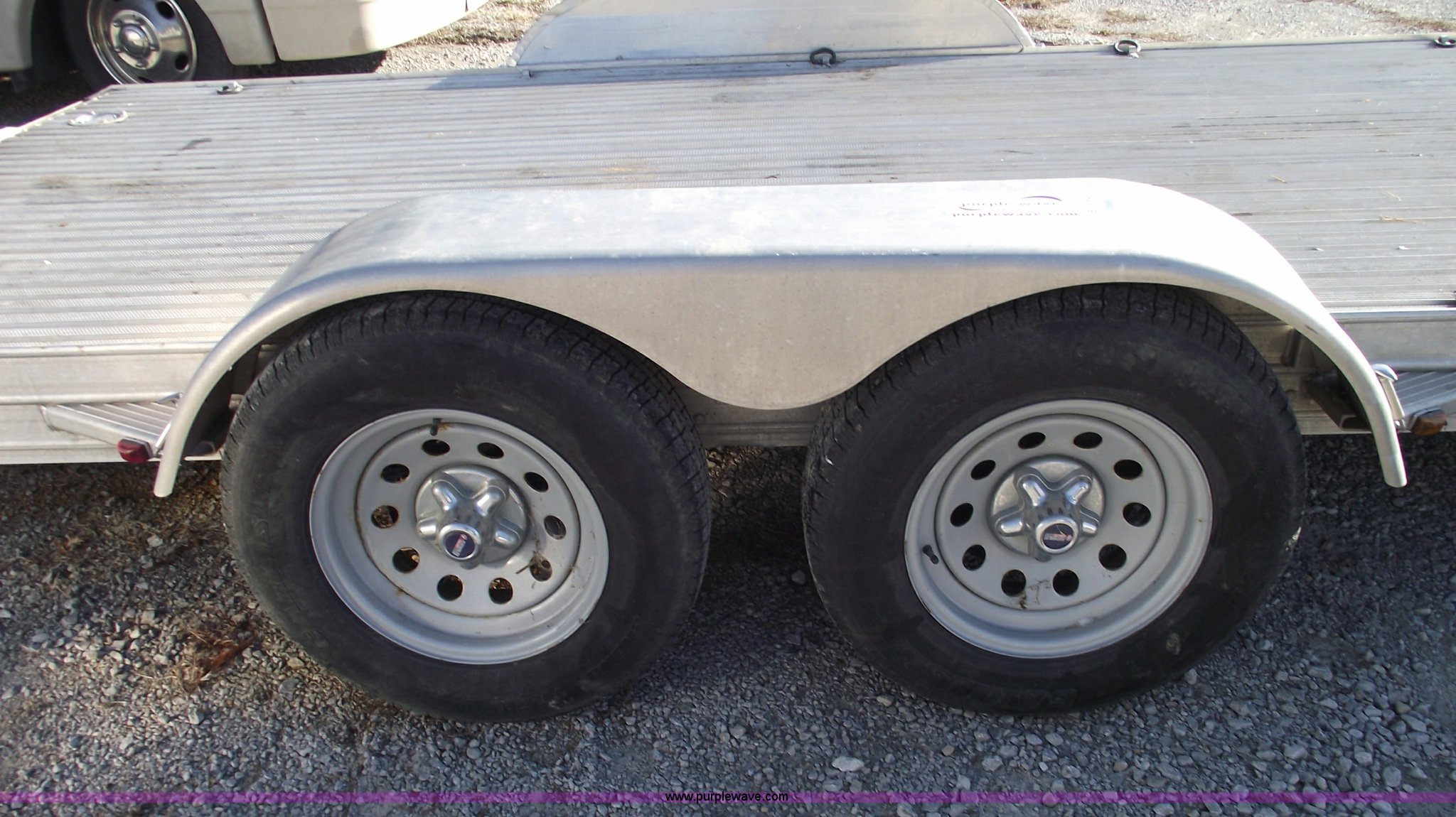 2007 Featherlite 3111 aluminum trailer. 17.5'L x 8.5'W, (2) 5.5' aluminum ramps, Rear enclosed ramp storage, D-ring front and rear, Removable aluminum fenders, Electric brakes with break-away system, Tongue jack, 2 5/16" ball, (2) 3,500 lb axles, GVWR 7,000 lbs, 205-75-15 tires. 4FGA4172X7H097820. Shipping quotes available. 11515 Gallatin St. Kearney, MO 64060