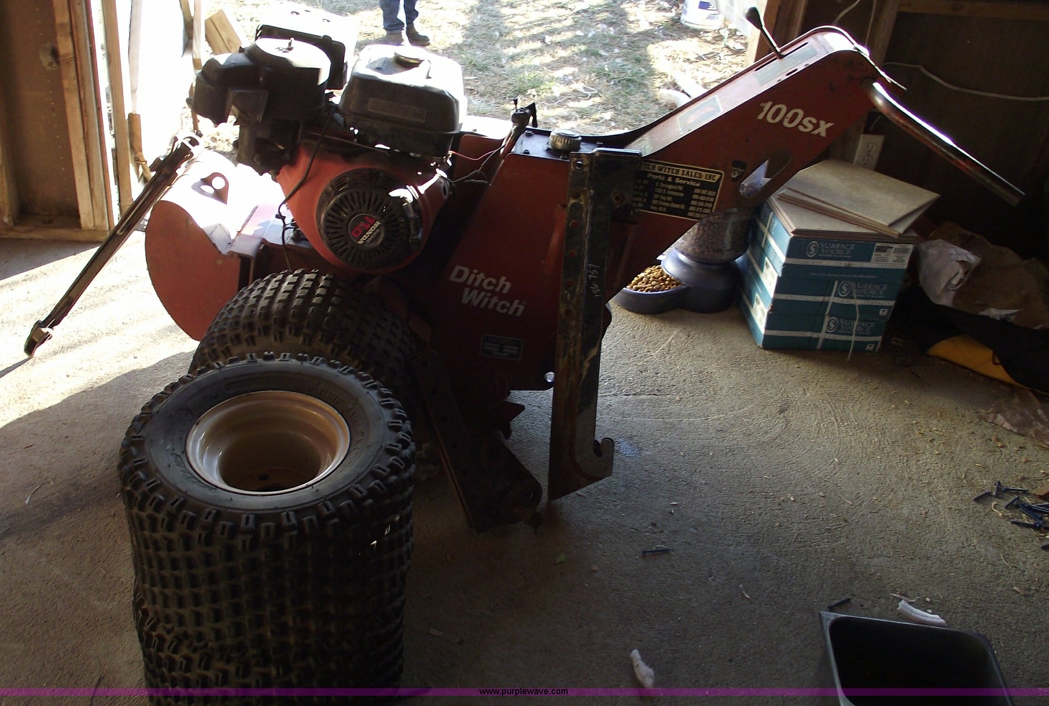 Purple Wave is selling a used Trencher or Rock Saw in Missouri. This item is a 2000 Ditch Witch 100SX walk behind vibratory plow with the following: Self propelled, Honda GX340 11 HP gas engine, (2) 12" plow blades, (2) extra wheels and tires, 18x11-8 tires, Serial 4V0081