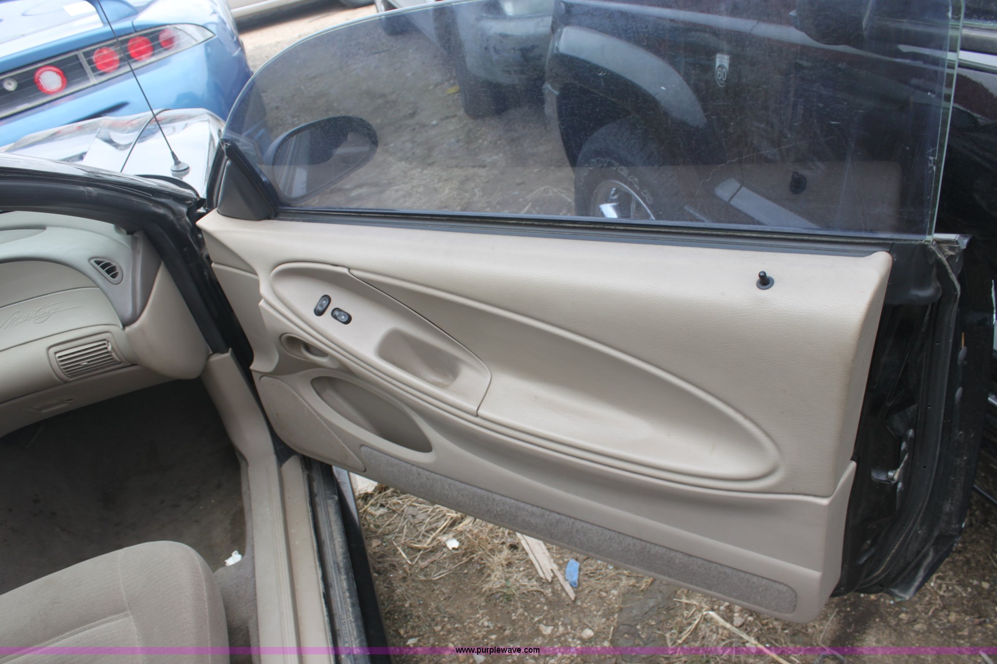 Purple Wave is selling a used Passenger Vehicle in Kansas. This item is a 1999 Ford Mustang with the following: 78,000 miles on odometer, 3.8L V6 EFI engine, Five speed manual transmission, AC and heat, Tilt, Cruise, AM/FM/CD, Power windows, locks, and mirrors, Cloth interior, 245/45R17 tires, Radio missing face plate, Damage to passenger rear fender and bumper