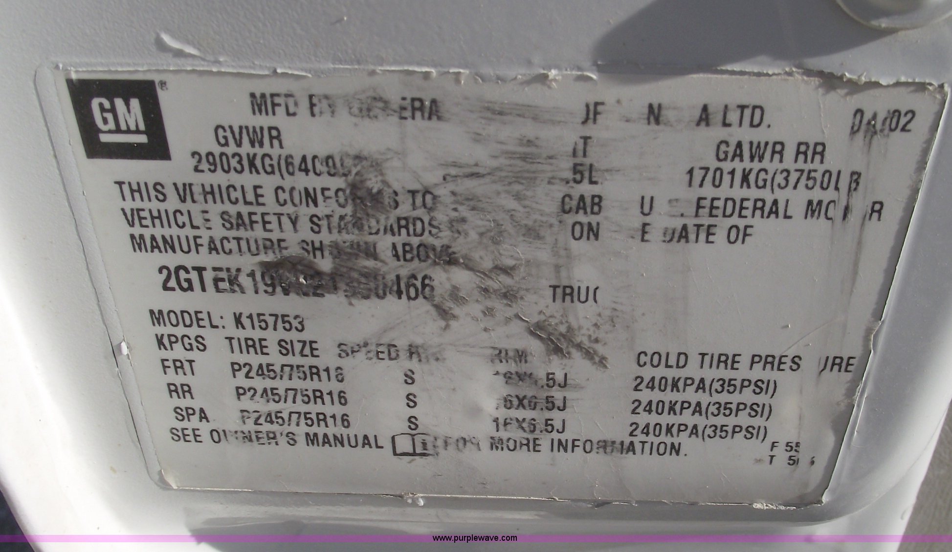 Purple Wave is selling a used Passenger Vehicle in Missouri. This item is a 2002 GMC Sierra 1500 extended cab pickup truck with the following: 280,272 miles on odometer, 4.8L V8 SFI engine, Automatic transmission, Four wheel drive, AC and heat, Tilt, Cruise, AM/FM, Manual windows and locks, Vinyl floor, Cloth interior, Receiver hitch, Trailer wiring, 245/75/16 tires, Unit# 349