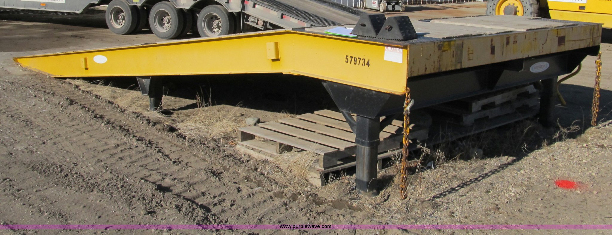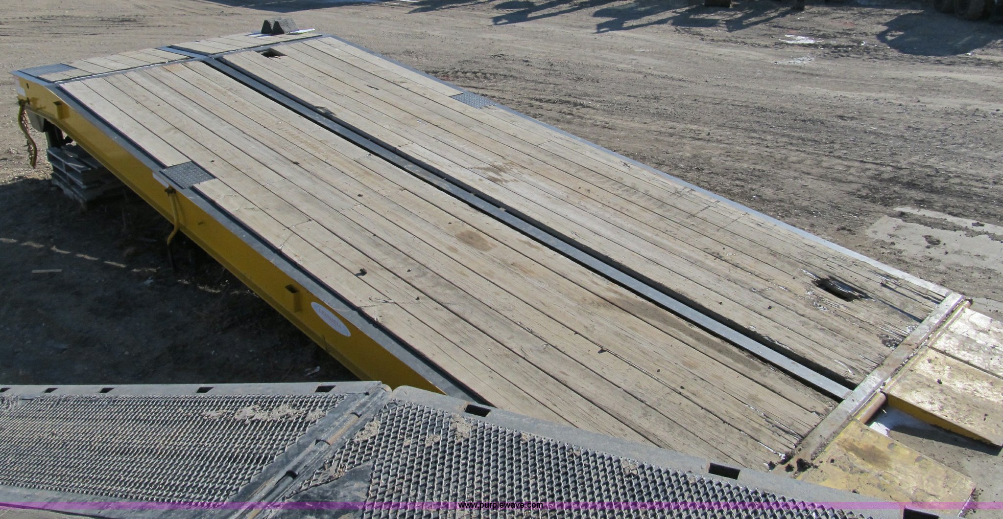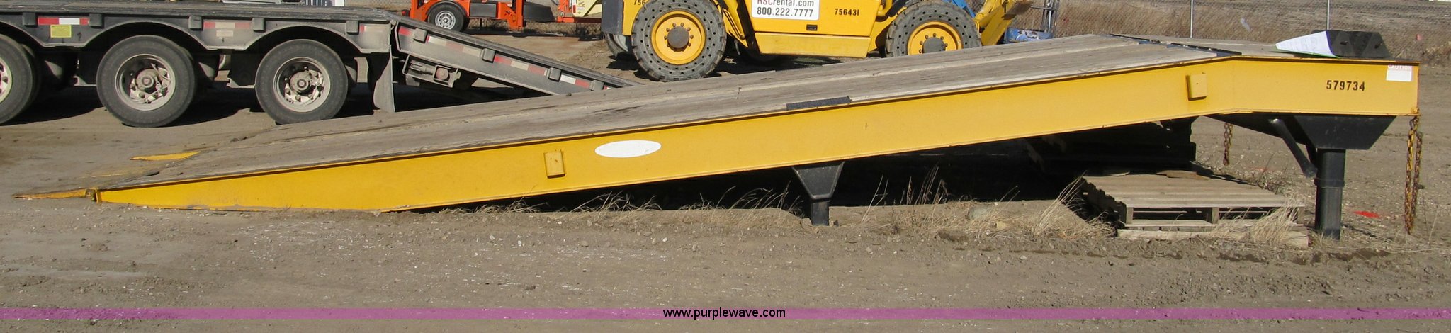 Purple Wave is selling a used Other Industrial or Business in Iowa. This item is a 2005 Ledwell LW25RMP portable loading ramp with the following: 25' overall length, 21.5'L ramp, 42"L platform, 31" to 49" adjustable height, (4) 24" adjustable lengths, 10' width, Pine floor set 1/2" above steel rails, (2) boards damaged, Set of 50,000 lb landing gear, Set of 20,000 lb landing gear, (3) 12" main beam members, 6" JR. I-beam cross members on 12" centers, Serial 060503418, EIN 579734