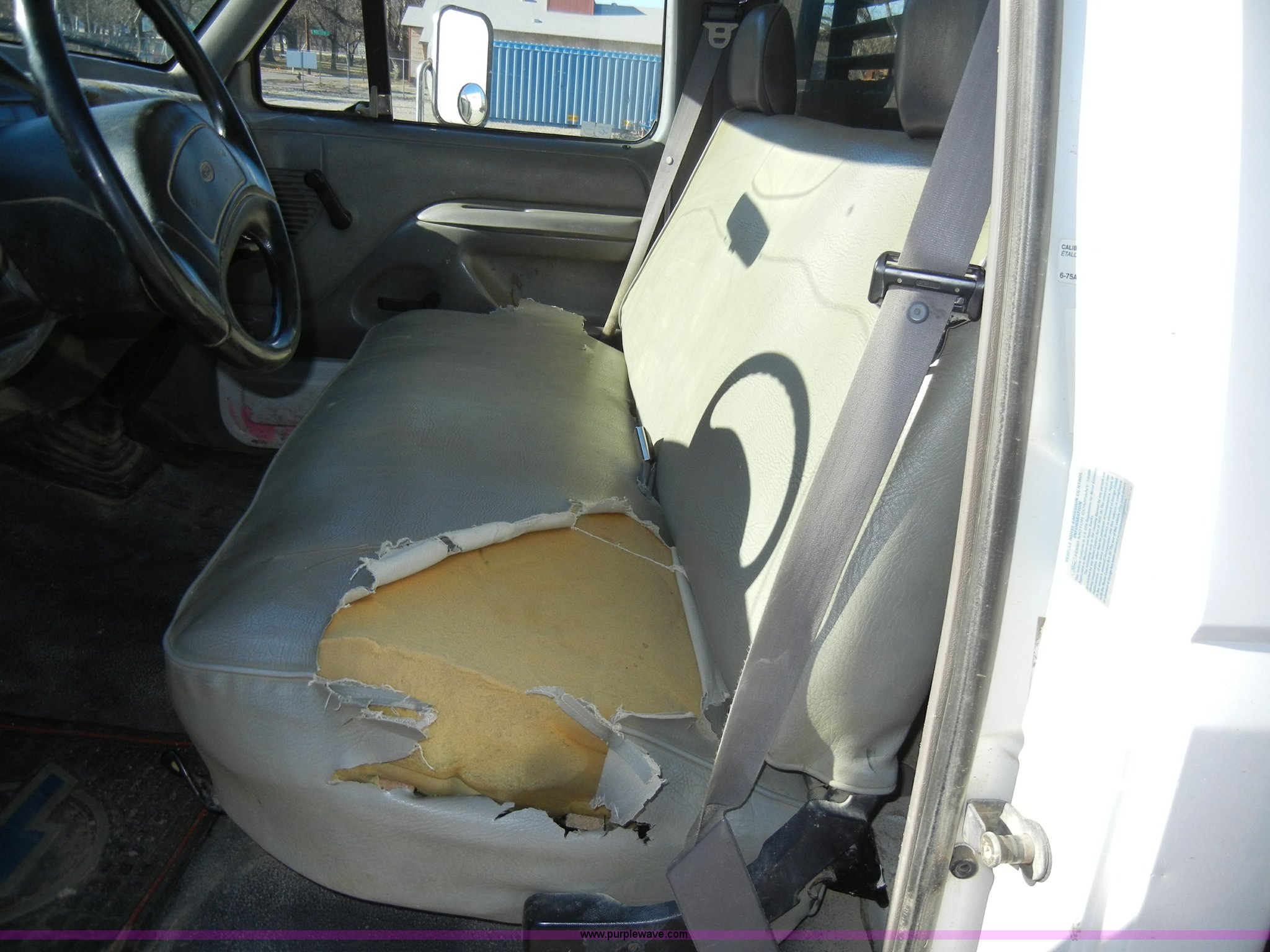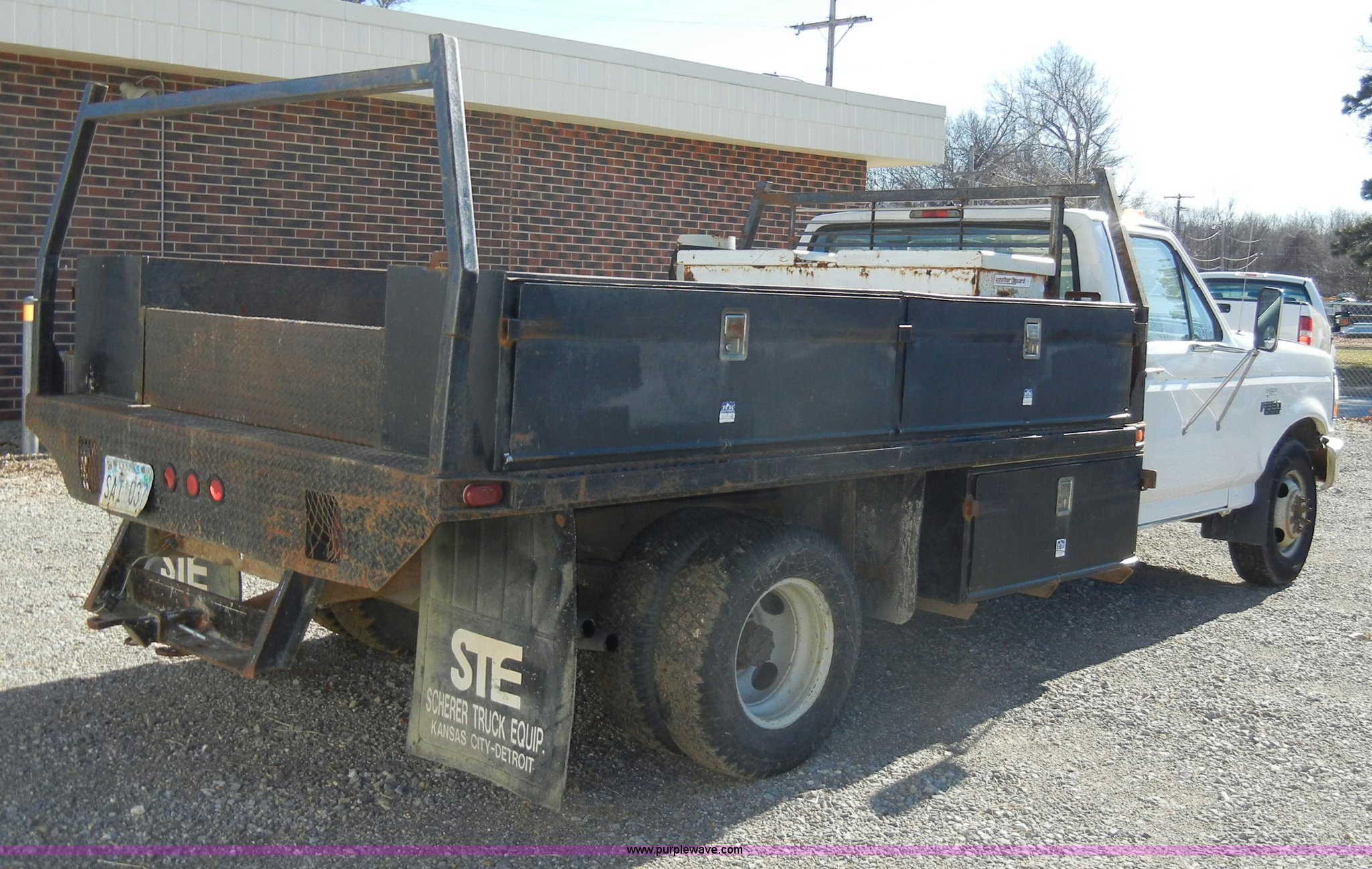 Purple Wave is selling a used Passenger Vehicle in Kansas. This item is a 1996 Ford F350 XL pickup truck with the following: 120,746 miles on odometer, 5.8L V8 gas engine, Five speed manual transmission, AC and heat, AM/FM, Manual windows and locks, Vinyl bench seat, Diamond plated flatbed, Weatherguard toolbox, (6) Rawson-Koenig work boxes, Dual fuel tanks, Receiver hitch, Trailer wiring, 215/85R16 tires, Cracked dash, Paint peeling, Cracked windshield, Interior/exterior cosmetic damage, Unit# 113