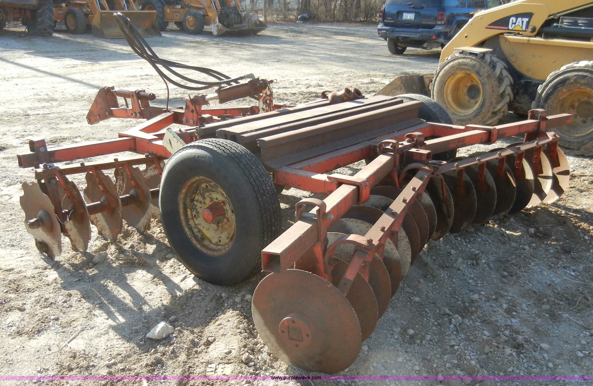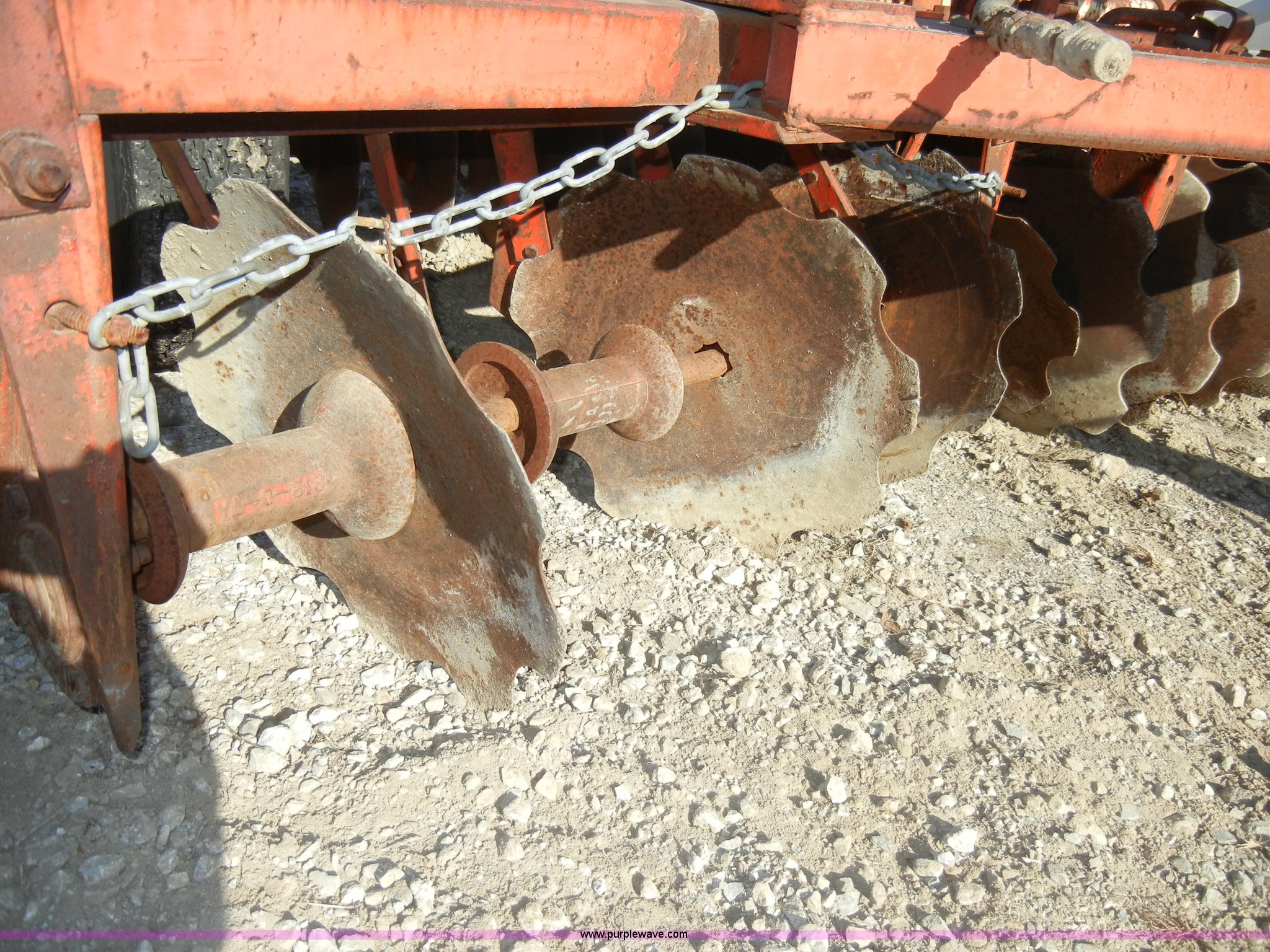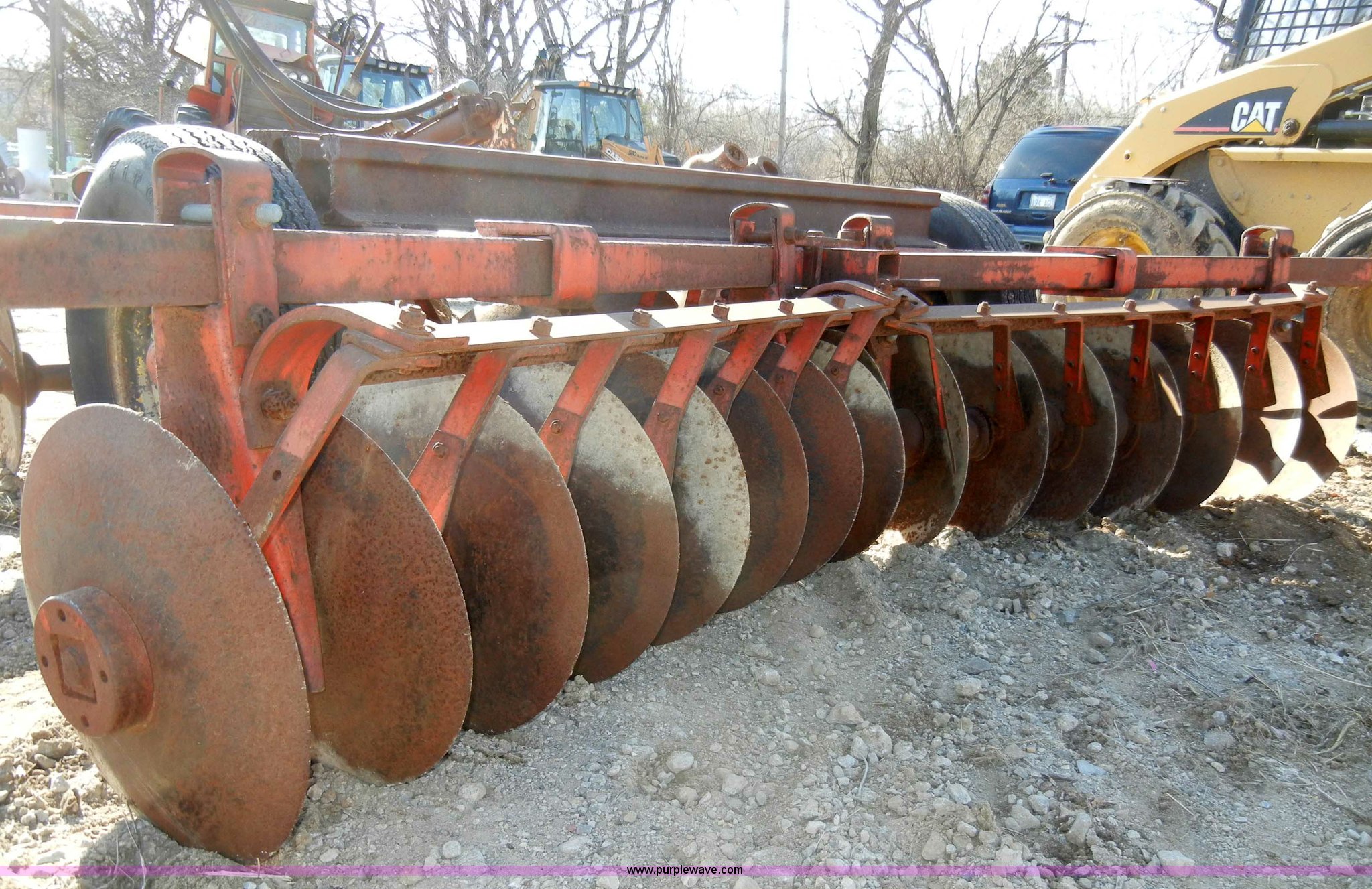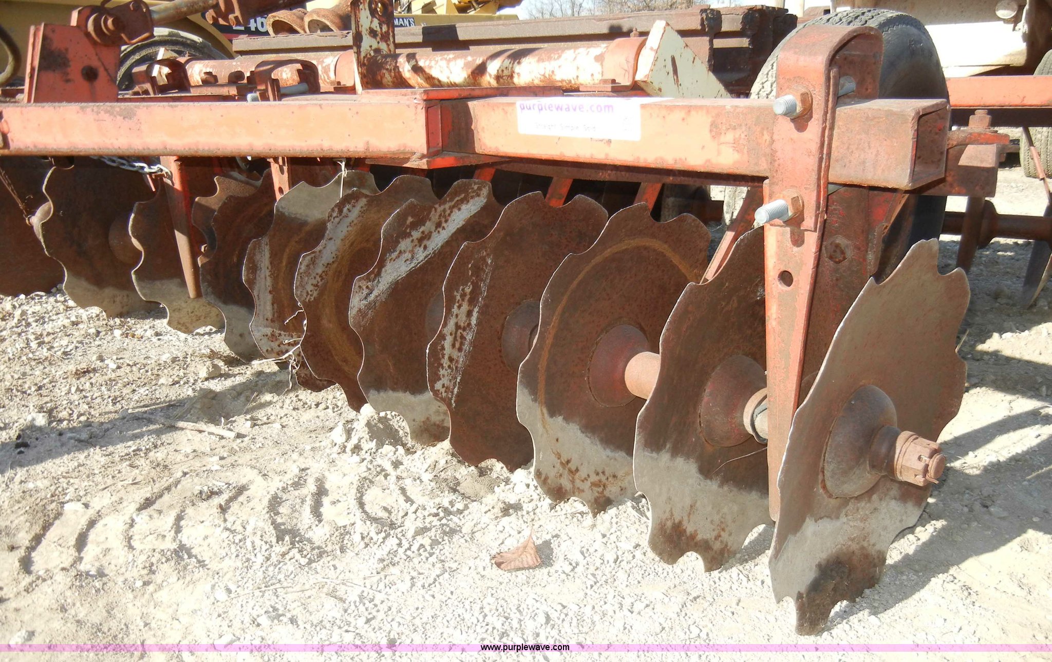Purple Wave is selling a used Disk in Kansas. This item is a Krause 408 10' combo disk with the following: 18" smooth rear disk, 17" serrated front disk, Cylinder and hose, Pin hitch, 14" tires, Front disk needs replaced, Some disks missing, Serial A6765