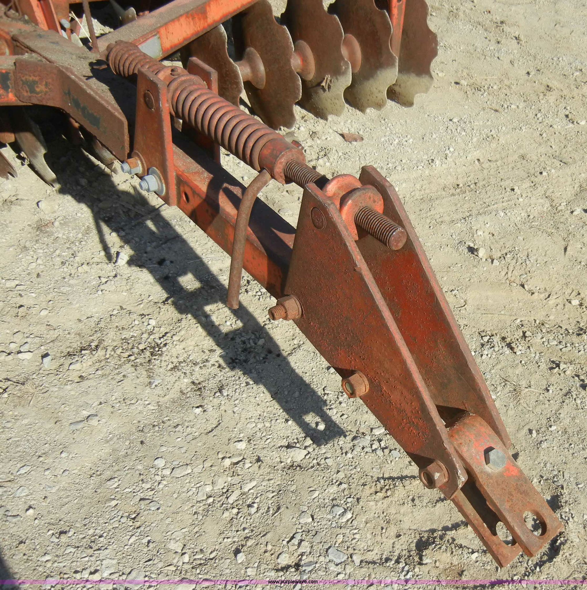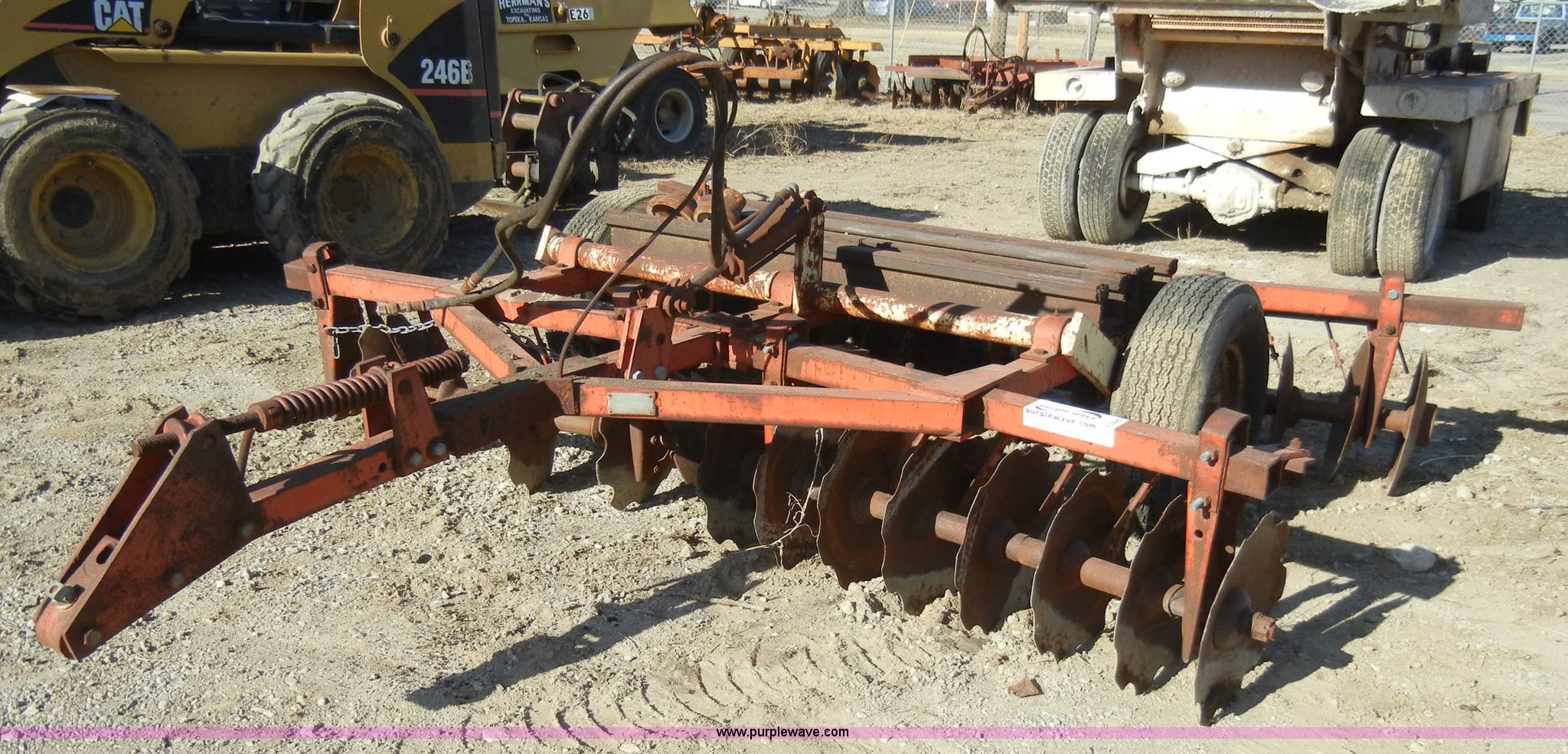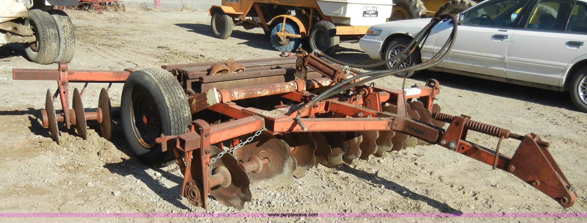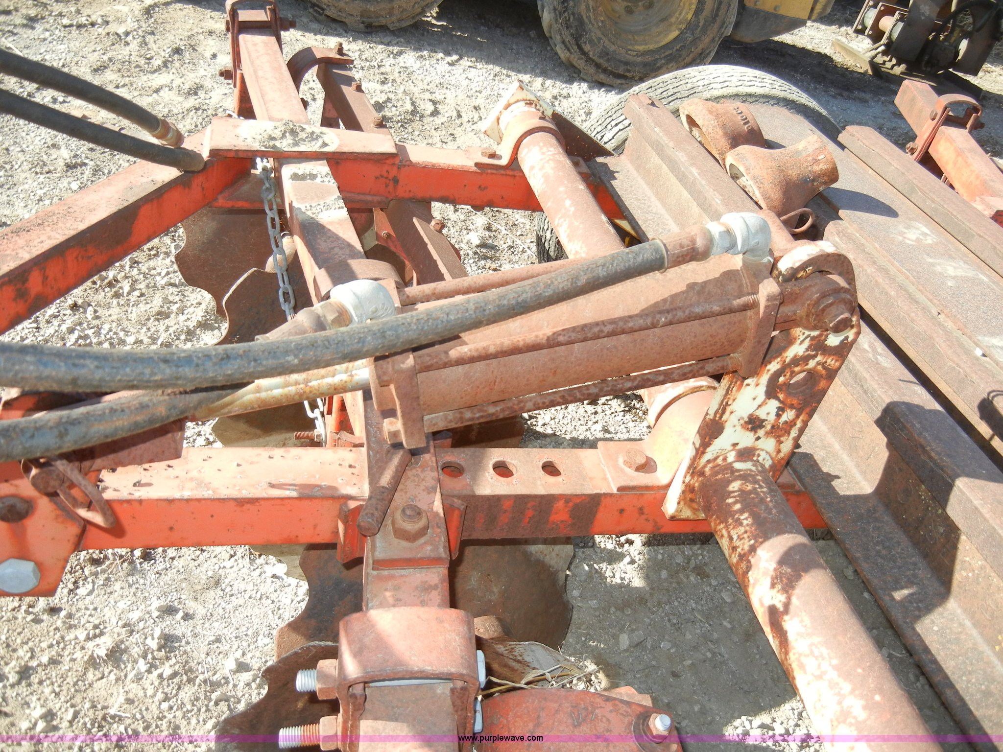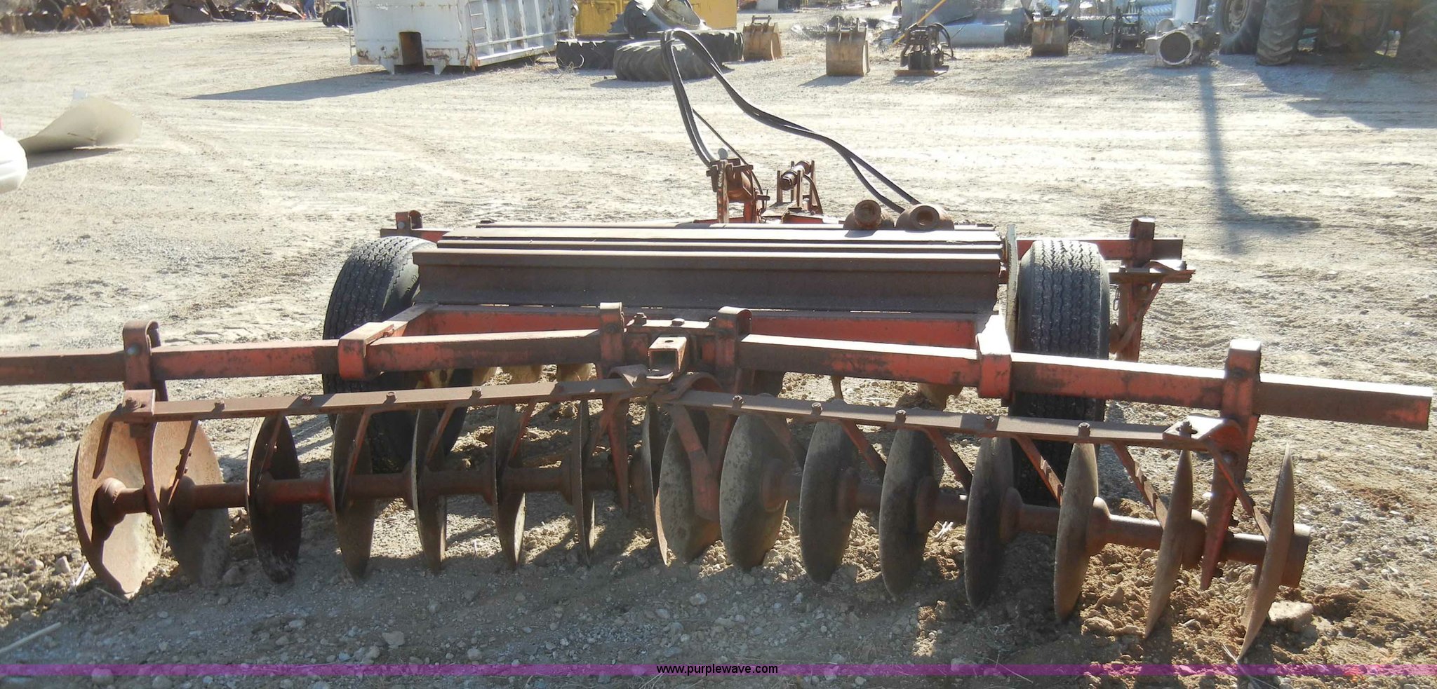 Purple Wave is selling a used Disk in Kansas. This item is a Krause 408 10' combo disk with the following: 18" smooth rear disk, 17" serrated front disk, Cylinder and hose, Pin hitch, 14" tires, Front disk needs replaced, Some disks missing, Serial A6765