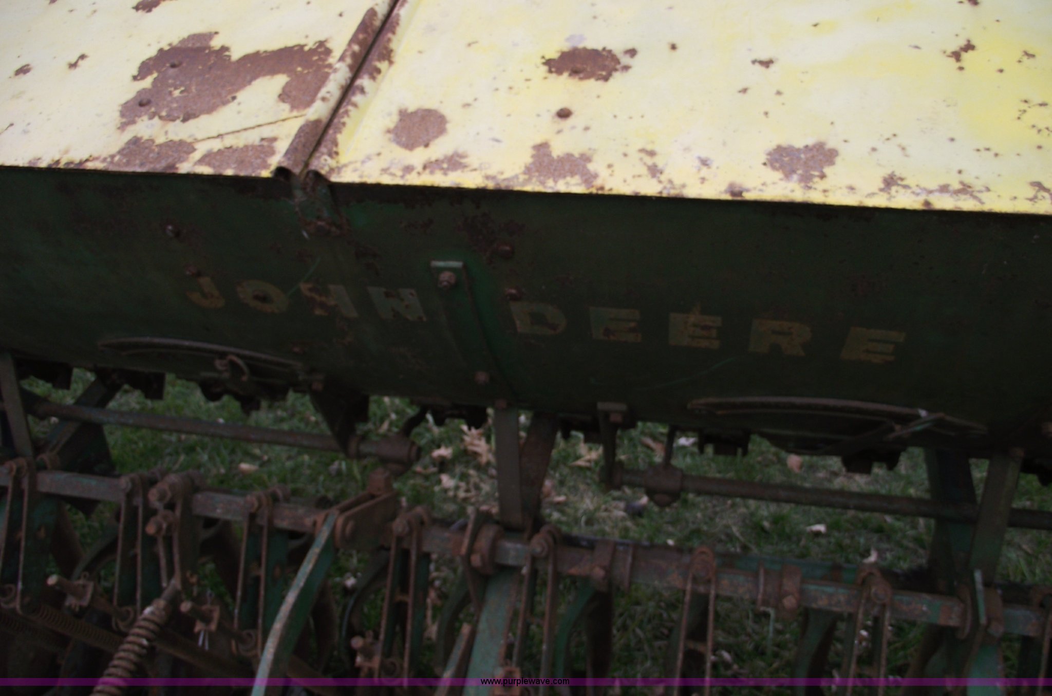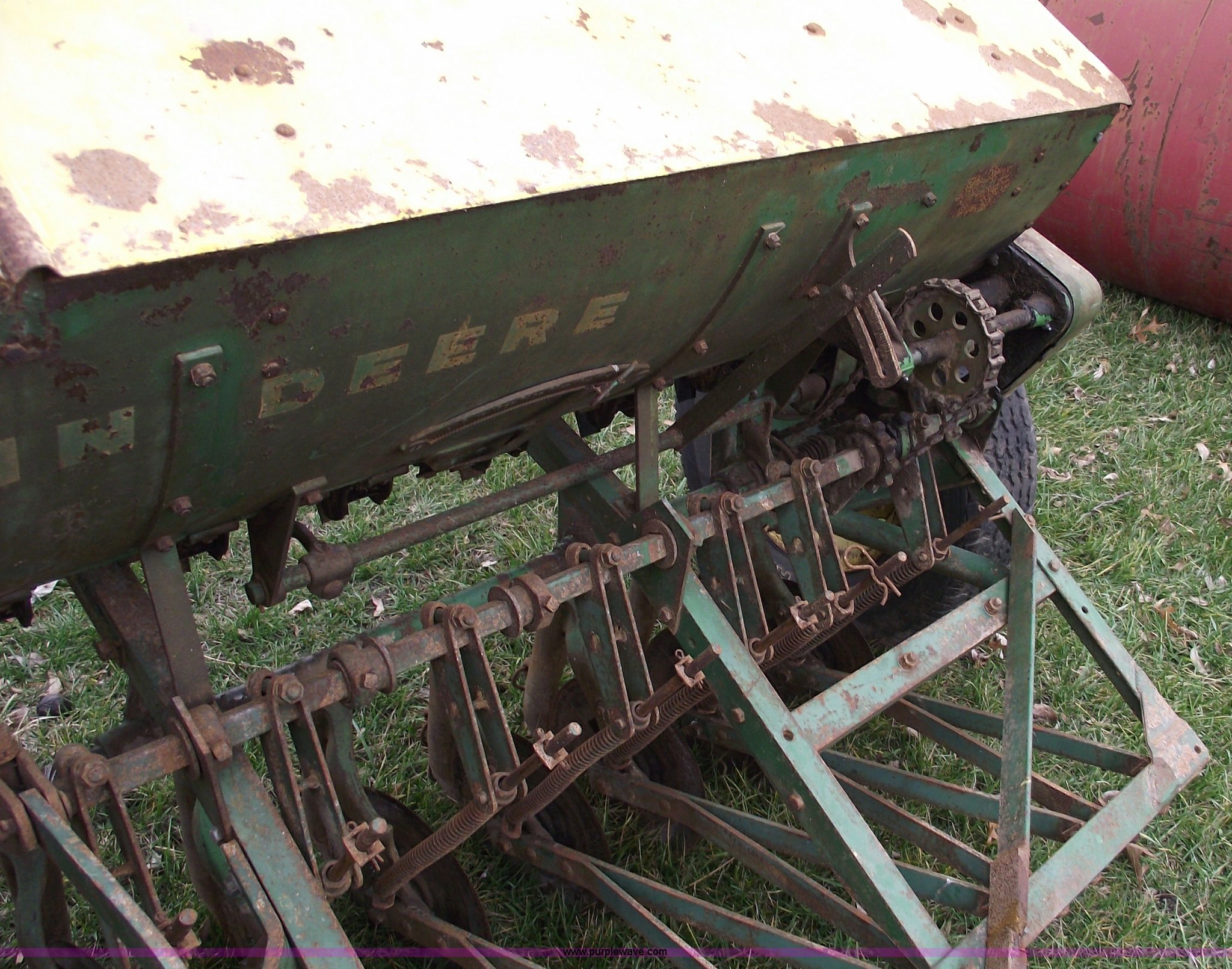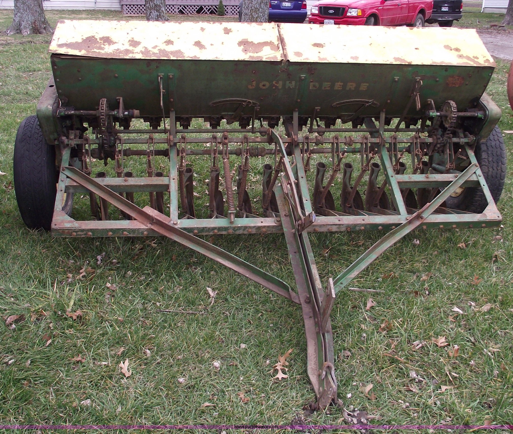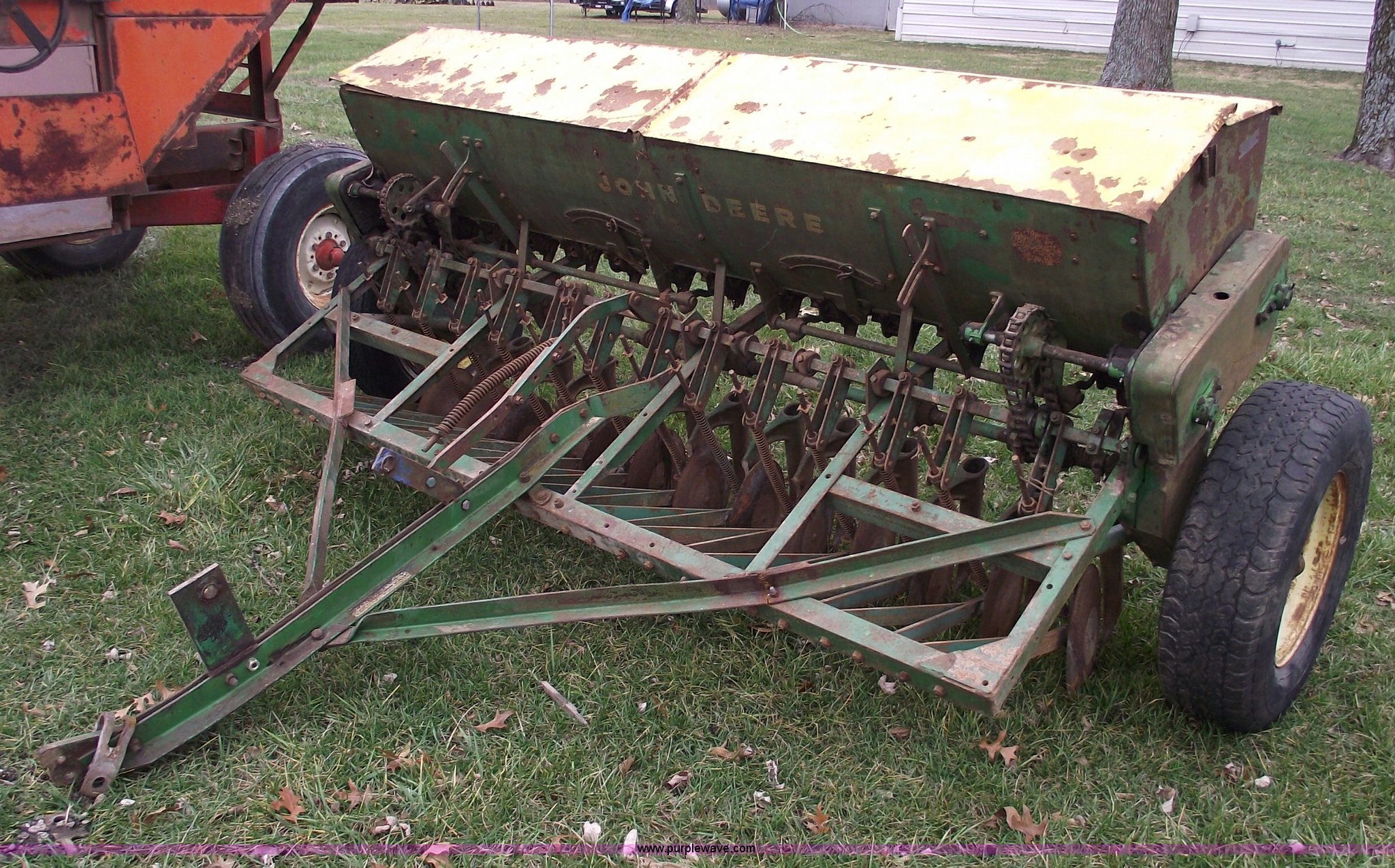 Purple Wave is selling a used Grain Drill or Seeder in Missouri. This item is a John Deere FB-8 drill with the following: 8' planting width, Pin hitch, LR78-15LT tires, Missing funnels
