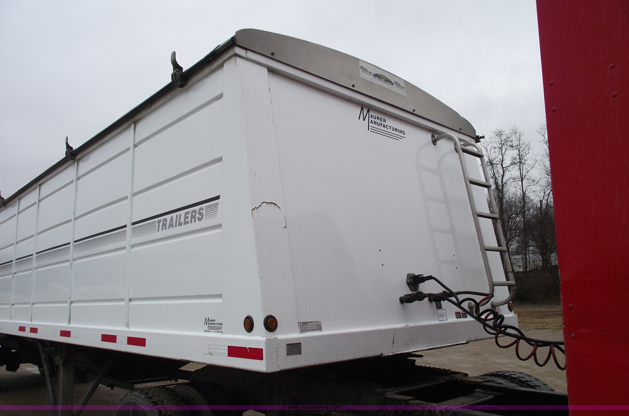 Purple Wave is selling a used Grain or Commodity Trailer in Missouri. This item is a 2009 Maurer 36' hopper trailer with the following: Shur-Lok roll over tarp, Spring suspension, LED lights, Sight windows, Air brakes, Aluminum front and rear ladders, Two speed landing gear, Steel wheels, 285-75-24.5 tires
