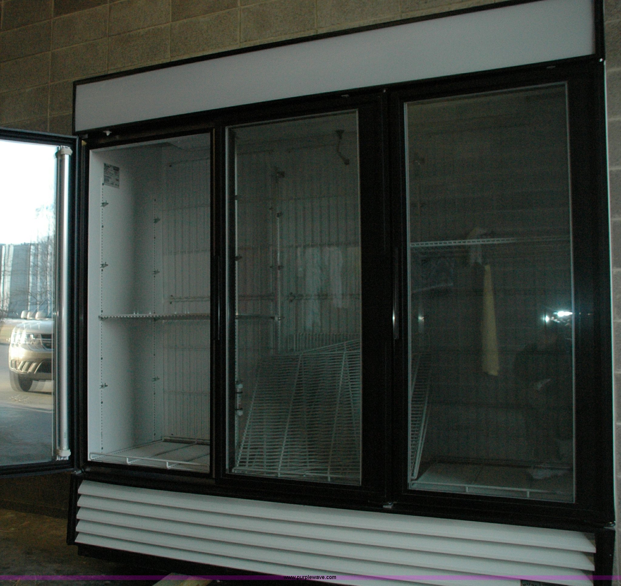 Purple Wave is selling a used Restaurant Equip. in Kansas. This item is a Three door upright freezer with the following: Model True GDM-72, 78"W x 30"D x 78.5"H, 115/208/230 volts, 1.5 HP, Cosmetic damage to sides, Working when removed from service