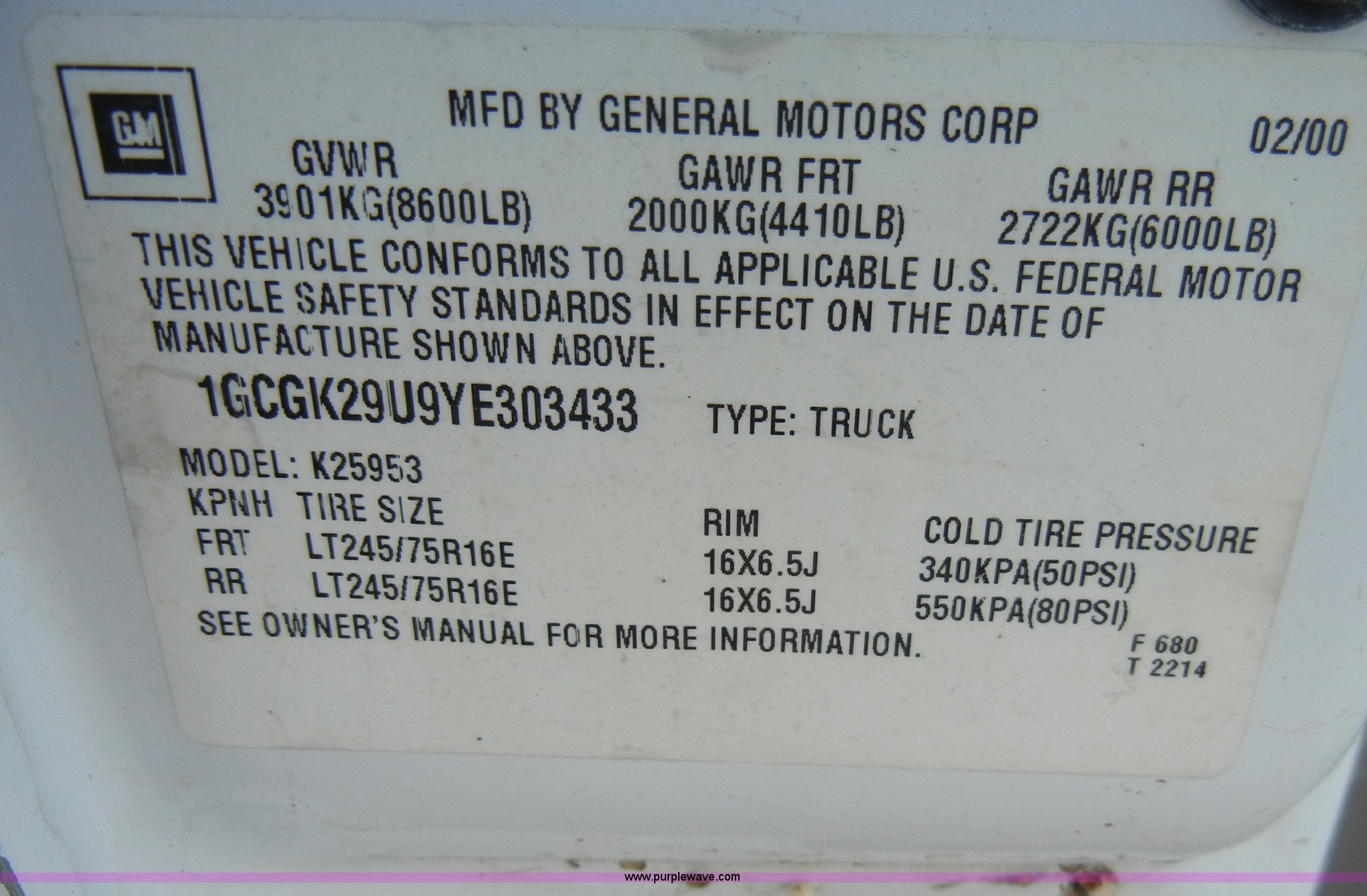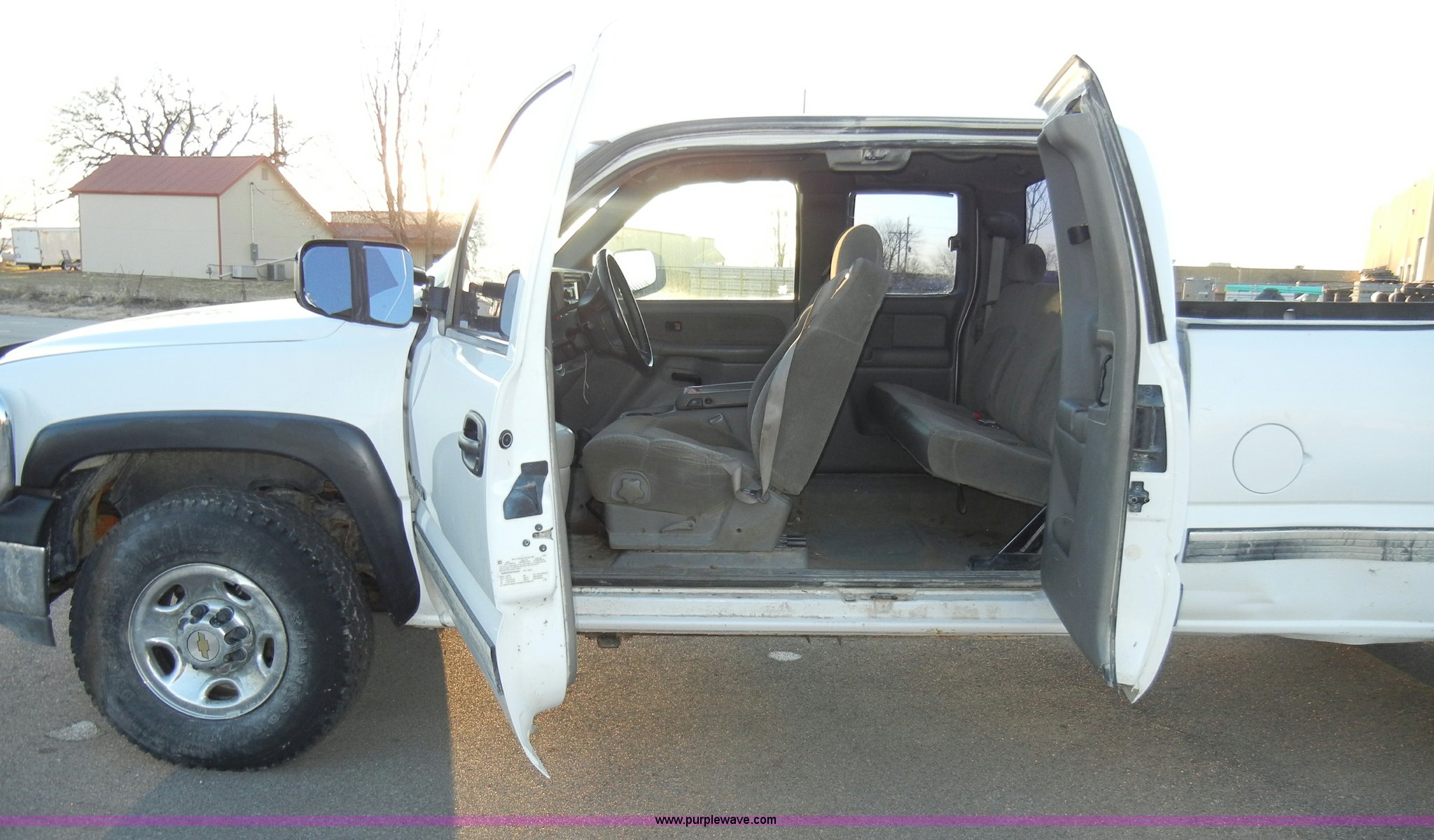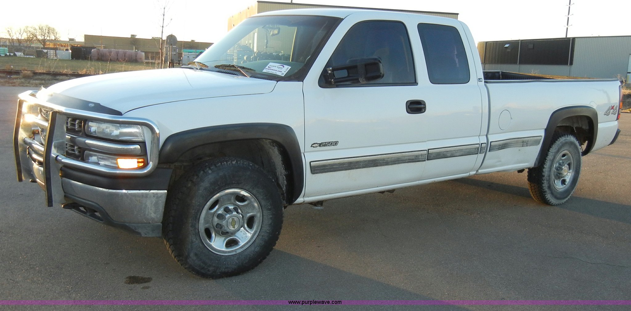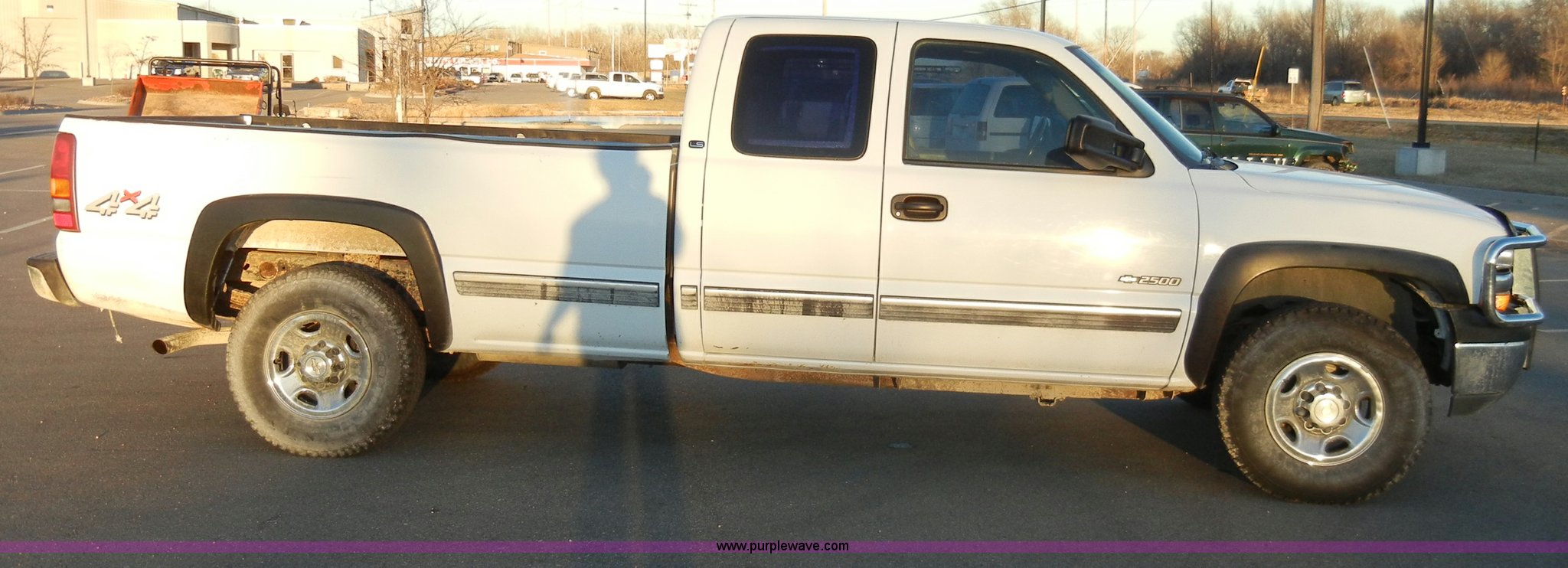 Purple Wave is selling a used 3/4 or 1 Ton Pickup or Van in Kansas. This item is a 2000 Chevrolet Silverado 2500 LS extended cab pickup truck with the following: 153,754 miles on odometer, 6.0L V8 SFI engine, Automatic transmission, Four wheel drive, AC and heat, Tilt, Cruise, AM/FM/CD, Power windows and locks, Cloth seats, Bug guard, Grill guard, Front tow hooks, Bed liner, Receiver hitch, Trailer wiring, 235/85R16 tires, Recently replaced battery, Tailgate latch broken, Driver side mirror cracked, Scratches and dents, Paint peeling, Exterior/interior cosmetic damage, Seized vehicle