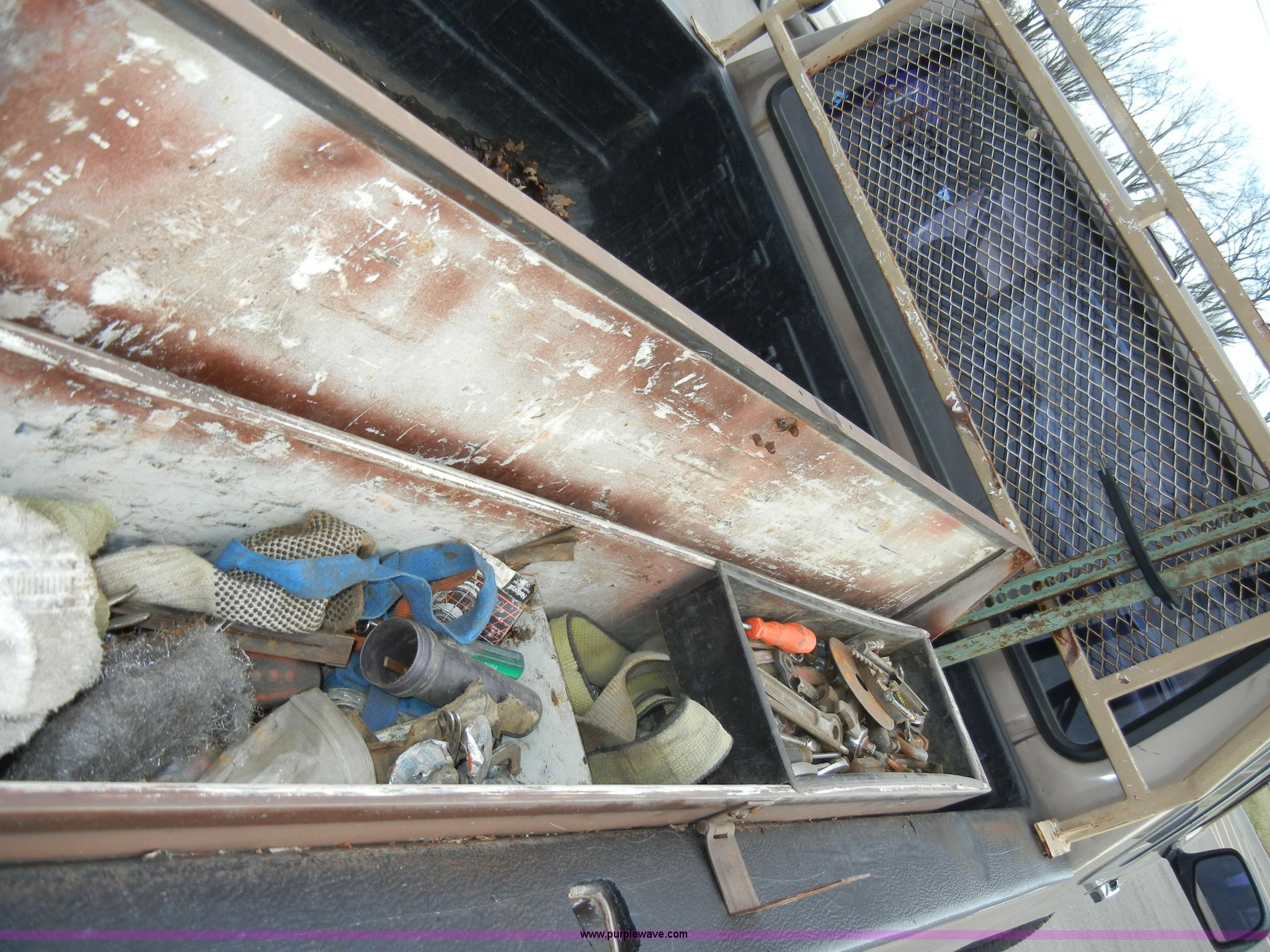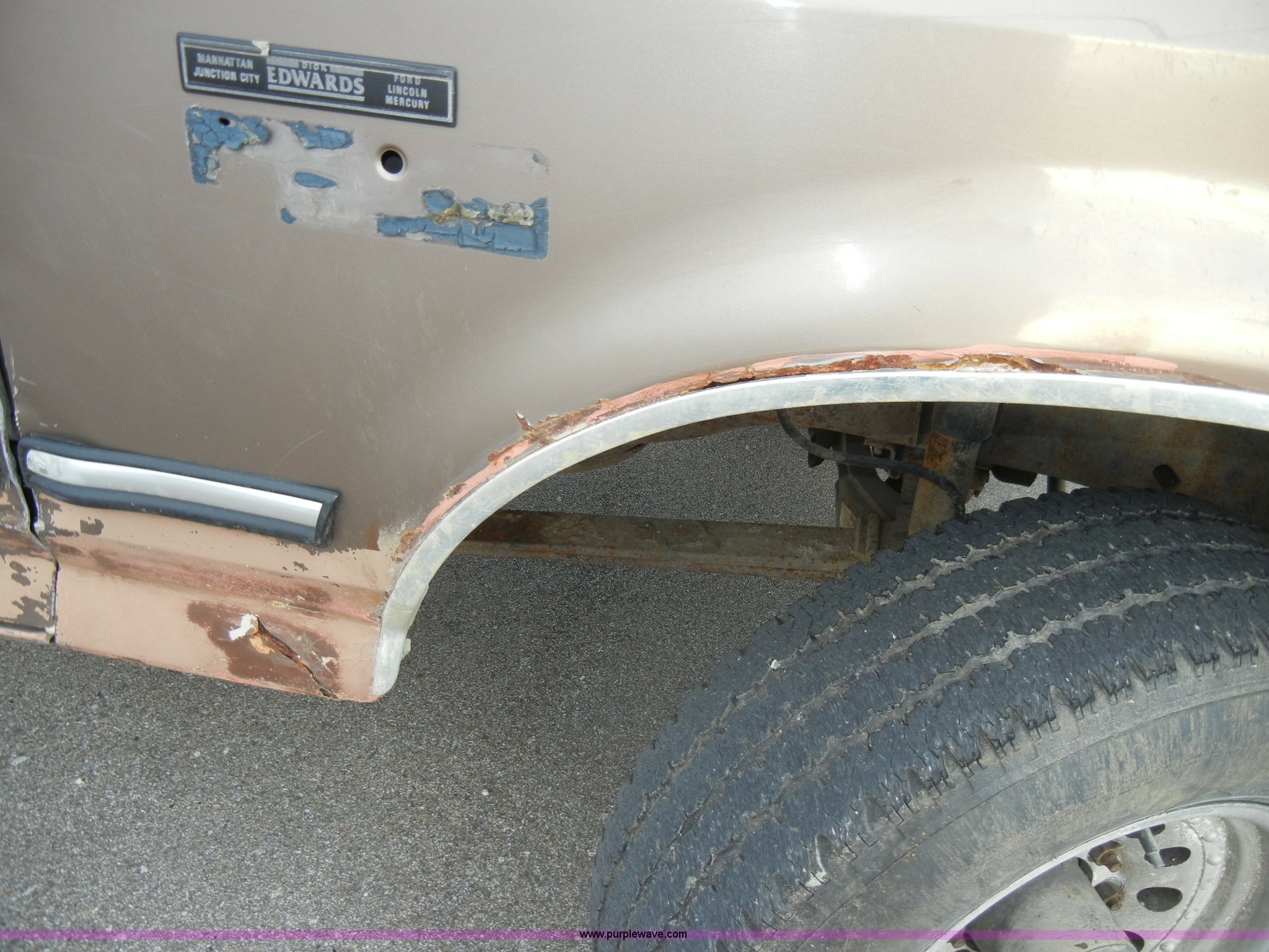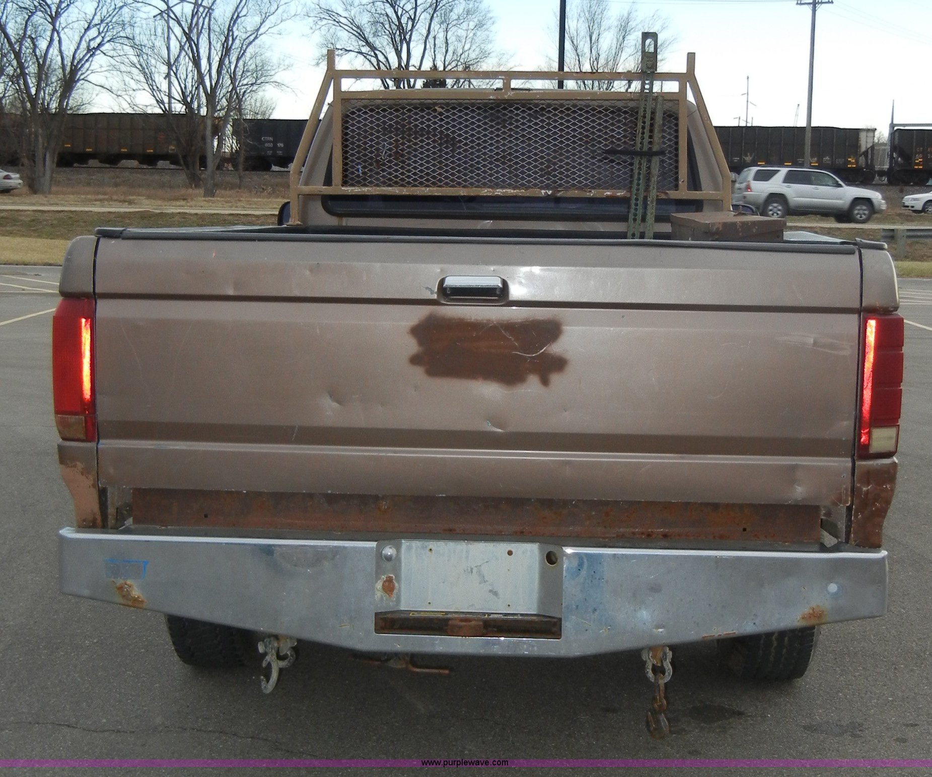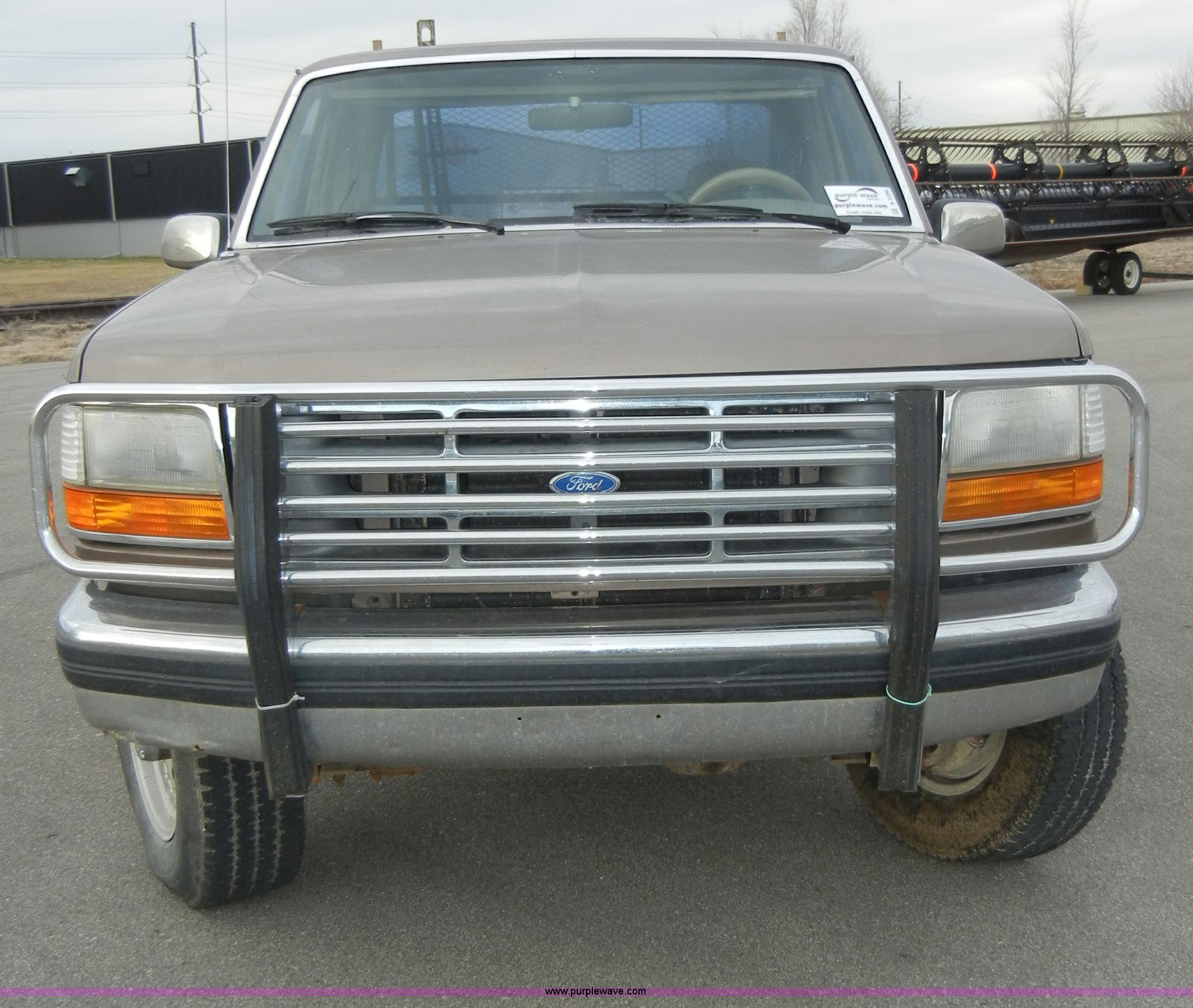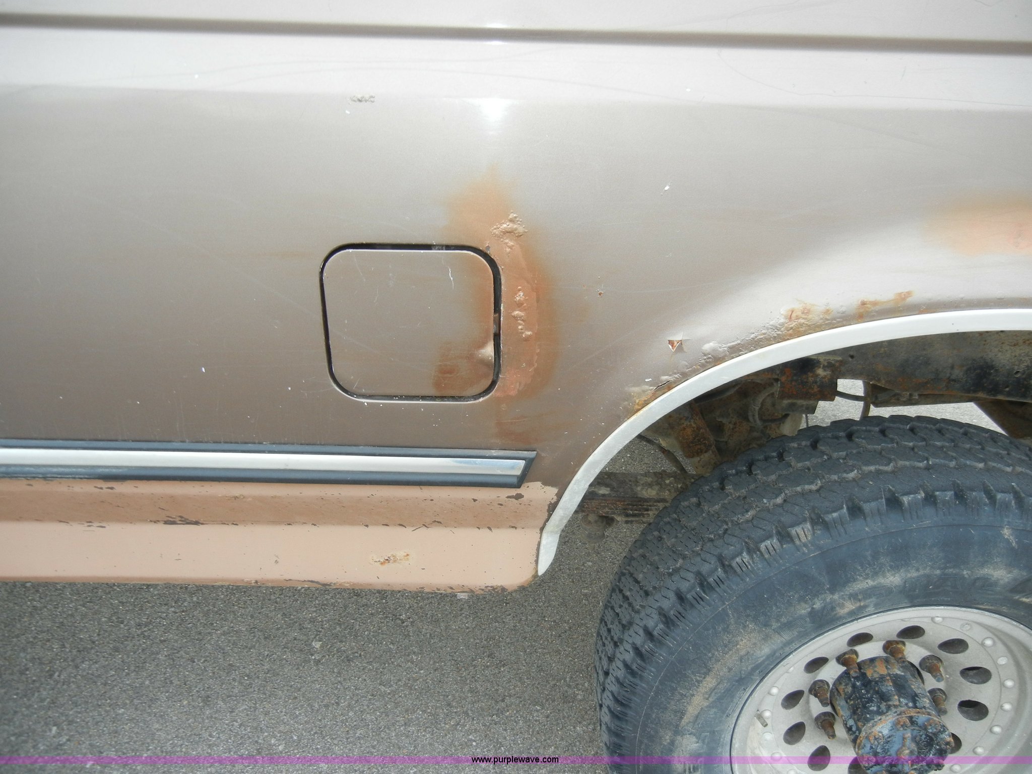 Purple Wave is selling a used Passenger Vehicle in Kansas. This item is a 1992 Ford F250 XLT Supercab pickup truck with the following: 231,681 miles on odometer, 5.8L V8 EFI engine, Automatic transmission, Four wheel drive, AC and heat, Tilt, Cruise, AM/FM, Power windows and locks, Cloth bench seat, Grill guard, Bed liner, Toolbox with assorted tools, Dual fuel tanks, Pin hitch, Trailer wiring, 245/75R16 tires, Recently replaced battery, Chains and cables included, Shifter needle inoperable, Cracked dash, Body rust, Interior/exterior cosmetic damage, Dents and scratches, Bad brakes, Seized vehicle