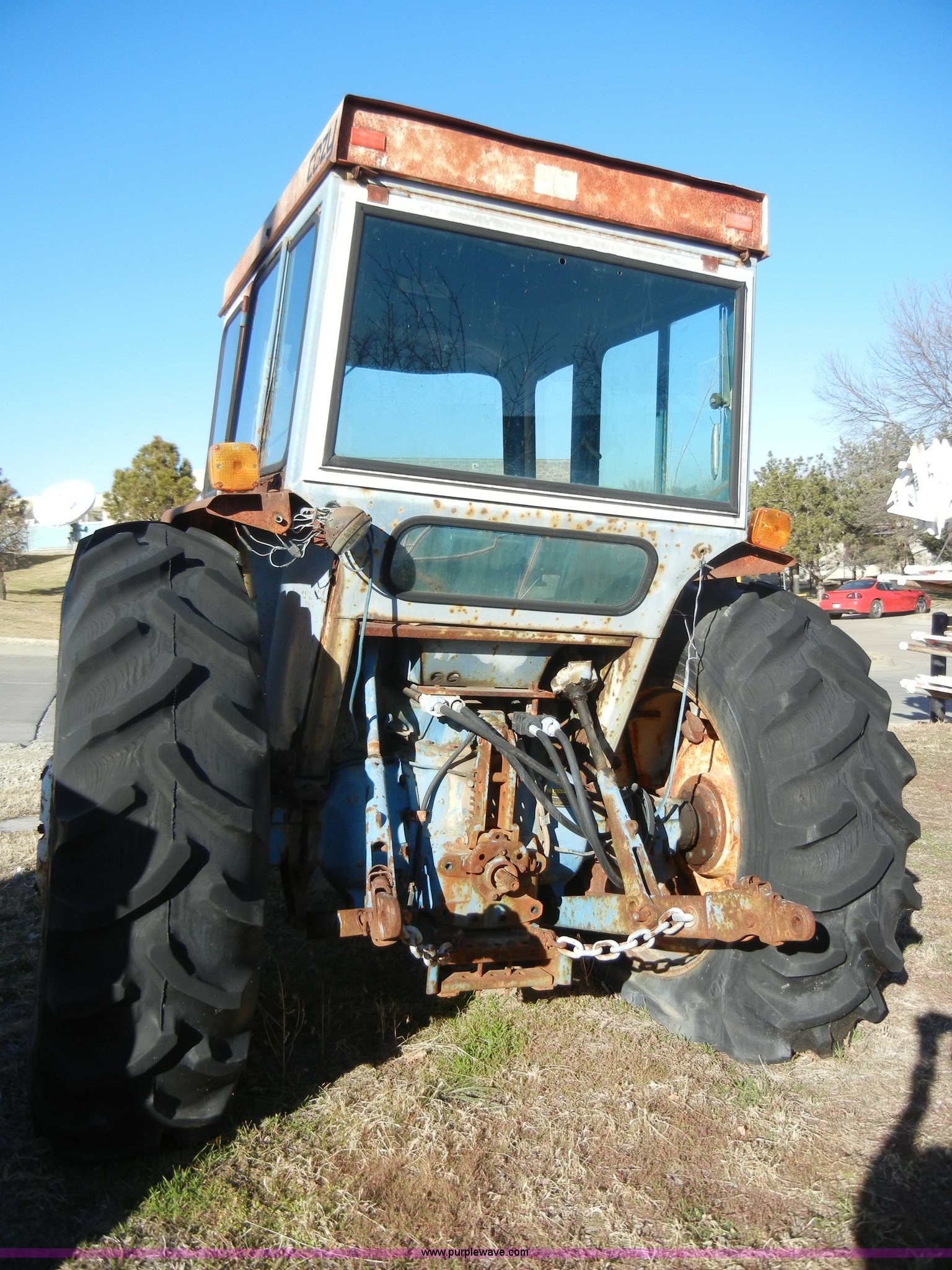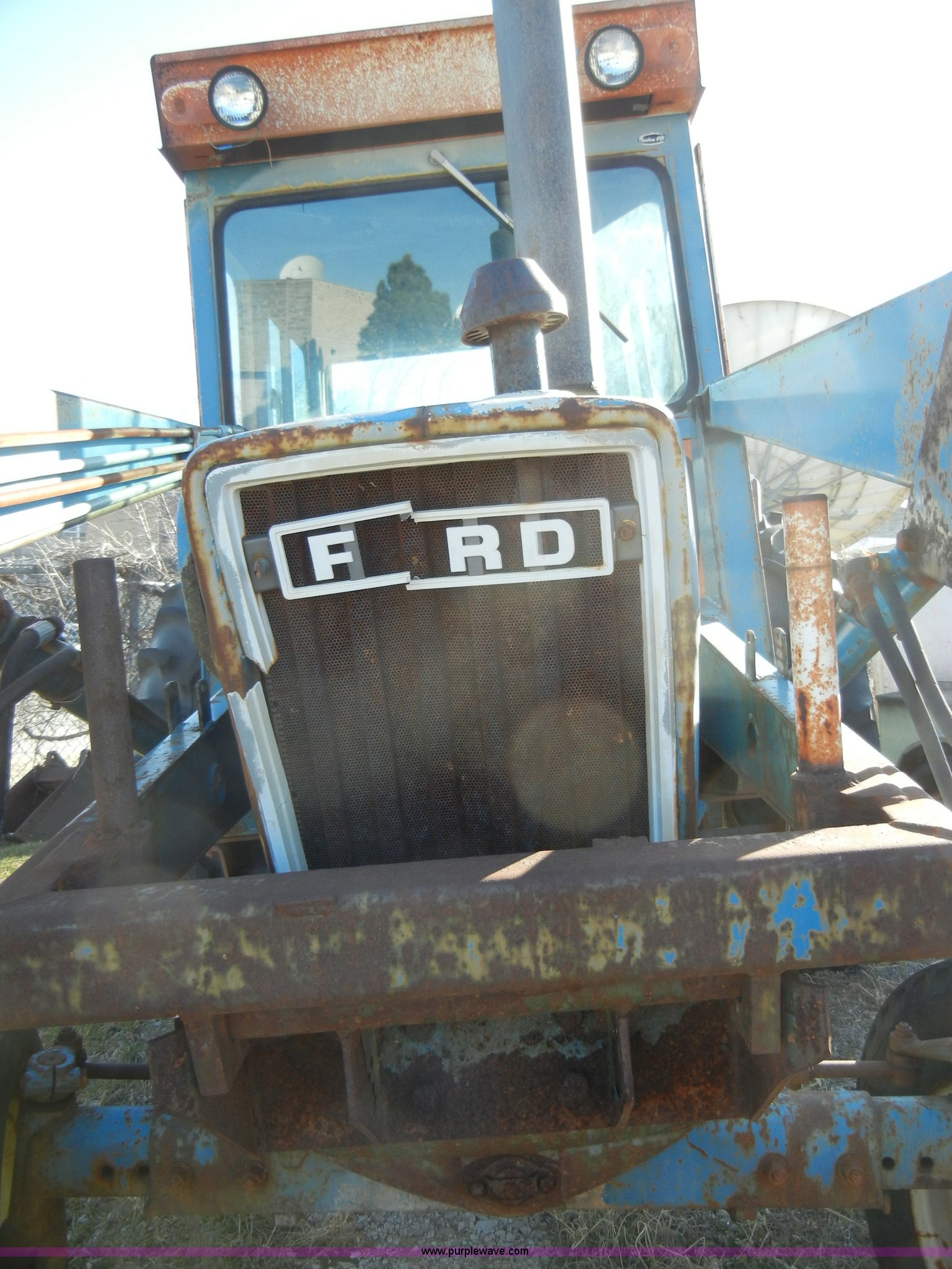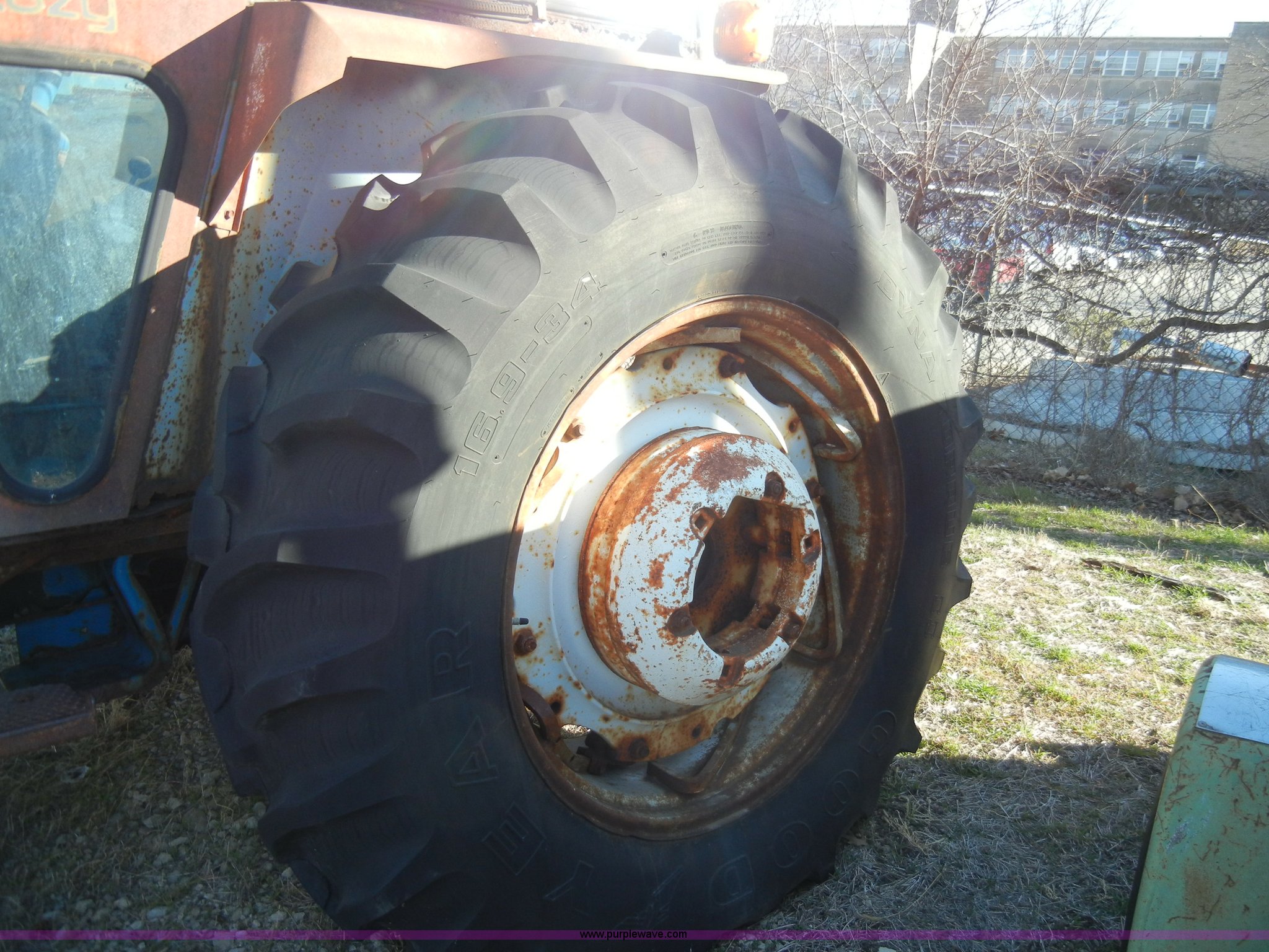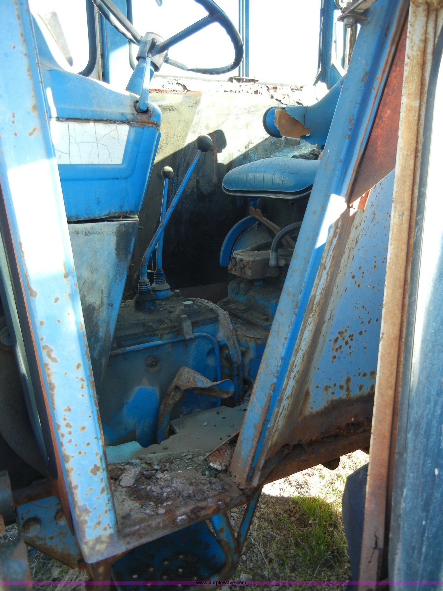 Purple Wave is selling a used Tractor in Kansas. This item is a 1981 Ford 5600 tractor with the following: 2,038 hours on meter, Four cylinder diesel engine, Powershift transmission, 8F-2R gears, AC and heat, Spring ride seat, Instructor seat, 777D loader with 6' bucket, Three point, Draw bar, 540 PTO, Rear hydraulic remote, Block heater, Wheel weights, 8.00-16 front tires, 16.9-34 rear tires, flat, 70" wheelbase, Cab rusted, Windows broken