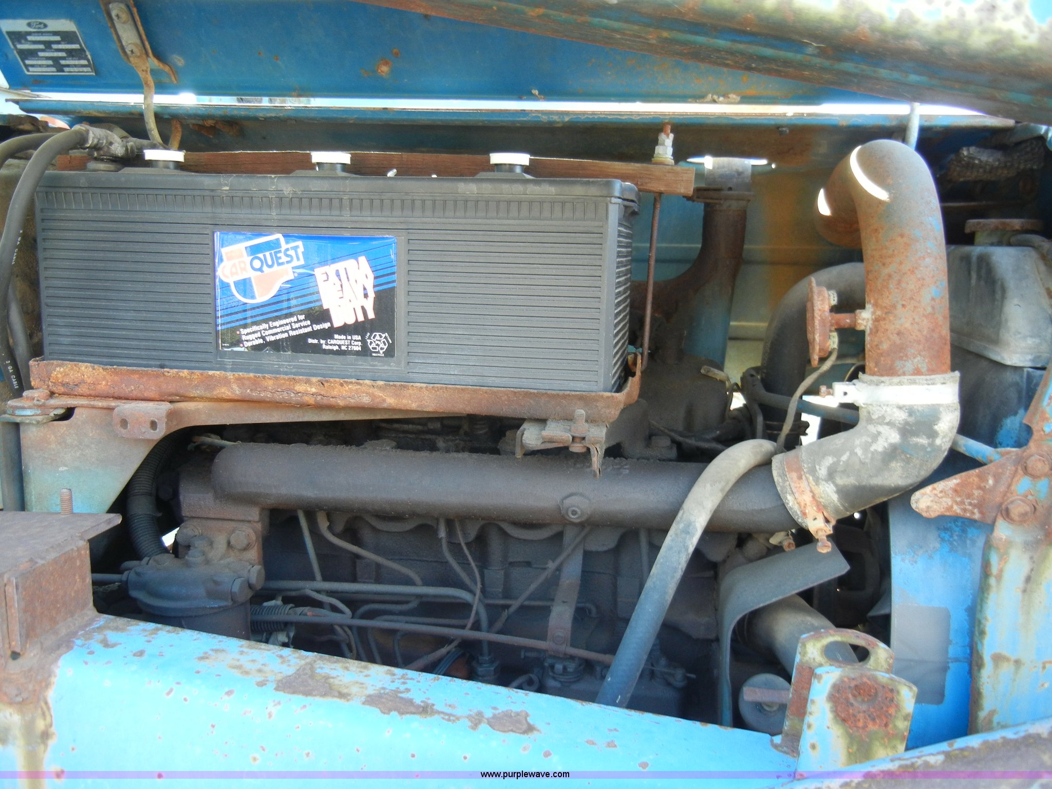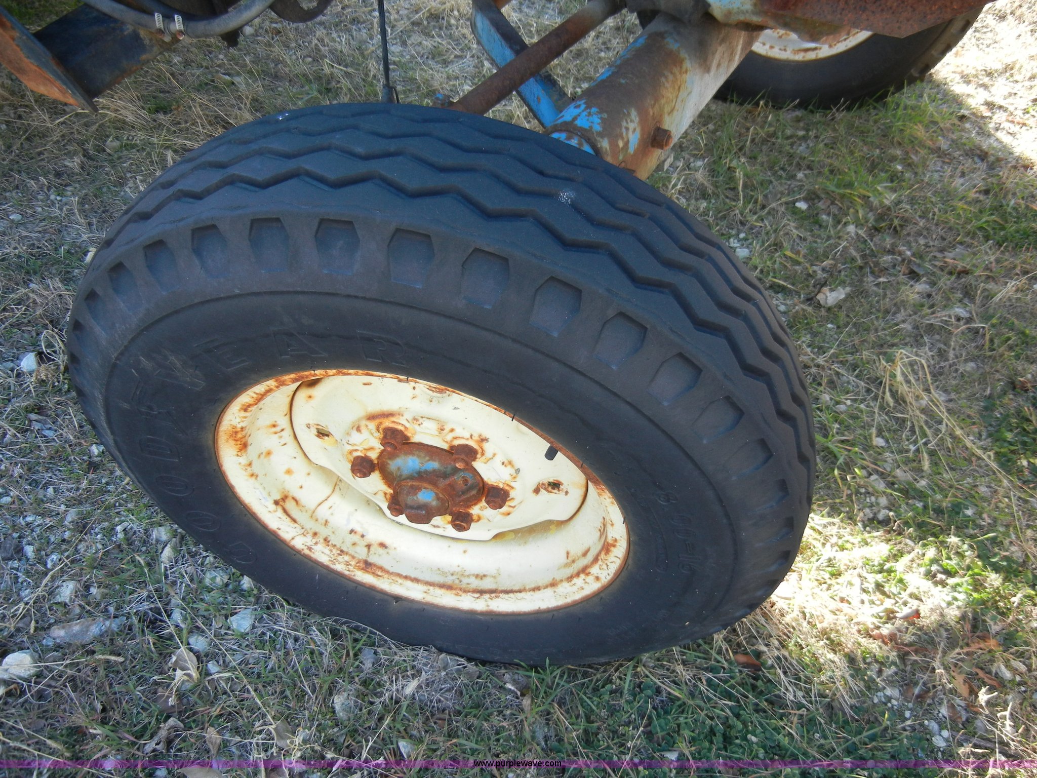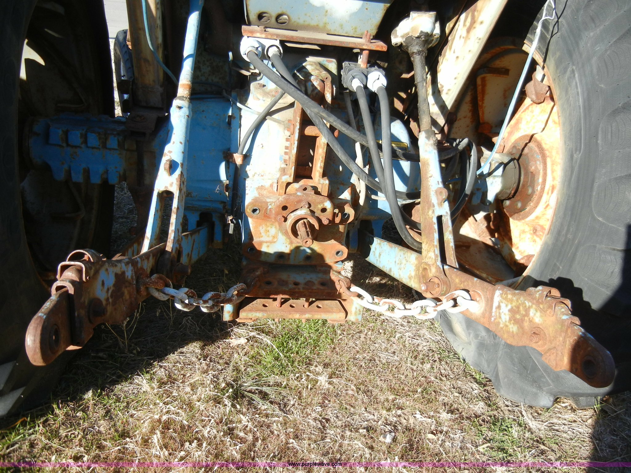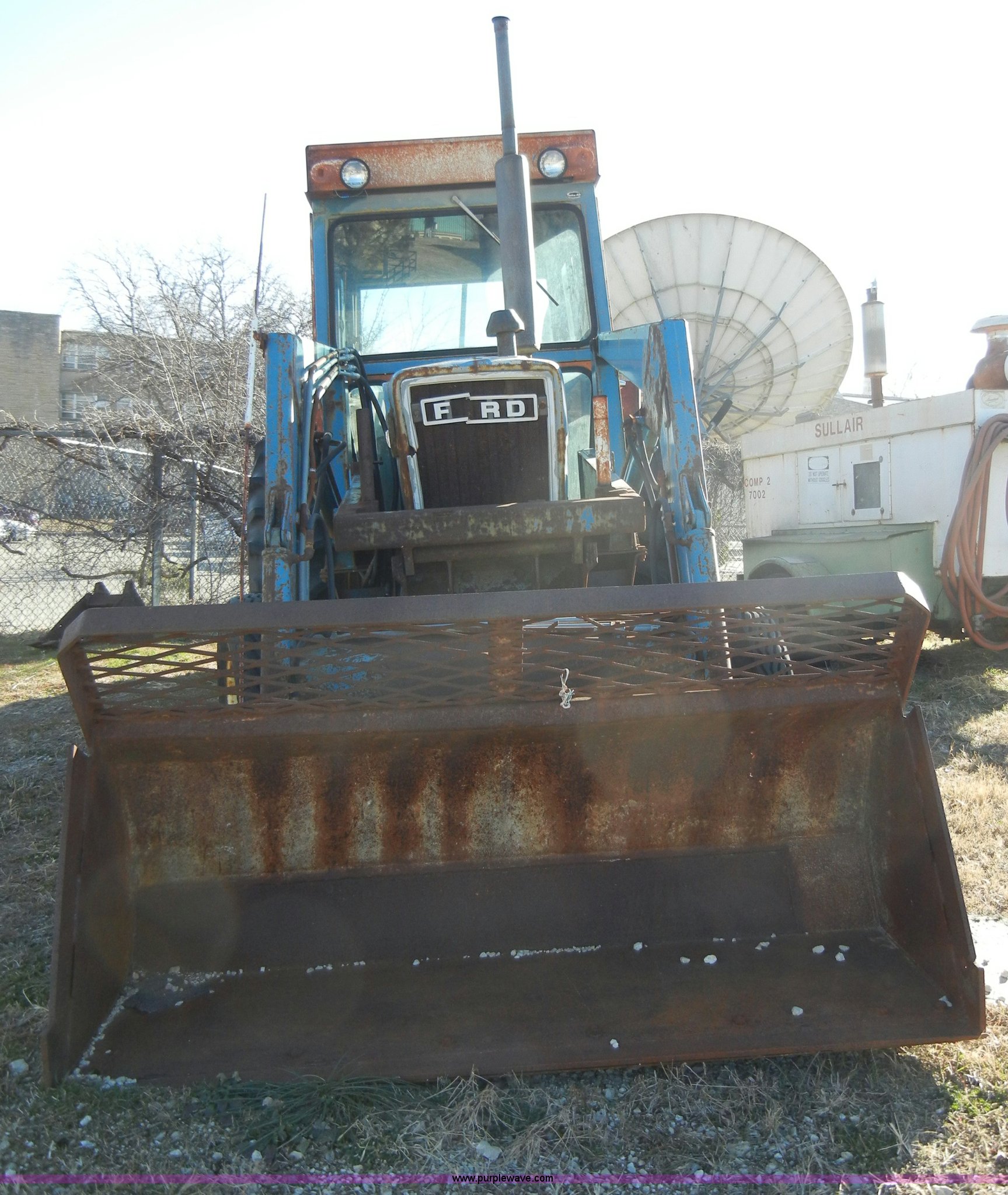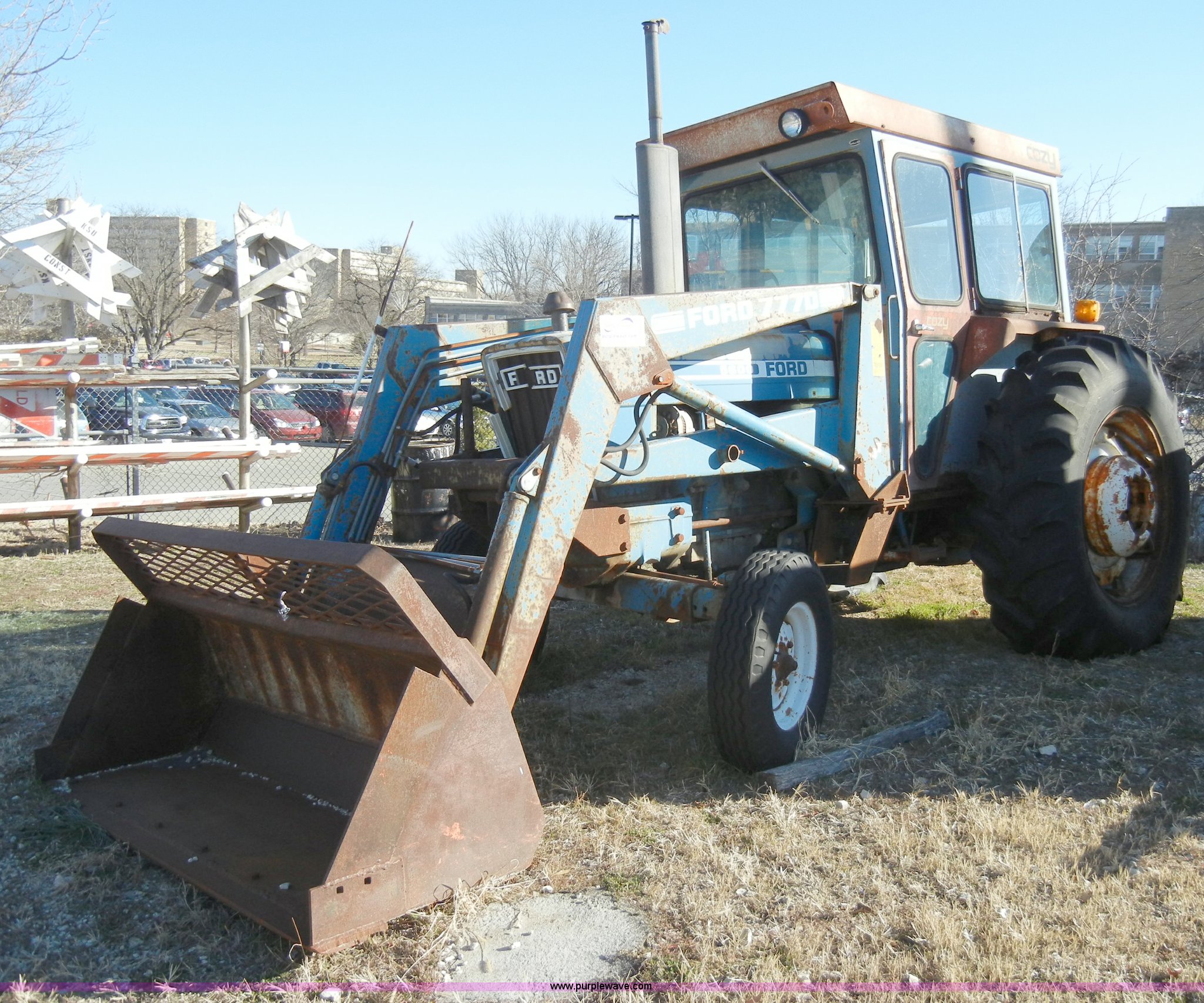 Purple Wave is selling a used Tractor in Kansas. This item is a 1981 Ford 5600 tractor with the following: 2,038 hours on meter, Four cylinder diesel engine, Powershift transmission, 8F-2R gears, AC and heat, Spring ride seat, Instructor seat, 777D loader with 6' bucket, Three point, Draw bar, 540 PTO, Rear hydraulic remote, Block heater, Wheel weights, 8.00-16 front tires, 16.9-34 rear tires, flat, 70" wheelbase, Cab rusted, Windows broken