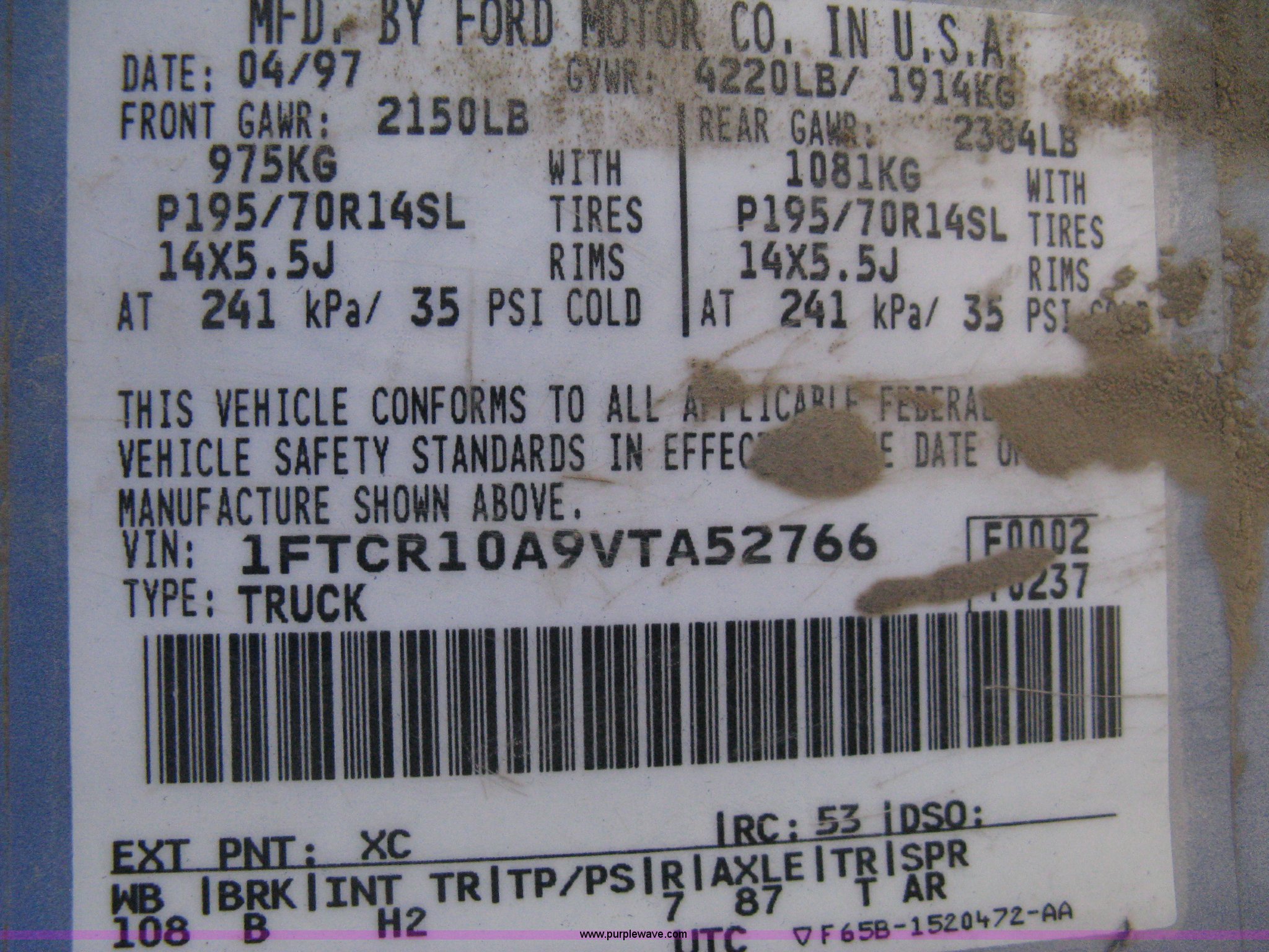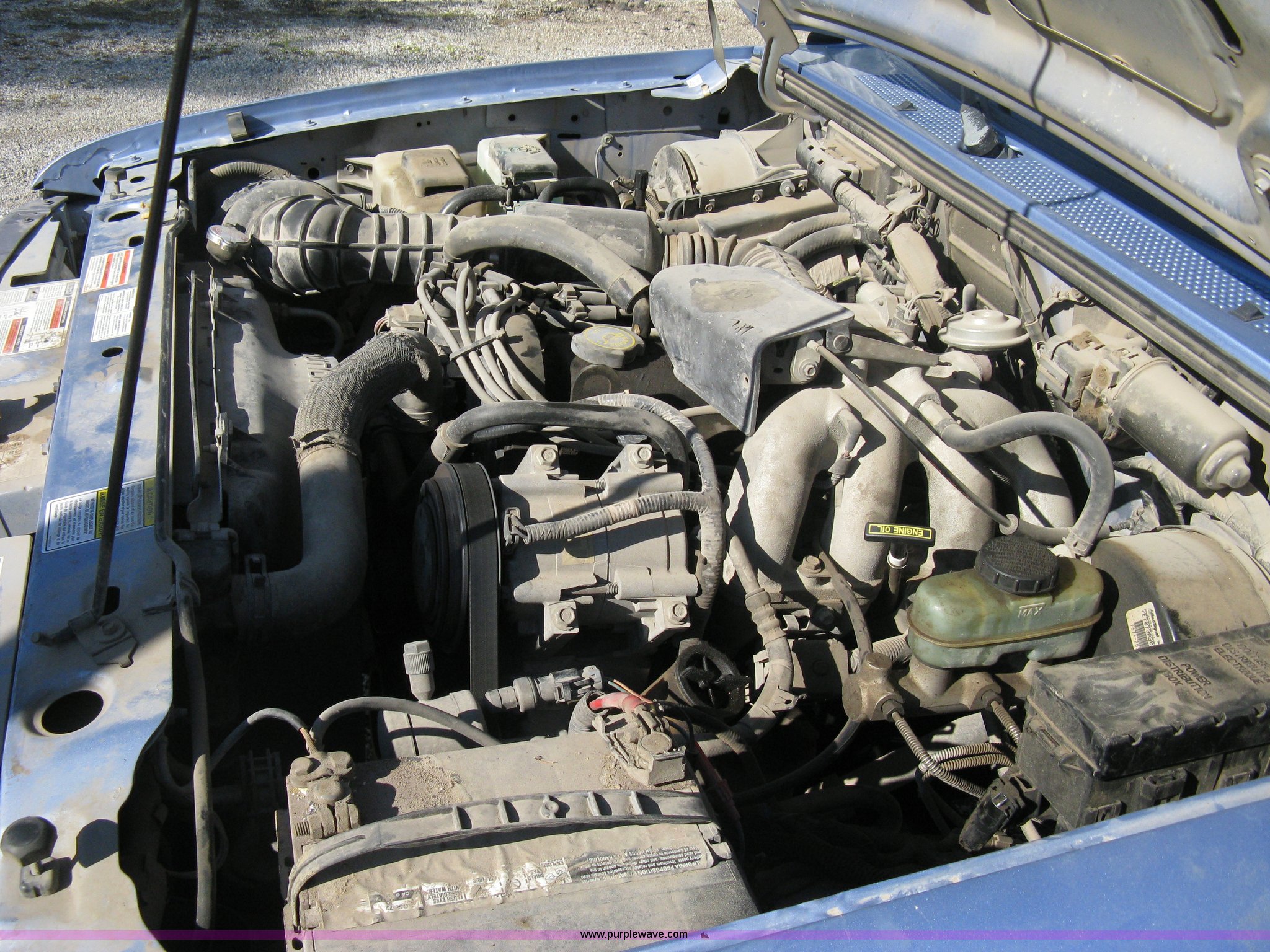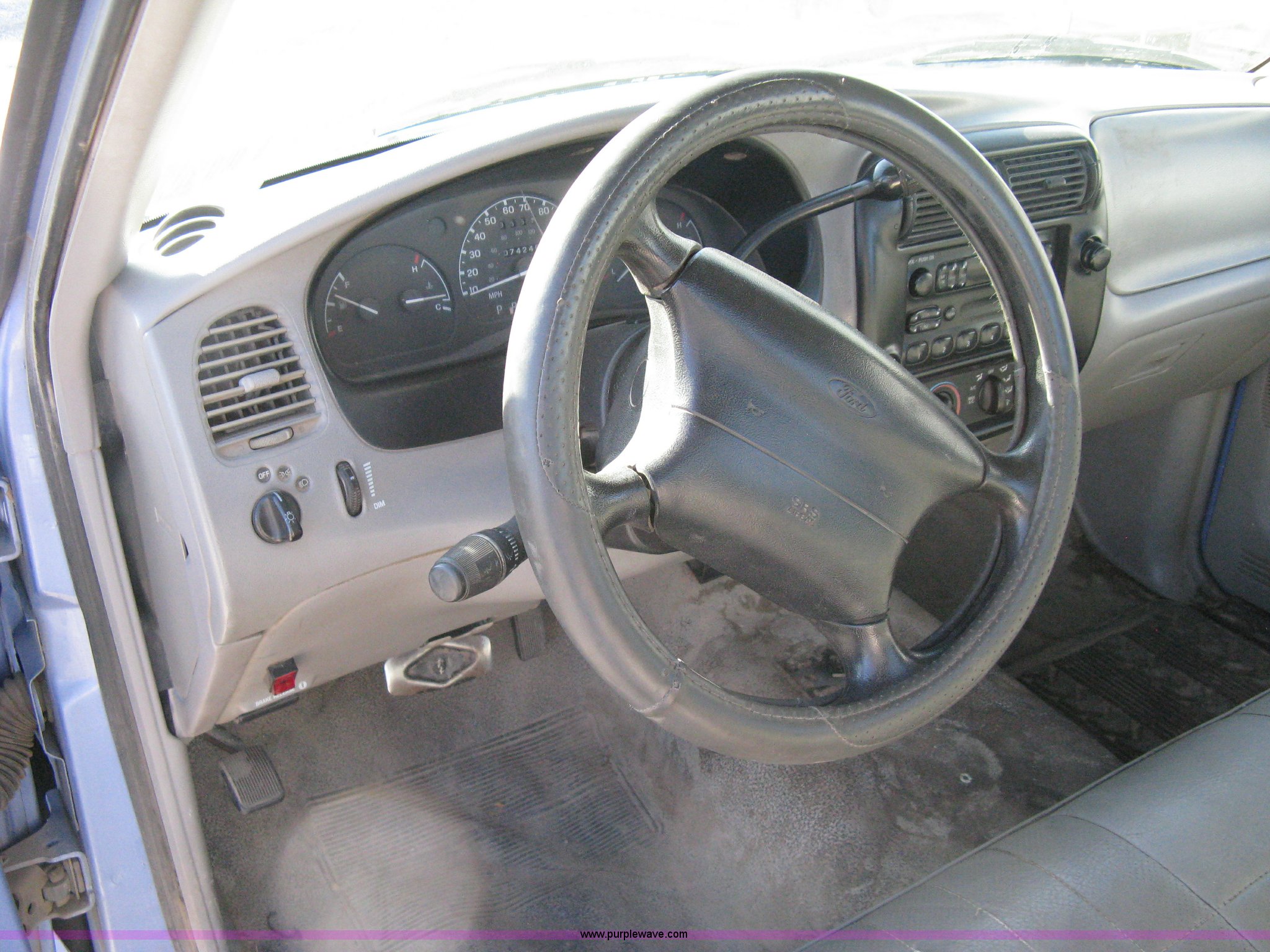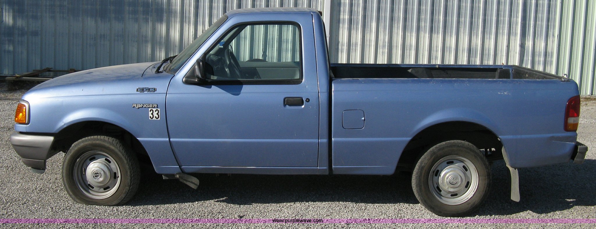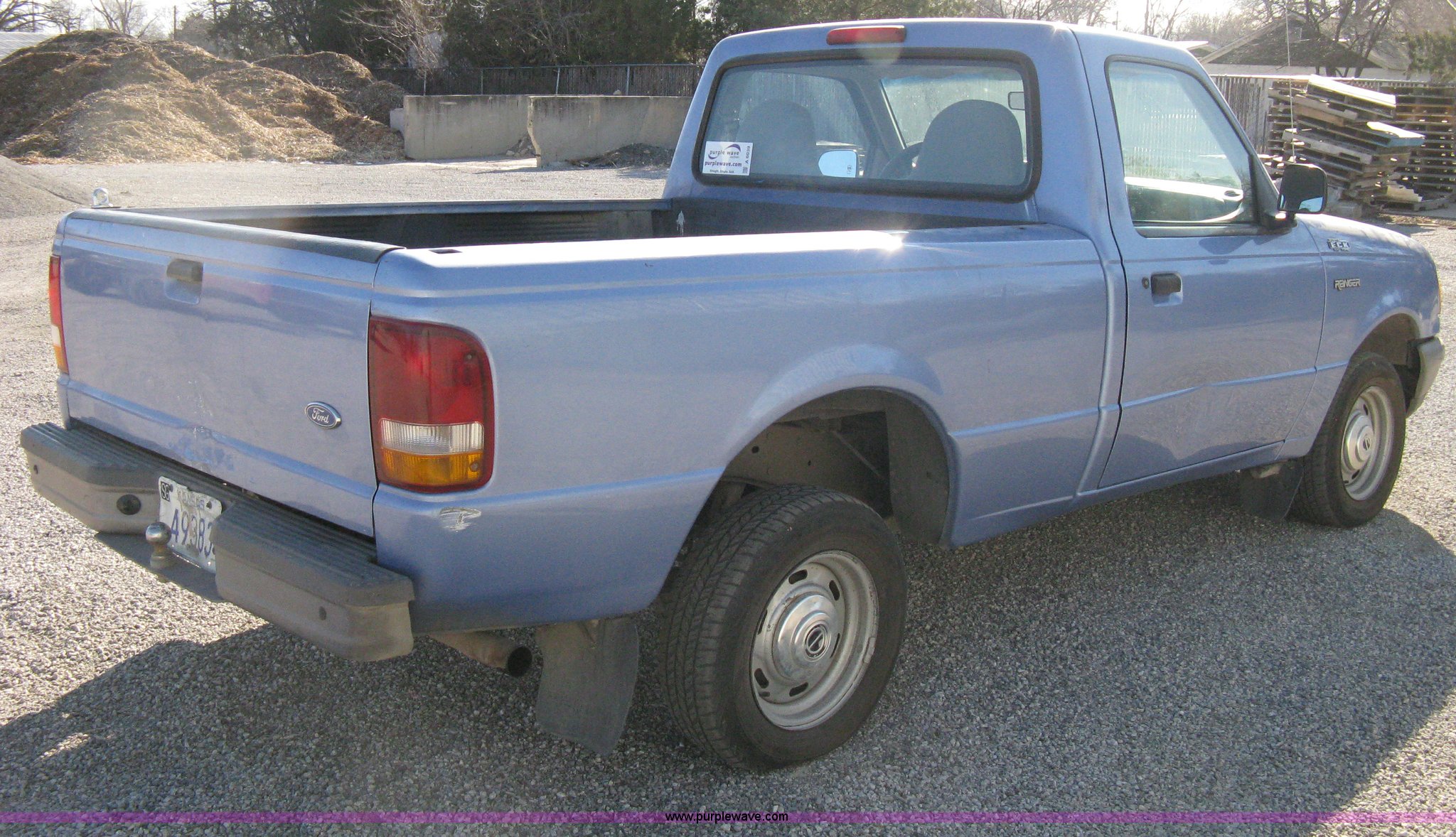 Purple Wave is selling a used Passenger Vehicle in Kansas. This item is a 1997 Ford Ranger pickup truck with the following: 74,246 miles on odometer, 2.3L I4 EFI engine, Automatic transmission, AC and heat, AM/FM, Manual windows and locks, Bench seat, Plastic bed liner, 2" ball, 195/70R14 tires, Dead battery, Interior/exterior cosmetic damage