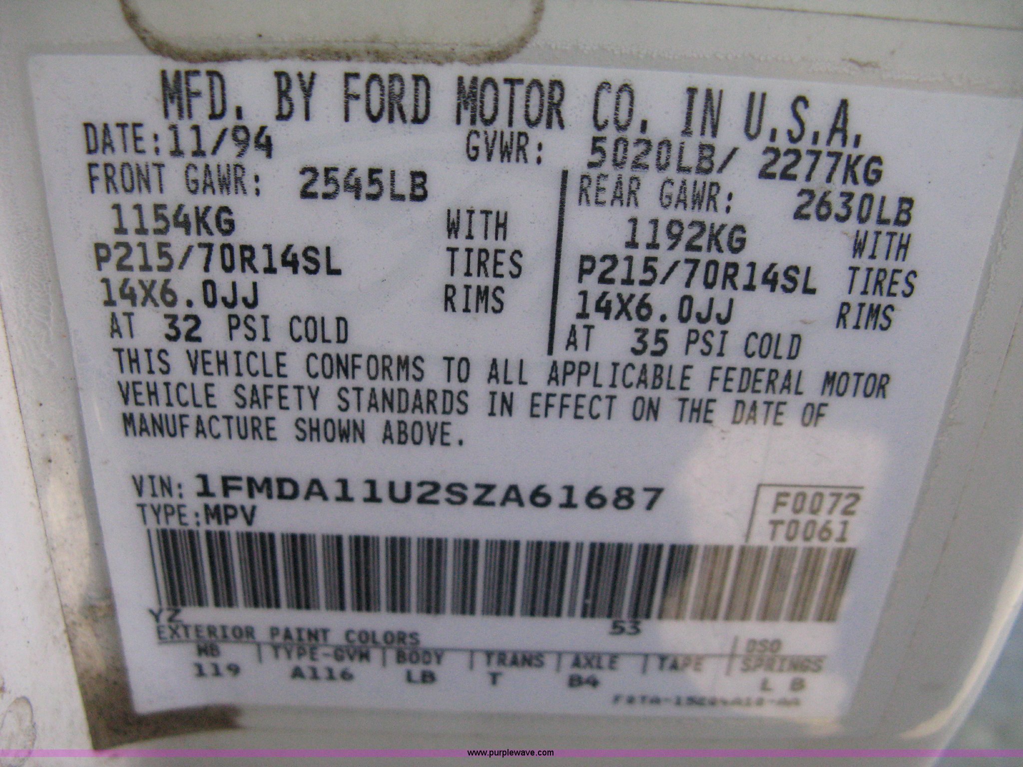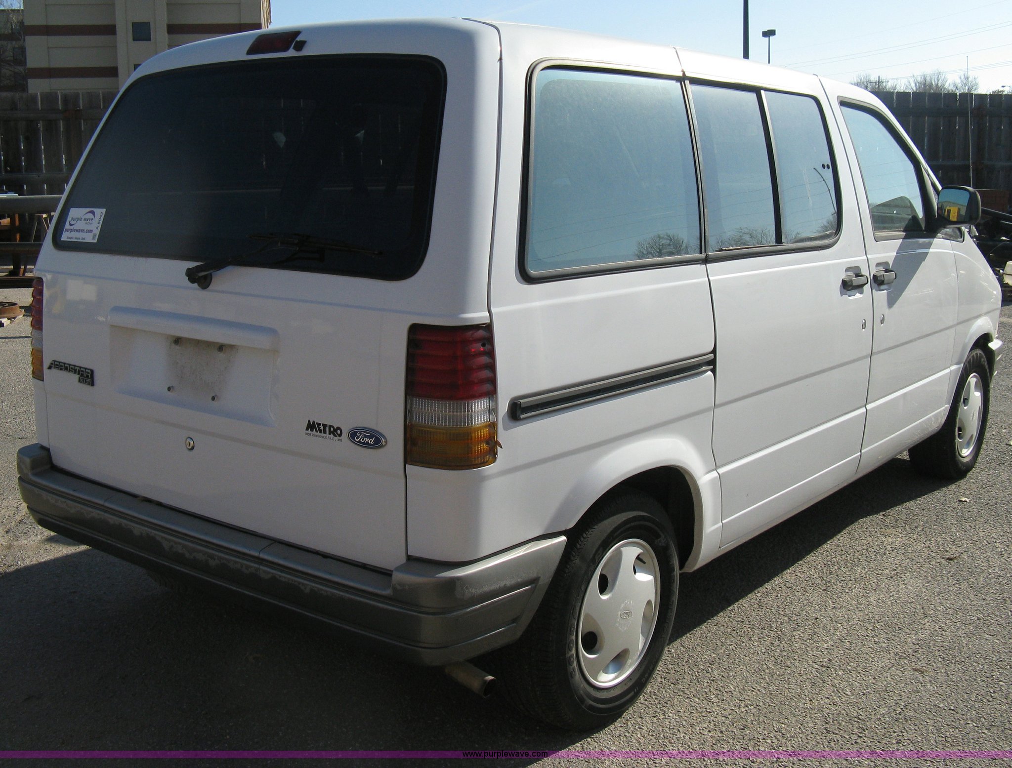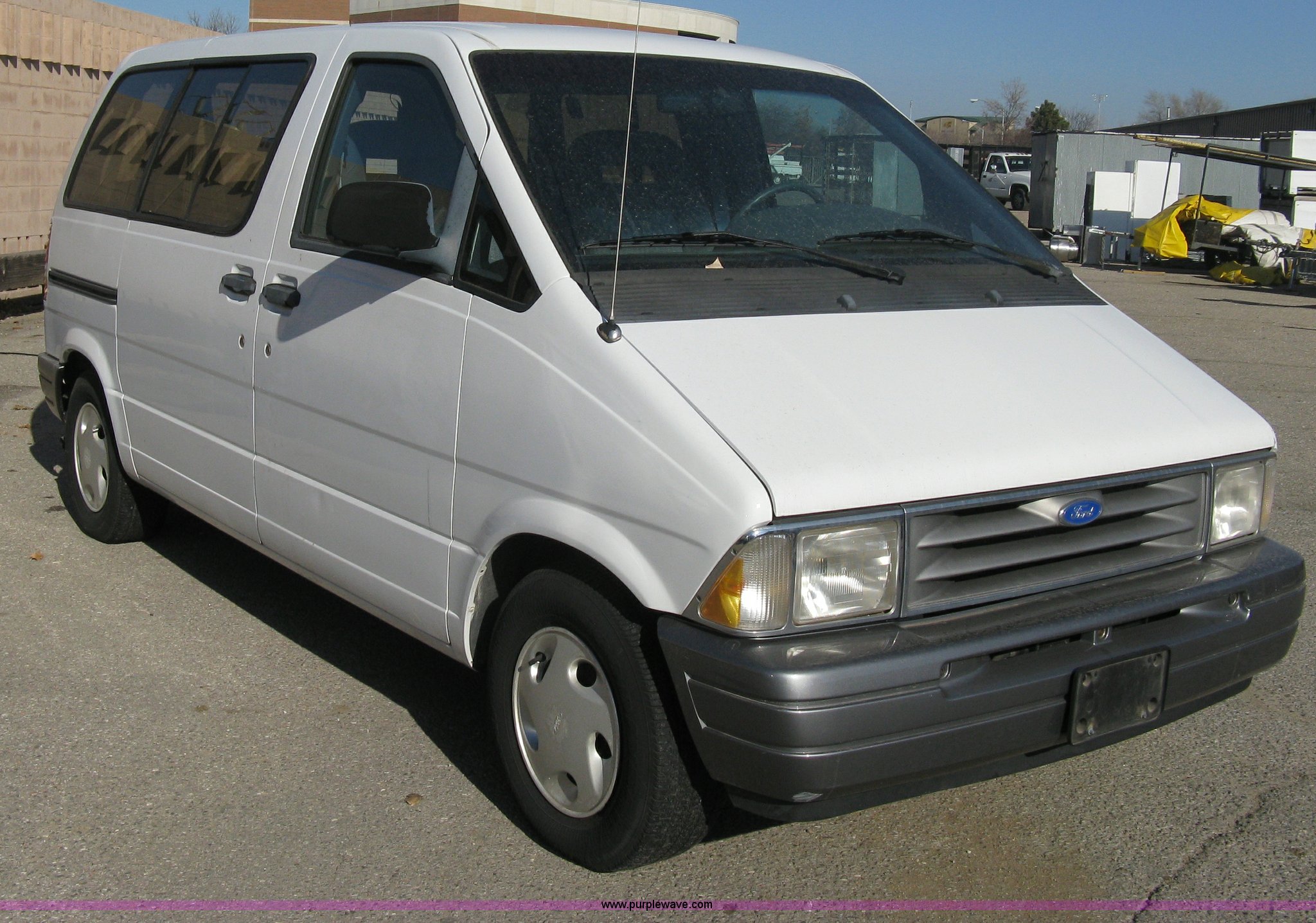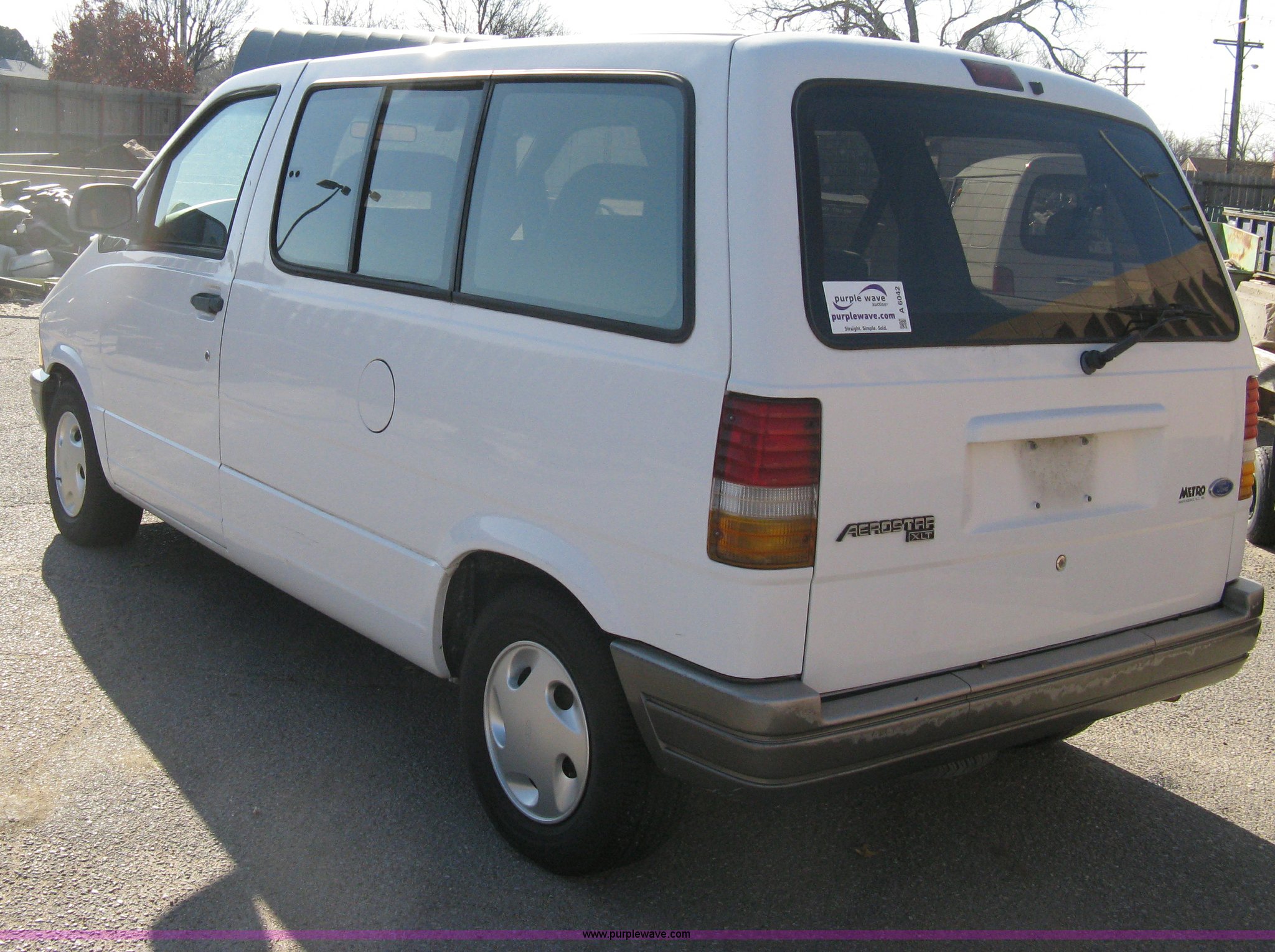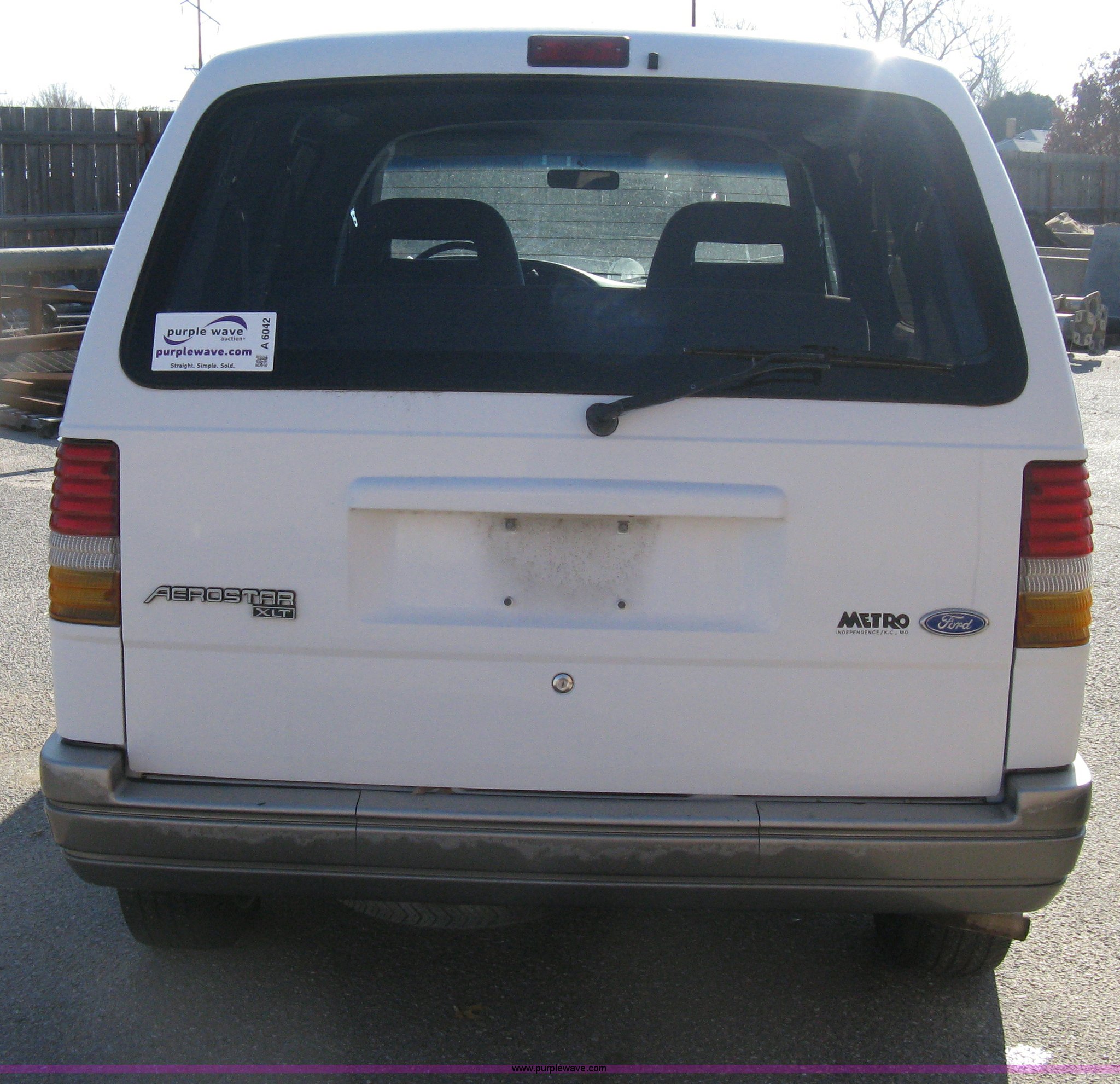 Purple Wave is selling a used Passenger Vehicle in Kansas. This item is a 1995 Ford Aerostar XLT mini van with the following: 96,417 miles on odometer, 3.0L V6 EFI gas engine, Automatic transmission, AC and heat, Cruise, AM/FM/Cassette, Power windows, locks, and mirrors, Tinted rear windows, Separate temp control for rear, (2) spare tires, P215/70R14 tires