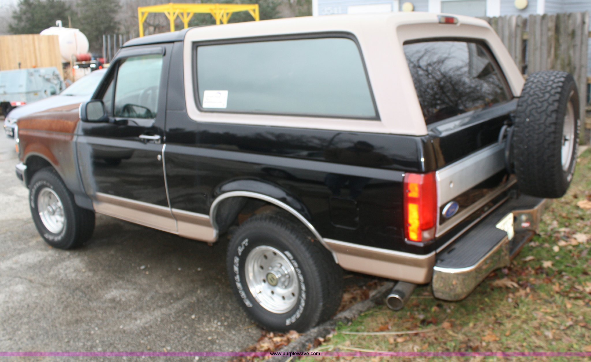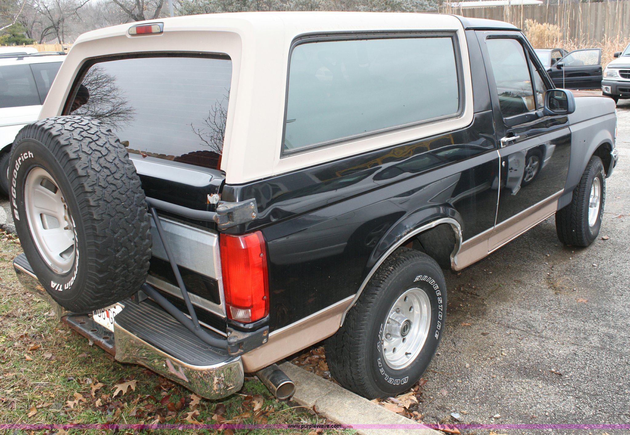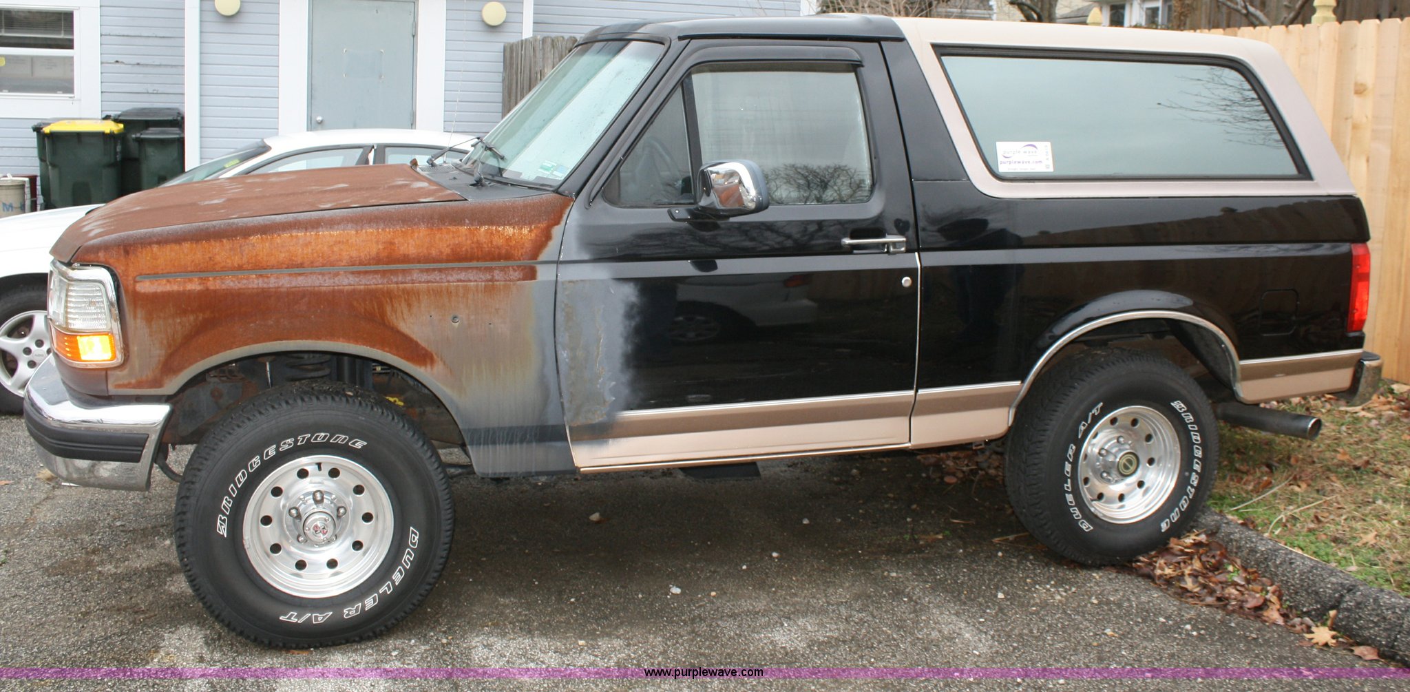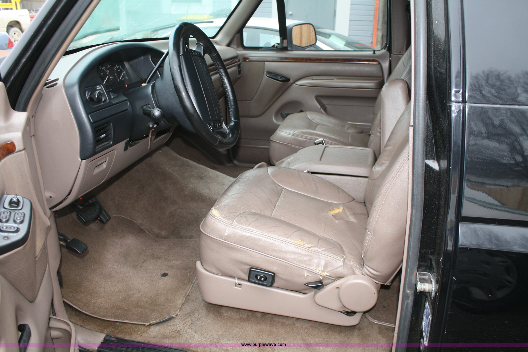 Purple Wave is selling a used Passenger Vehicle in Kansas. This item is a 1996 Ford Bronco SUV with the following: Approximately 150,000 miles, 5.8L V8 EFI engine, Automatic transmission, Four wheel drive, AC and heat, Cruise, AM/FM, Power windows, locks, and mirrors, Leather interior, 31.00/10.5R15 tires, Seized vehicle