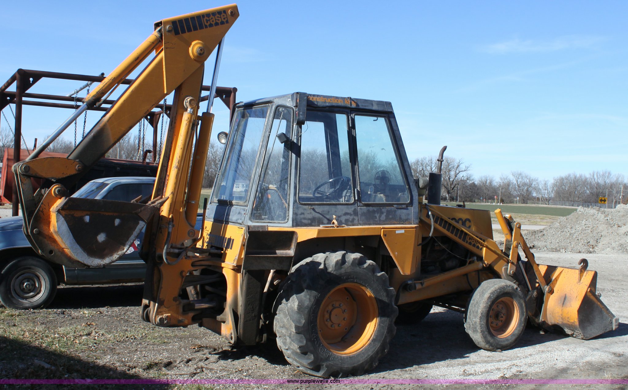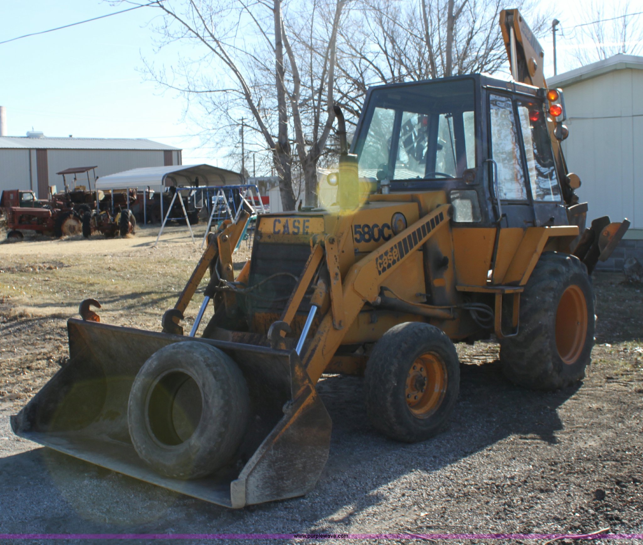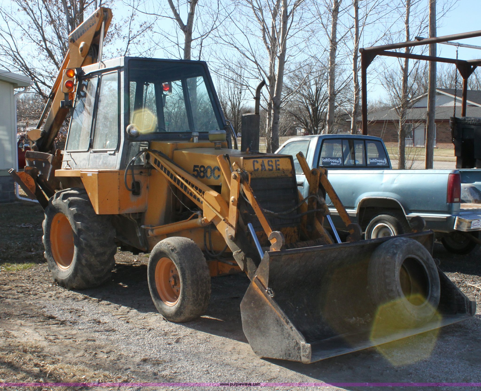 Purple Wave is selling a used Tractor Loader Backhoe in Kansas. This item is a 1977 Case 580C-CK backhoe with the following: 5,392 hours on meter, Meter non functional, Case 207D four cylinder diesel engine, 60 HP, Four speed manual transmission, Heater, Single stick front bucket control, 79'5" front bucket, 23.5" rear bucket with four teeth, 9' stick, 14.5' dig depth, 16" stabilizer pads, Front work lights, King pins replaced in 2010, New front axle in 2010, 11-16 front tires, 17.5-24 rear tires, 12,000 lbs. base operating weight, Weak battery, Small radiator leak, Serial 8964715
