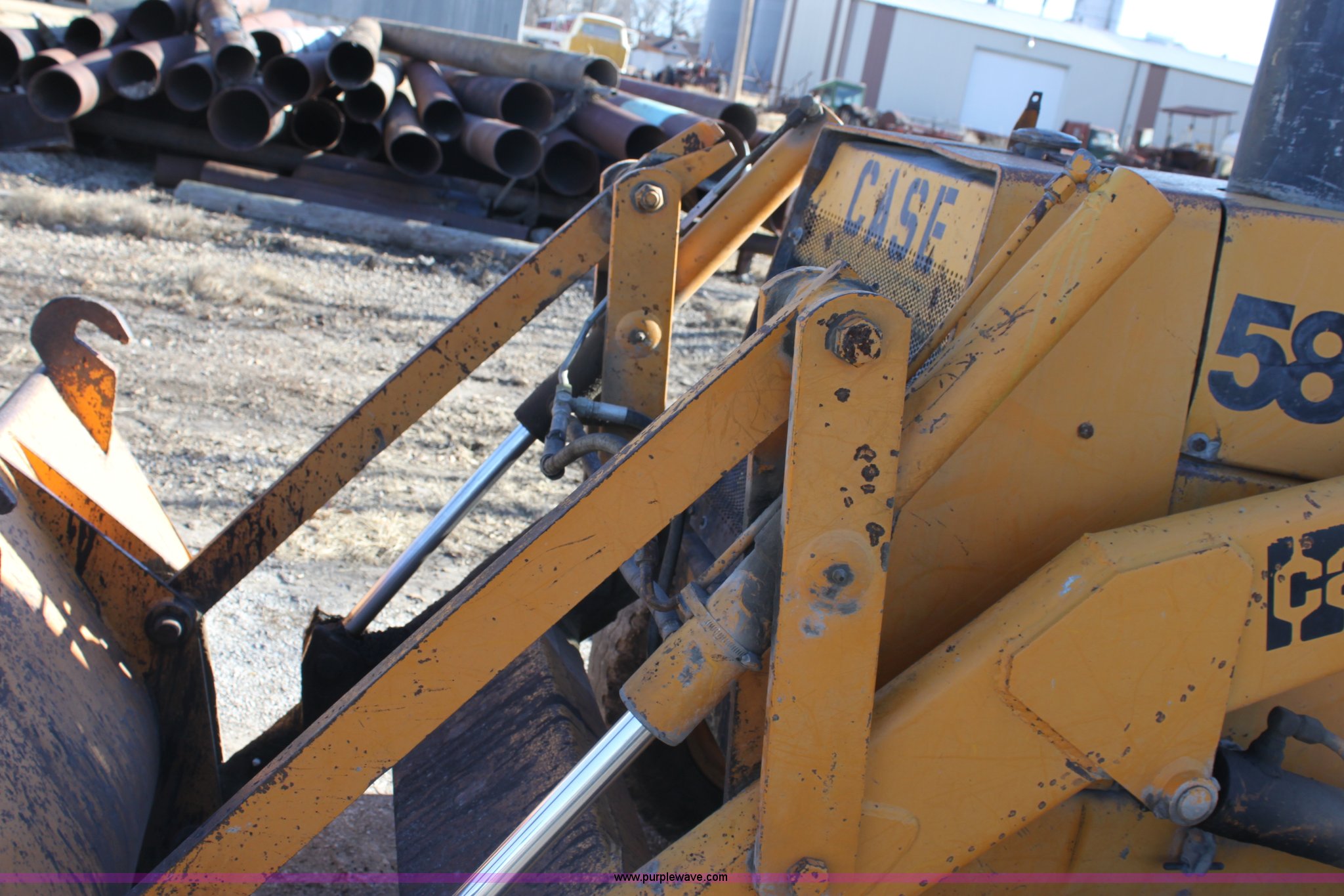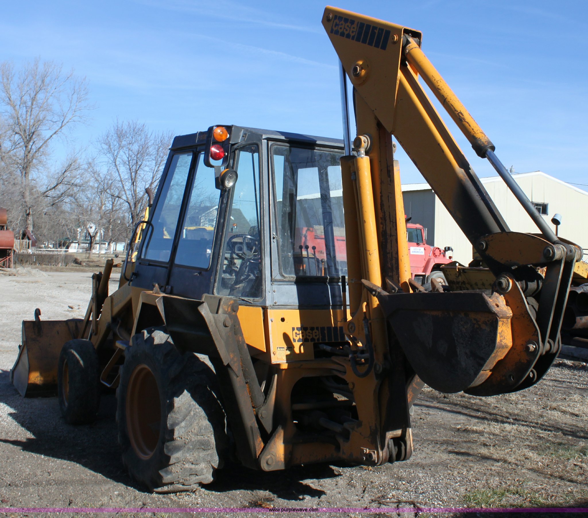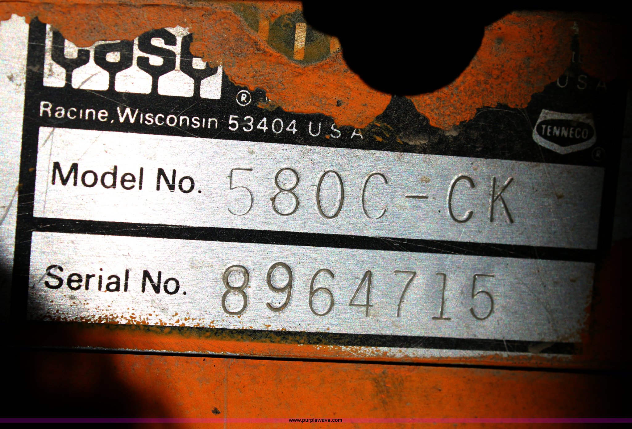 Purple Wave is selling a used Tractor Loader Backhoe in Kansas. This item is a 1977 Case 580C-CK backhoe with the following: 5,392 hours on meter, Meter non functional, Case 207D four cylinder diesel engine, 60 HP, Four speed manual transmission, Heater, Single stick front bucket control, 79'5" front bucket, 23.5" rear bucket with four teeth, 9' stick, 14.5' dig depth, 16" stabilizer pads, Front work lights, King pins replaced in 2010, New front axle in 2010, 11-16 front tires, 17.5-24 rear tires, 12,000 lbs. base operating weight, Weak battery, Small radiator leak, Serial 8964715