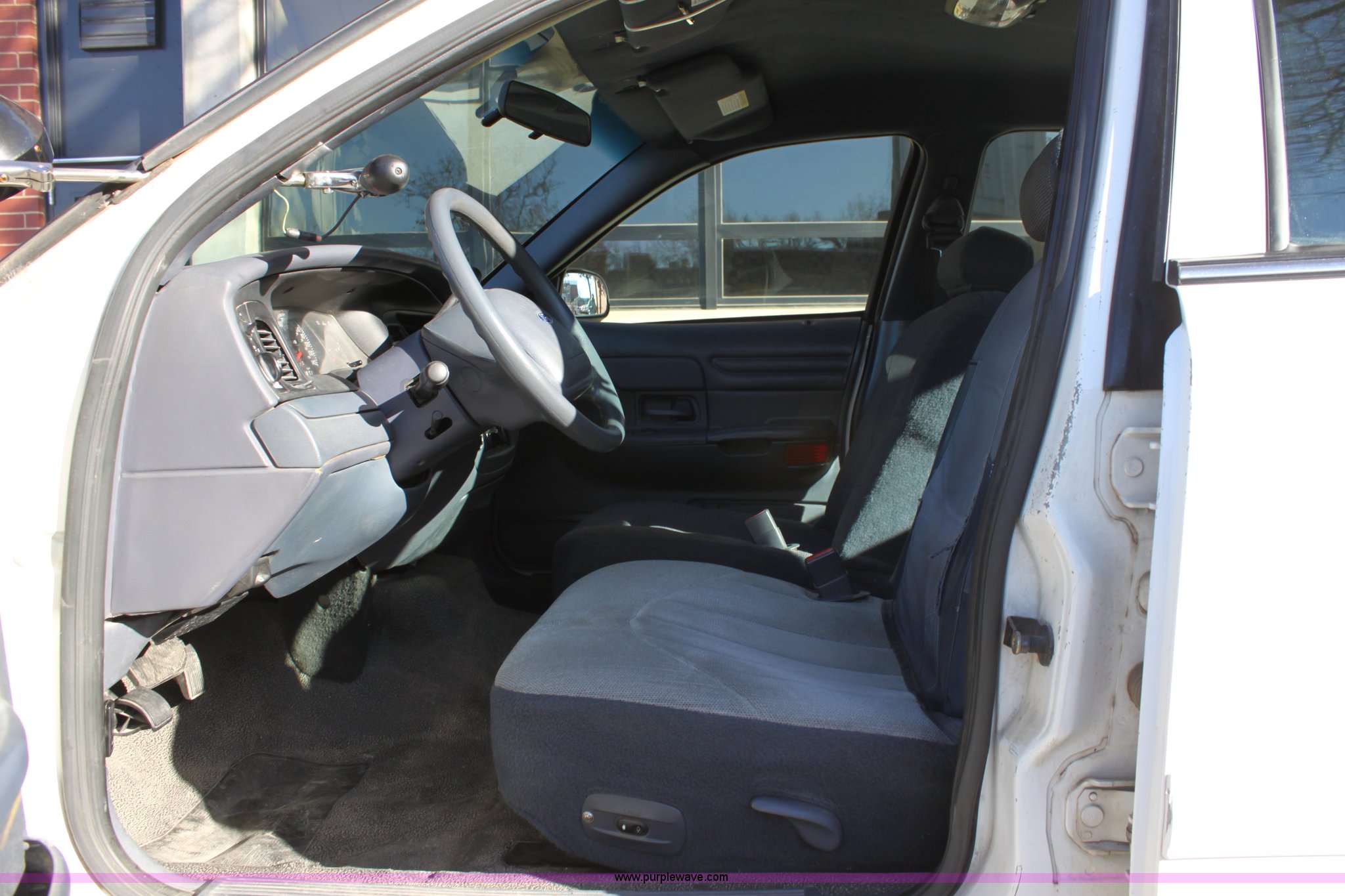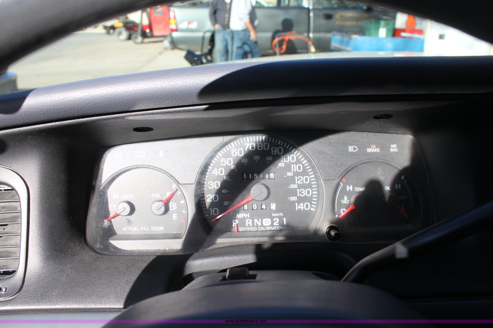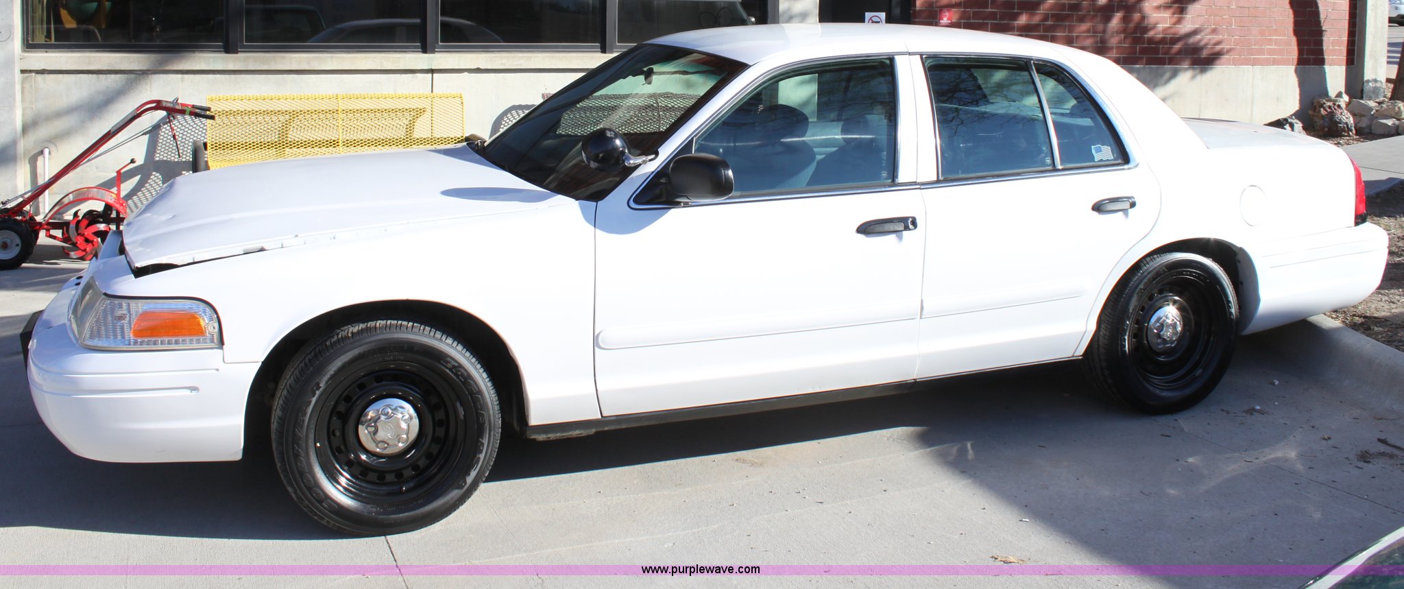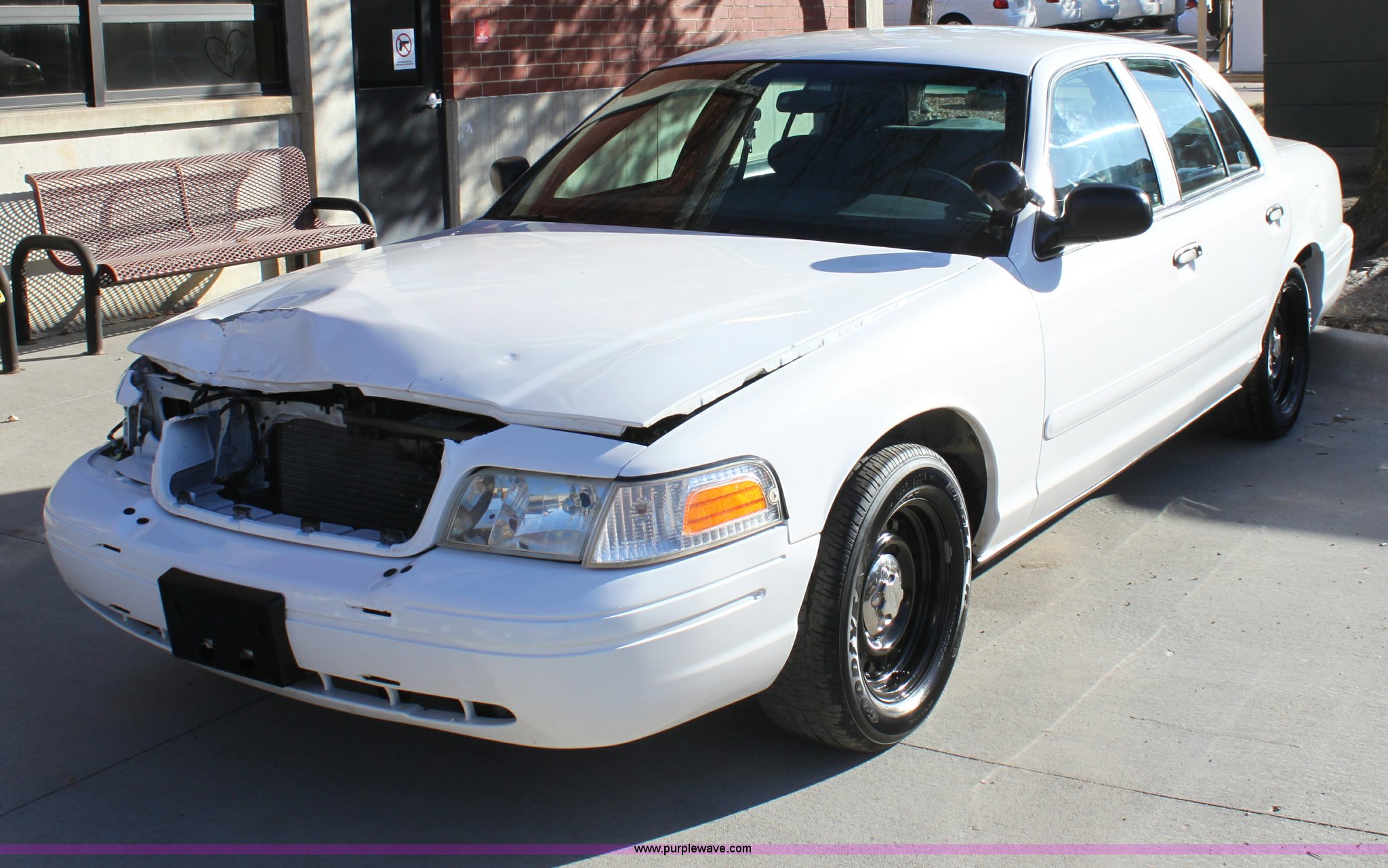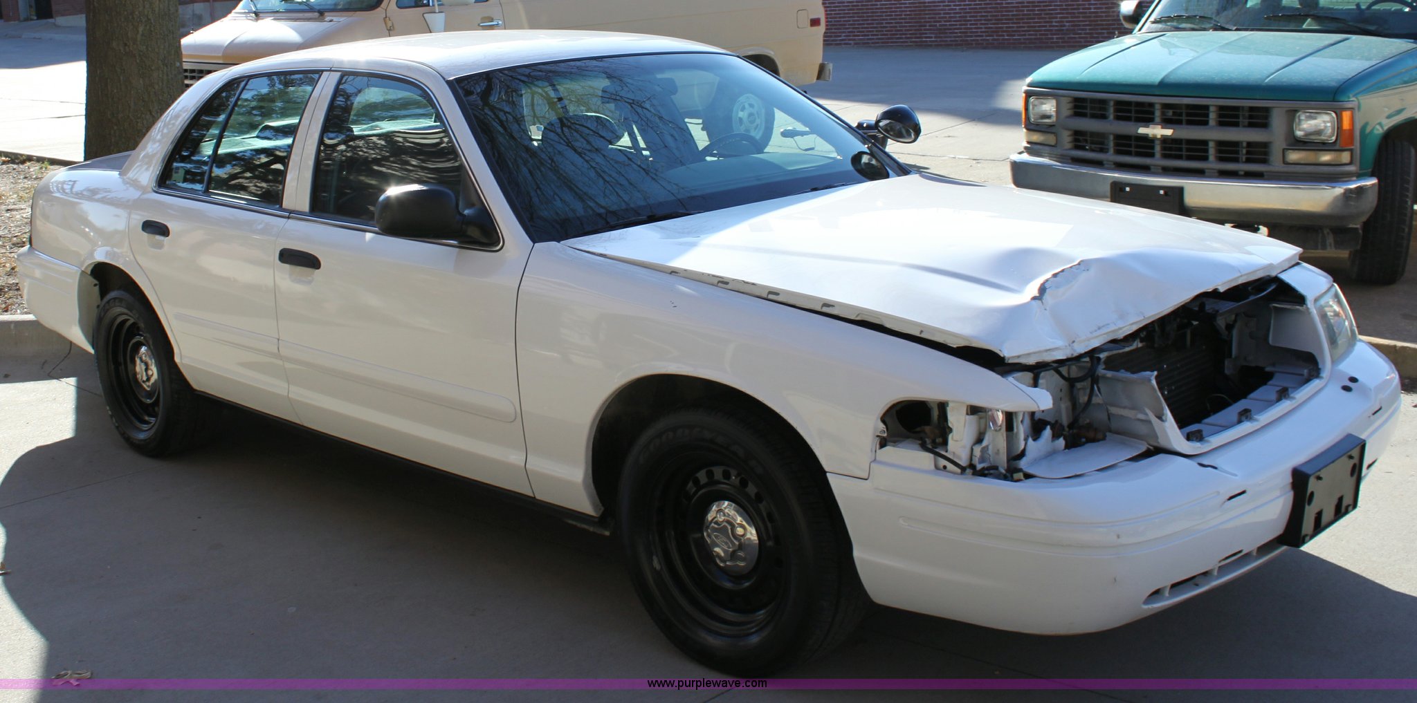 Purple Wave is selling a used Passenger Vehicle in Kansas. This item is a 2001 Ford Crown Victoria Police Interceptor with the following: 115,115 miles on odometer, 4.6L V8 EFI engine, Automatic transmission, AC and heat, Tilt, Power windows, locks, and mirrors, Cloth interior, 225/60R16 tires, Front end damage, Starts and runs