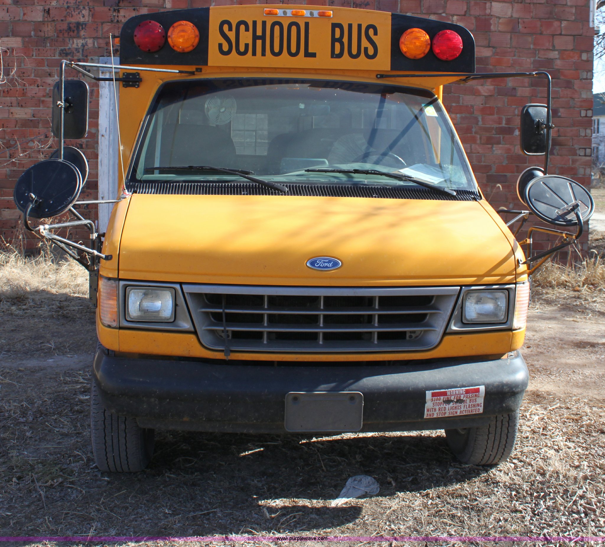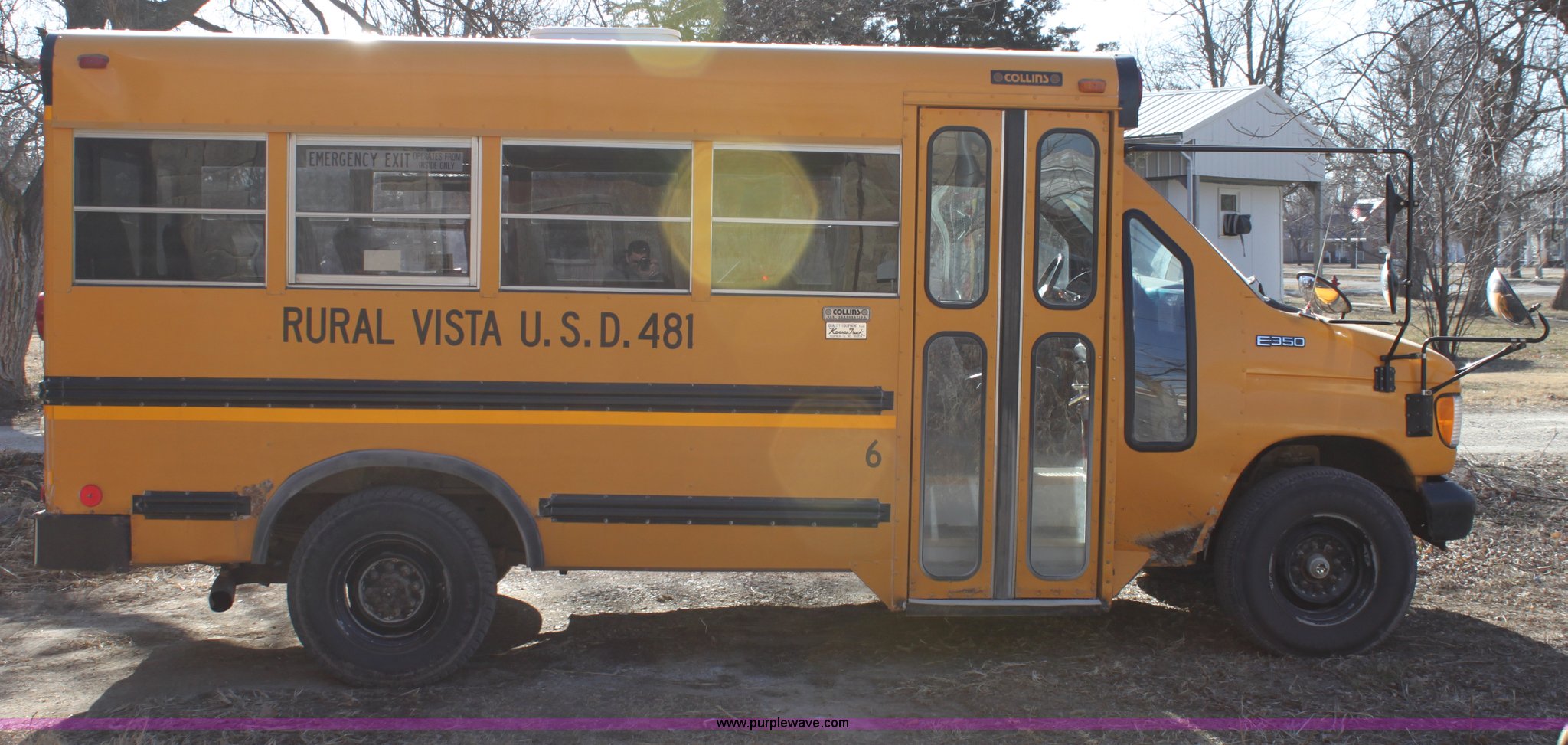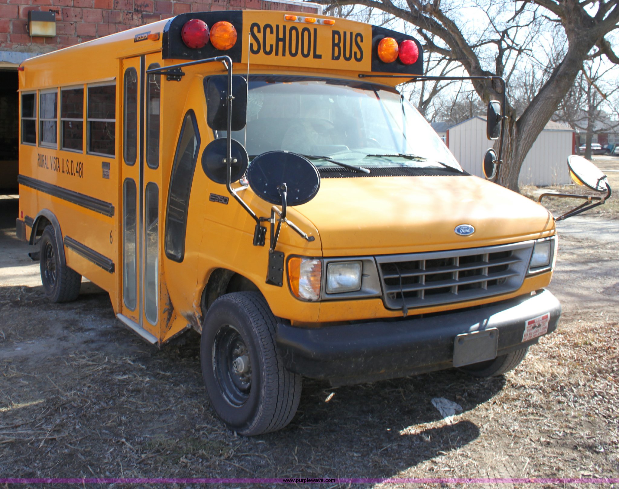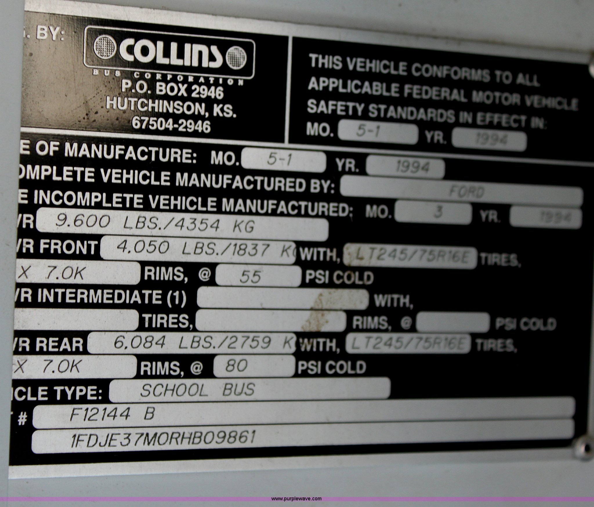 Purple Wave is selling a used Bus in Kansas. This item is a 1994 Ford E350 Collins school bus with the following: 127,652 miles on odometer, 20 passenger, 7.3L V8 diesel engine, Automatic transmission, AC and heat, AM/FM/Cassette, (2) window emergency egress, Roof emergency egress, Rear emergency egress, Seat belt equipped, 245/75R16 tires, GVWR 9,600 lbs, FAWR 4,050 lbs, RAWR 6,084 lbs, Small dent in rear door