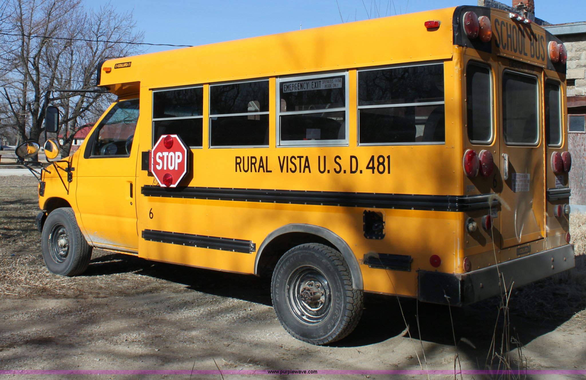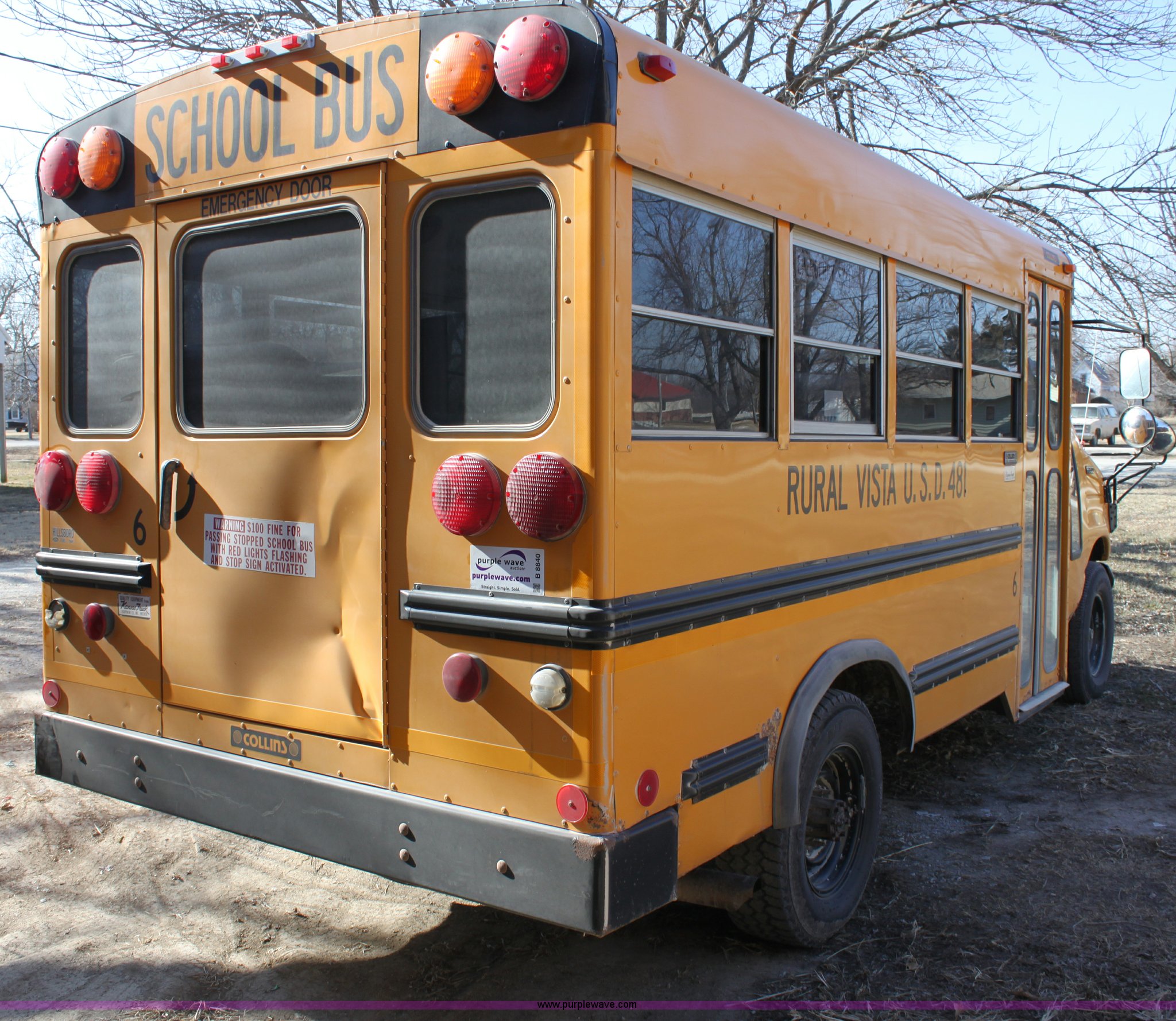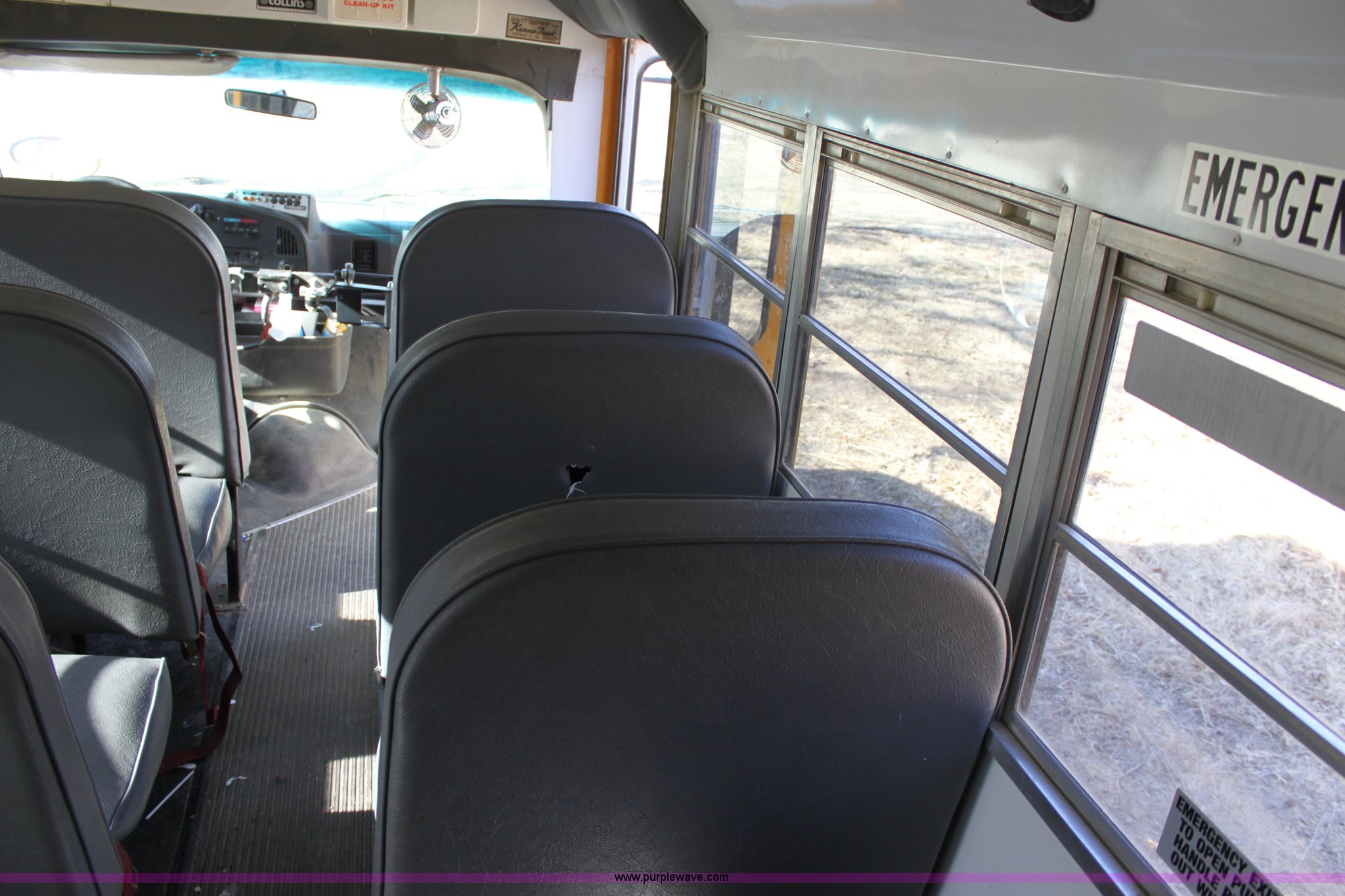 Purple Wave is selling a used Bus in Kansas. This item is a 1994 Ford E350 Collins school bus with the following: 127,652 miles on odometer, 20 passenger, 7.3L V8 diesel engine, Automatic transmission, AC and heat, AM/FM/Cassette, (2) window emergency egress, Roof emergency egress, Rear emergency egress, Seat belt equipped, 245/75R16 tires, GVWR 9,600 lbs, FAWR 4,050 lbs, RAWR 6,084 lbs, Small dent in rear door