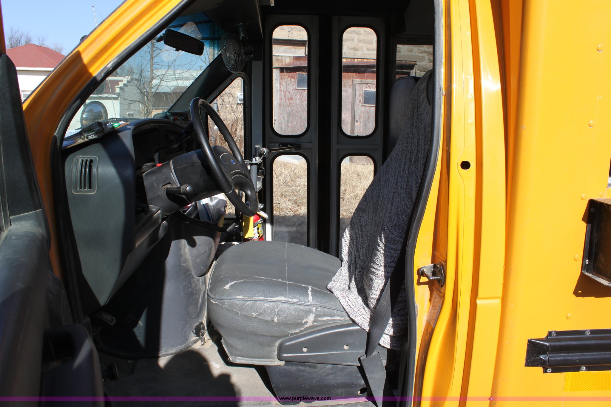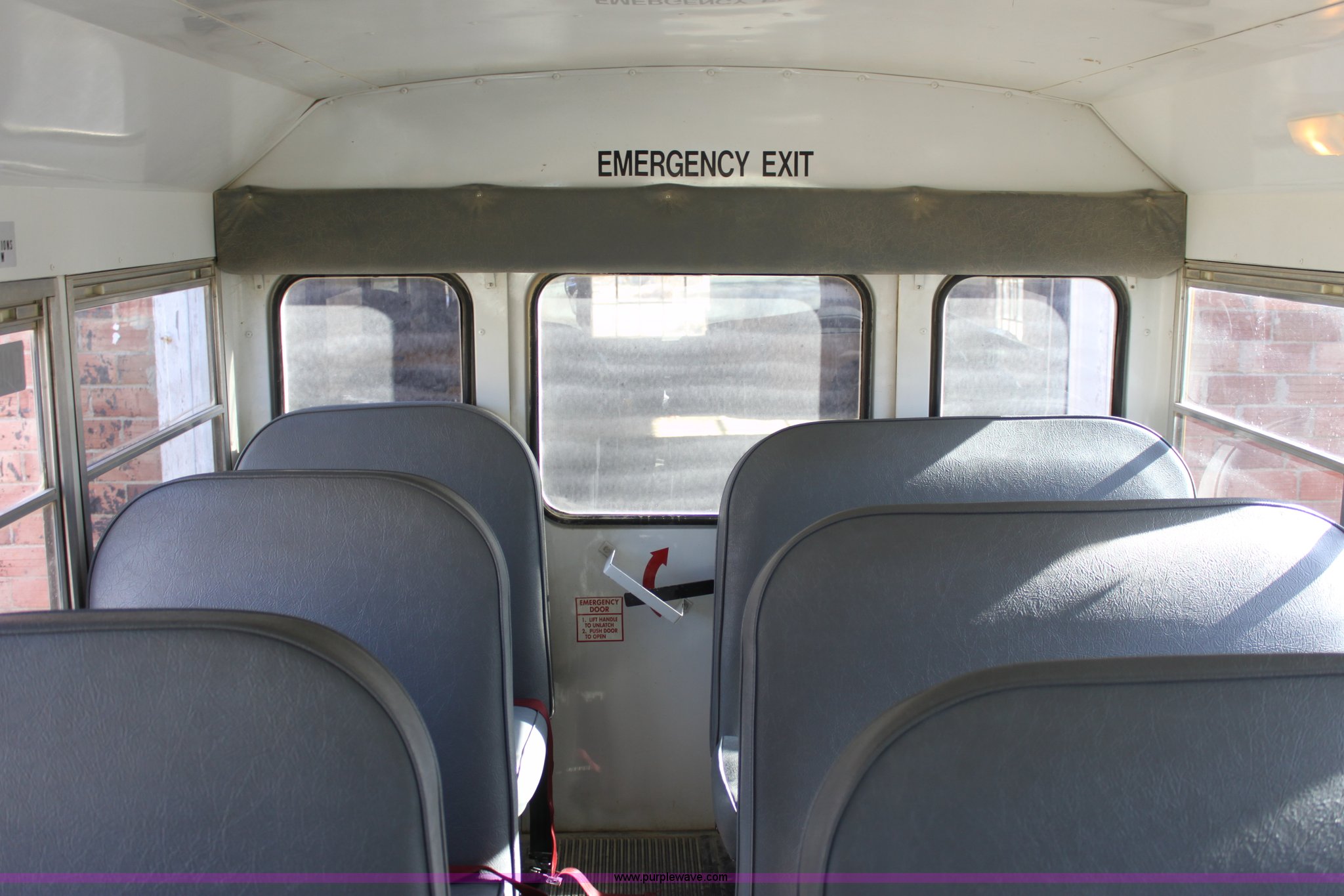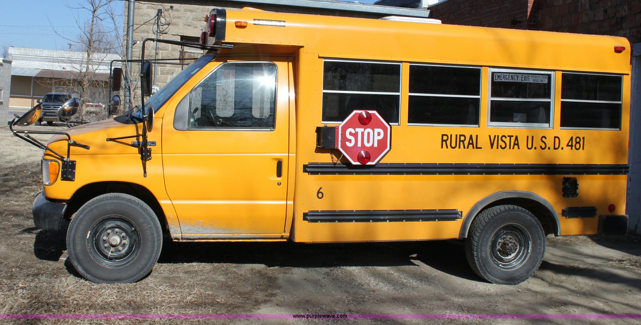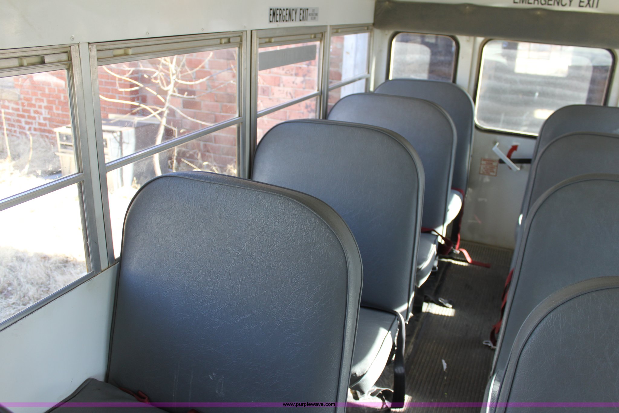 Purple Wave is selling a used Bus in Kansas. This item is a 1994 Ford E350 Collins school bus with the following: 127,652 miles on odometer, 20 passenger, 7.3L V8 diesel engine, Automatic transmission, AC and heat, AM/FM/Cassette, (2) window emergency egress, Roof emergency egress, Rear emergency egress, Seat belt equipped, 245/75R16 tires, GVWR 9,600 lbs, FAWR 4,050 lbs, RAWR 6,084 lbs, Small dent in rear door