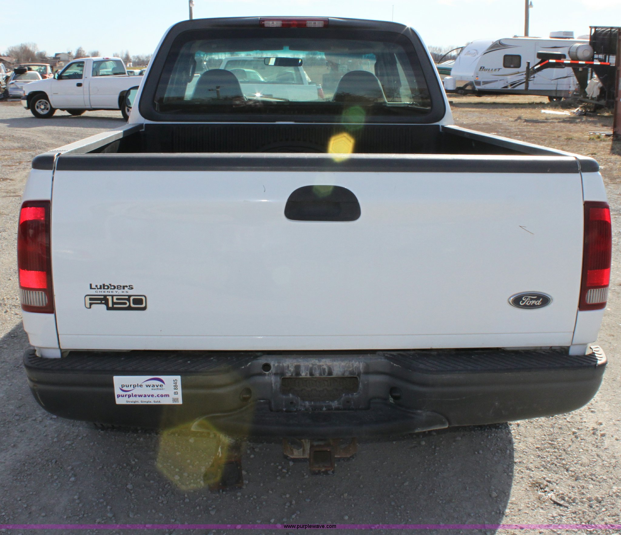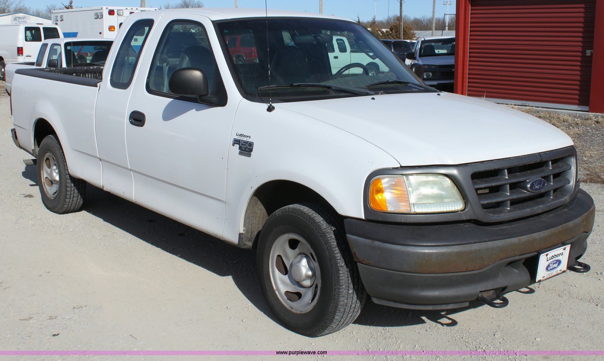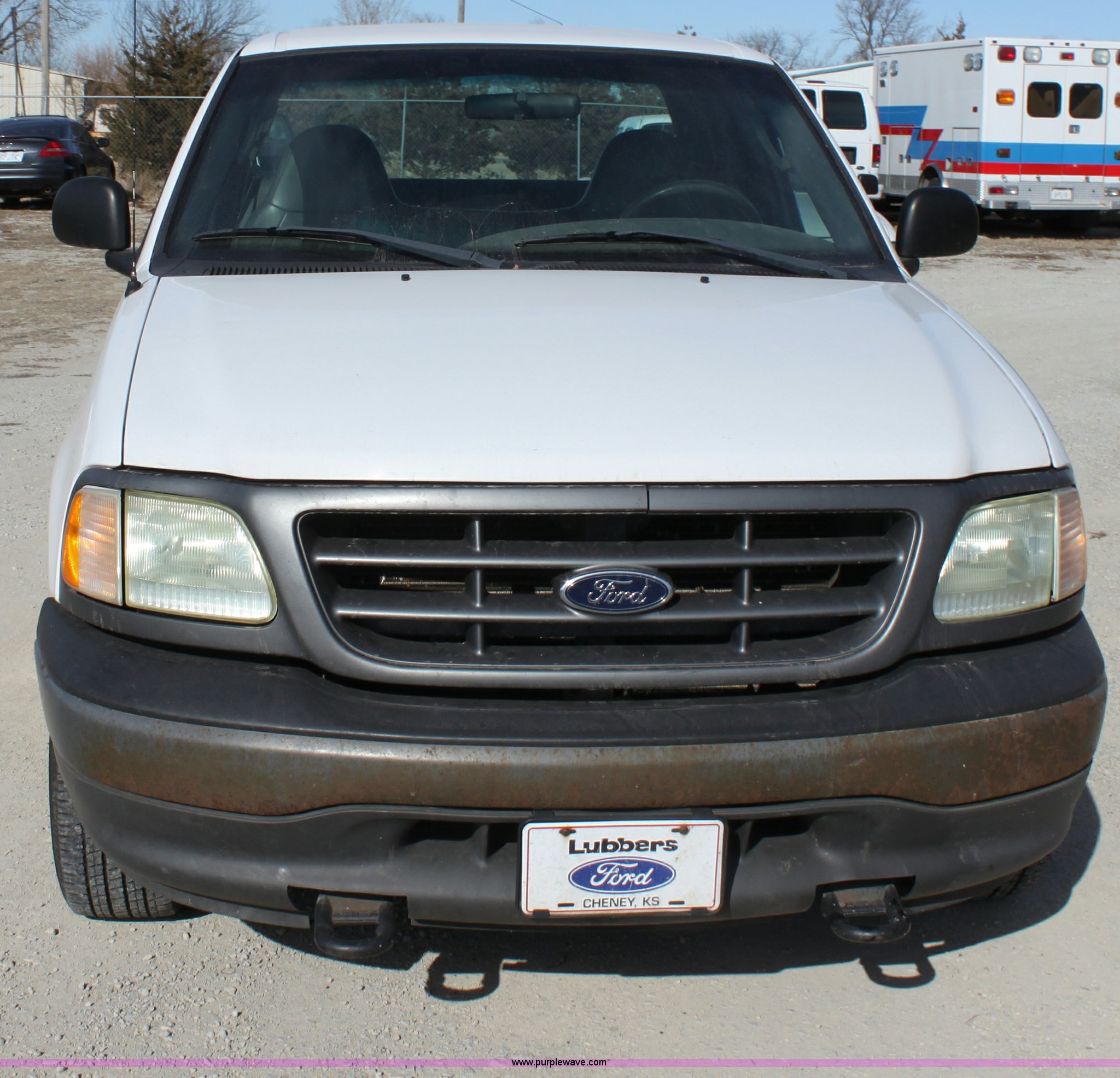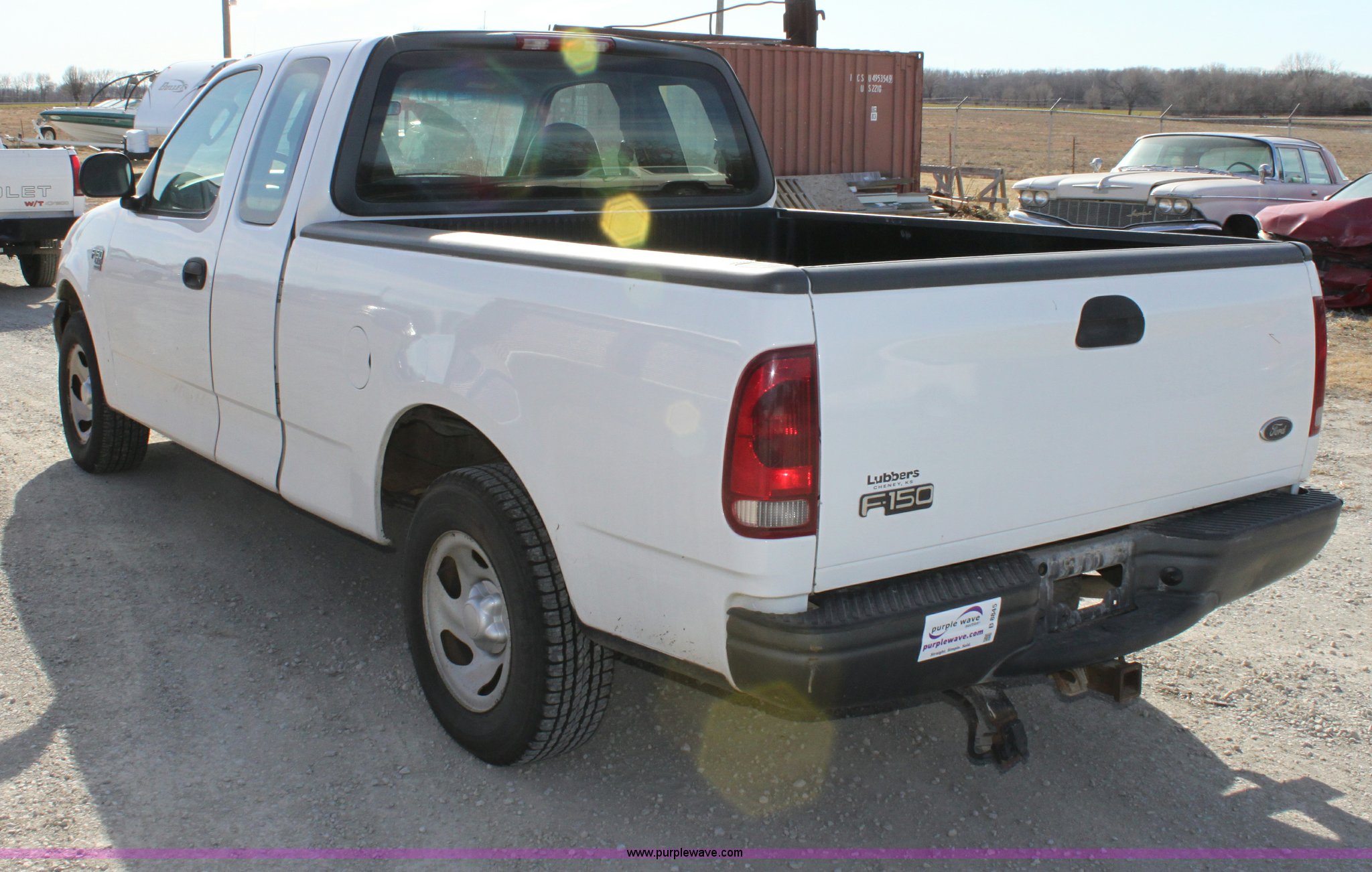 Purple Wave is selling a used Passenger Vehicle in Kansas. This item is a 2003 Ford F150 XL Supercab pickup truck with the following: 131,255 miles on odometer, 4.6L V8 EFI engine, Automatic transmission, AC and heat, Tilt, Cruise, AM/FM/Cassette, Manual windows and locks, Vinyl interior, Front tow hooks, Bed liner, Receiver hitch, Trailer wiring, 235/70R16 tires, Damage to seat, Dent in passenger rear bedside, Equip# 0665