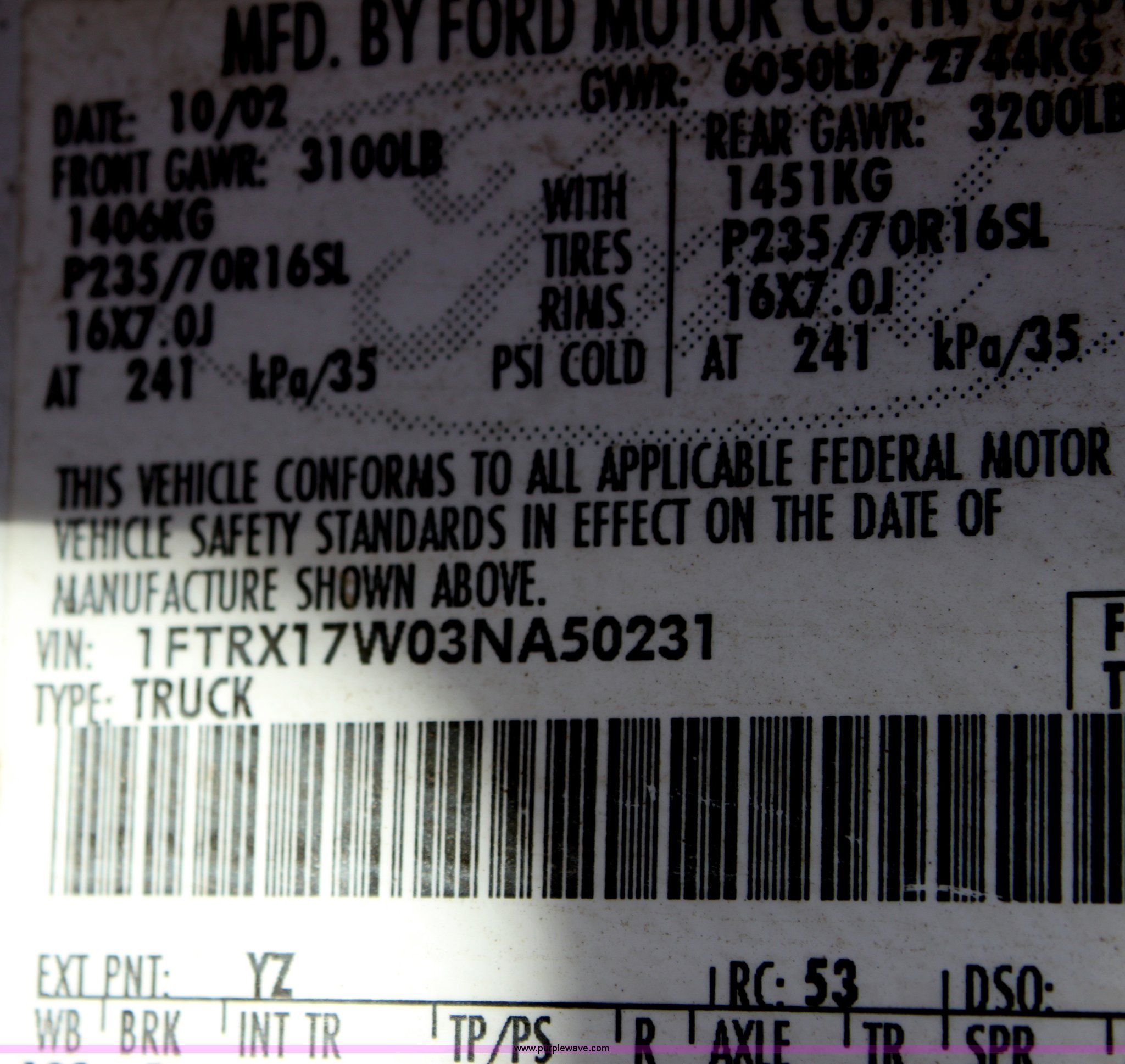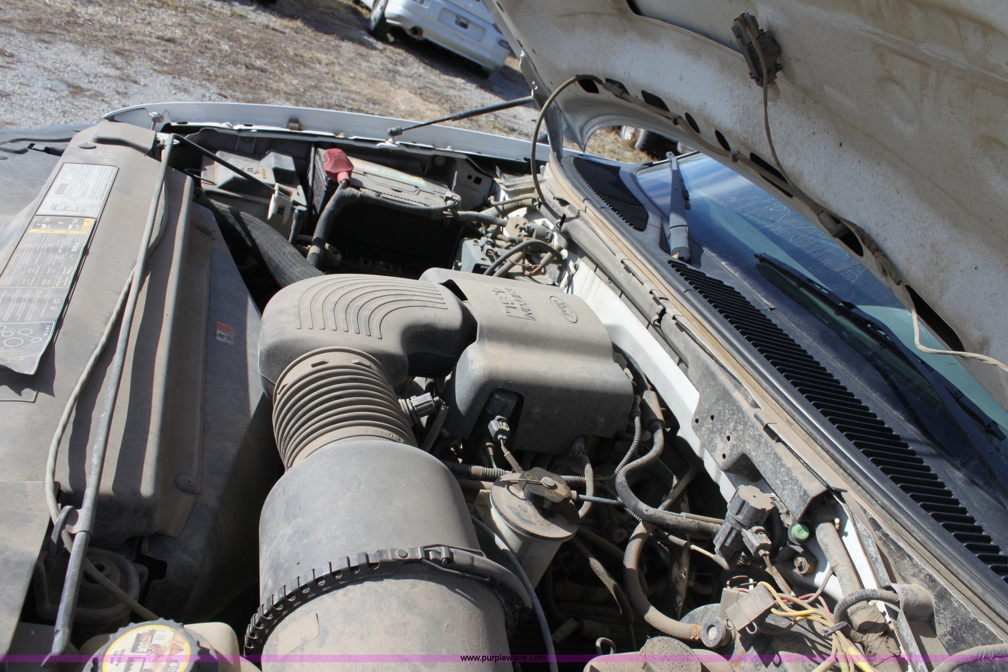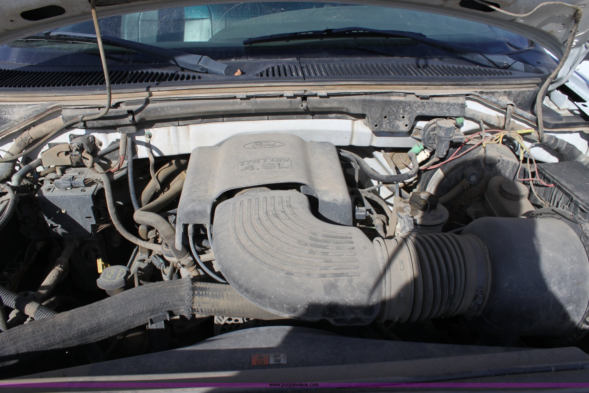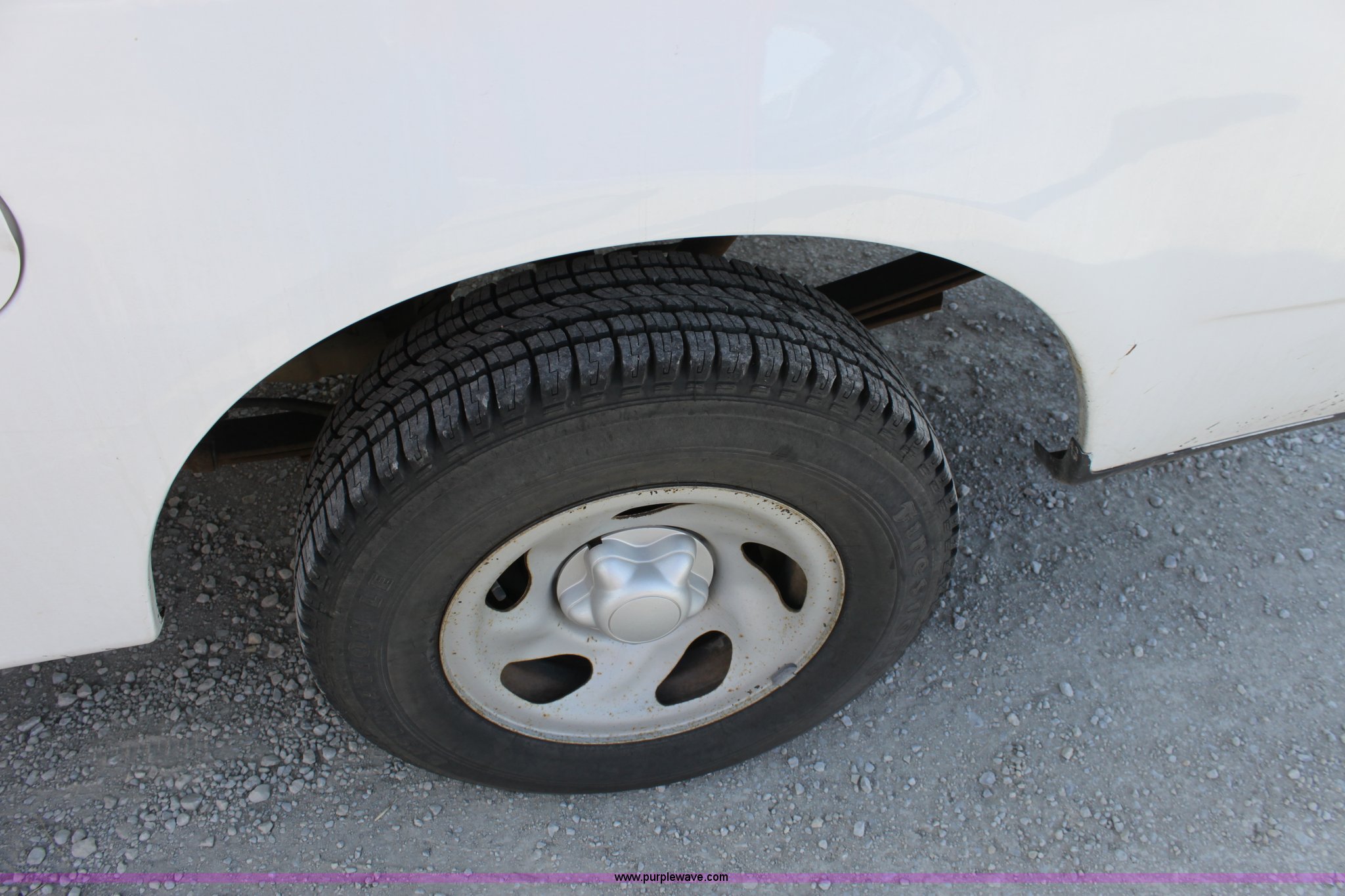 Purple Wave is selling a used Passenger Vehicle in Kansas. This item is a 2003 Ford F150 XL Supercab pickup truck with the following: 131,255 miles on odometer, 4.6L V8 EFI engine, Automatic transmission, AC and heat, Tilt, Cruise, AM/FM/Cassette, Manual windows and locks, Vinyl interior, Front tow hooks, Bed liner, Receiver hitch, Trailer wiring, 235/70R16 tires, Damage to seat, Dent in passenger rear bedside, Equip# 0665